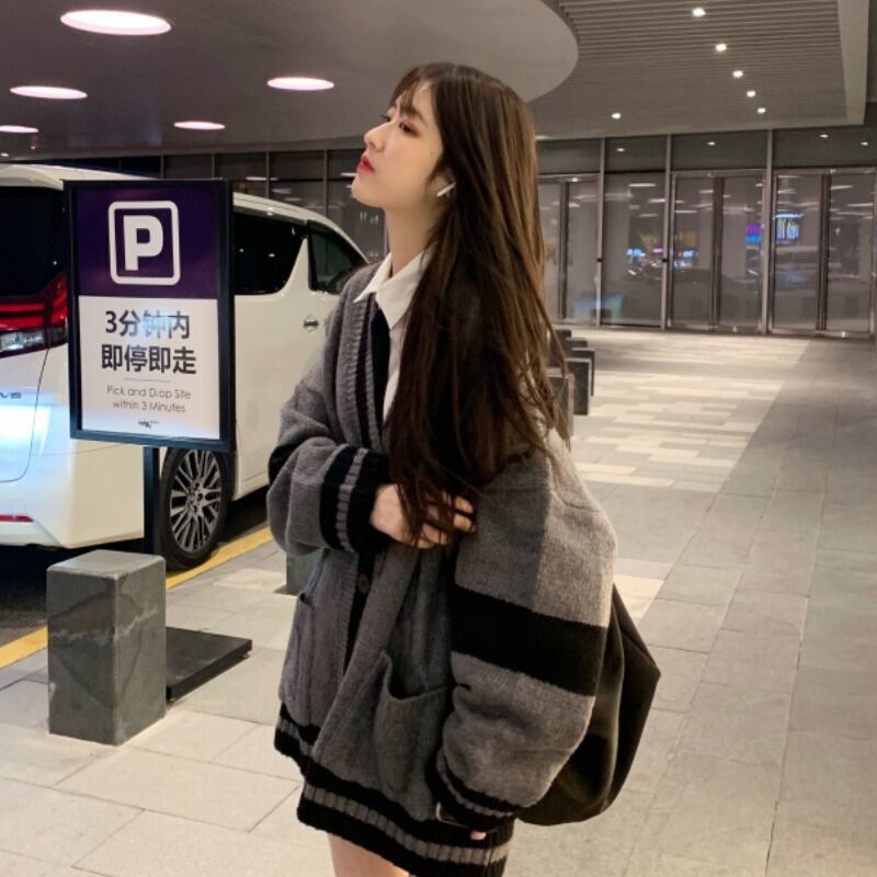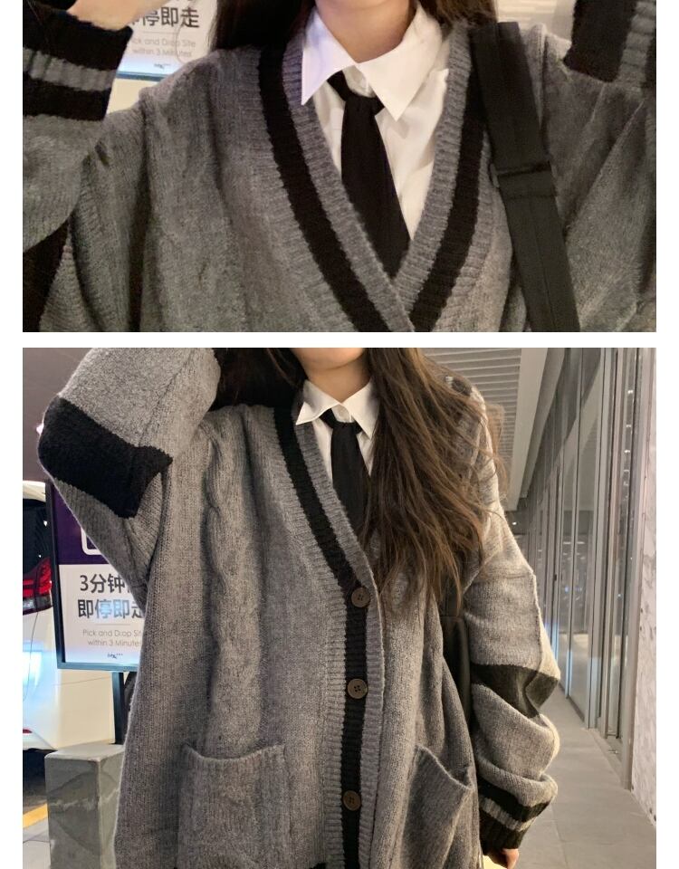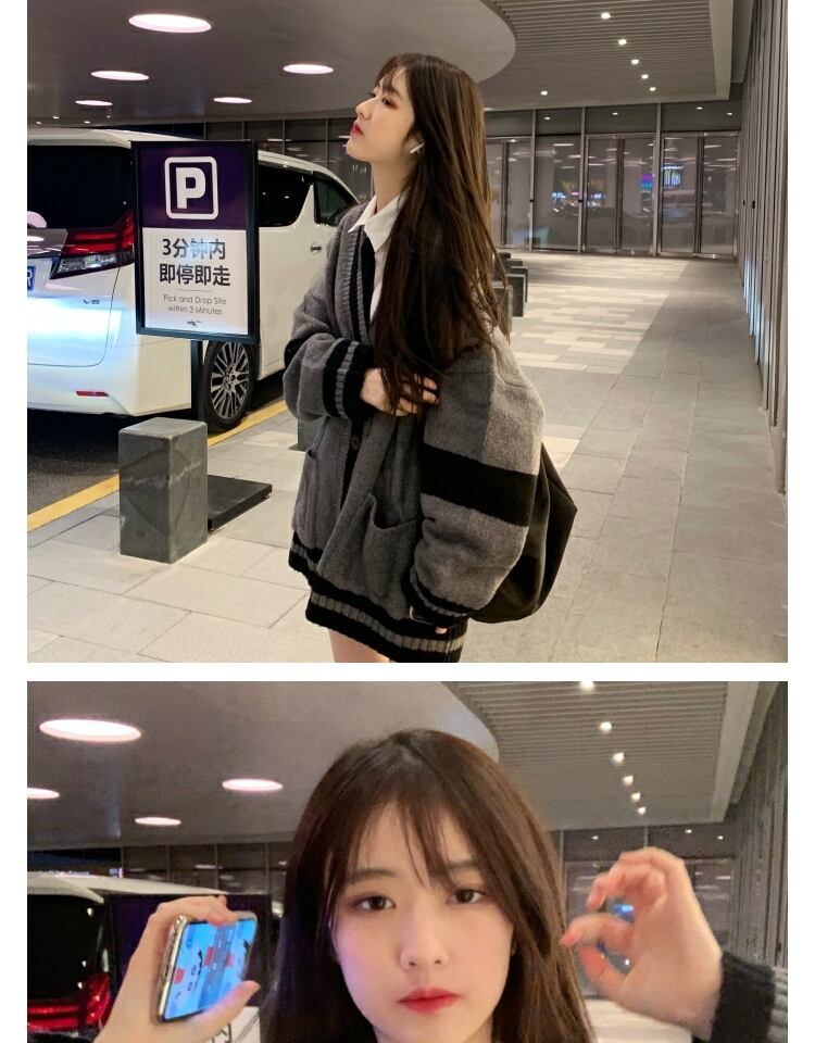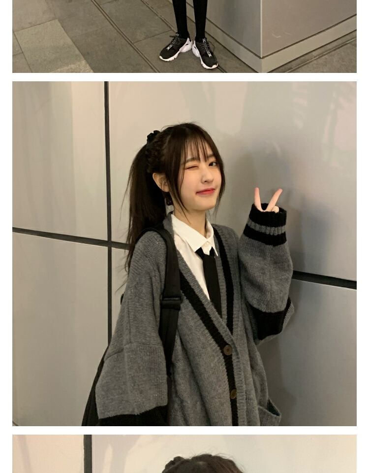 カラーセーター ジャケット Vネックオータムウィンターストライプスタイルニットトップス 秋物 冬物 萌量不足52140832291