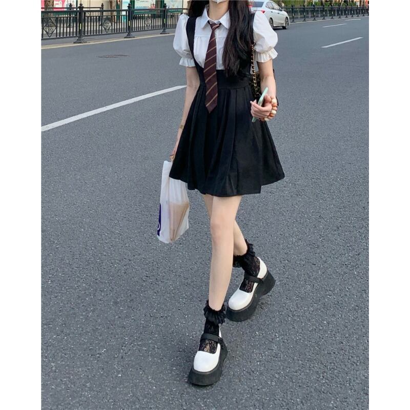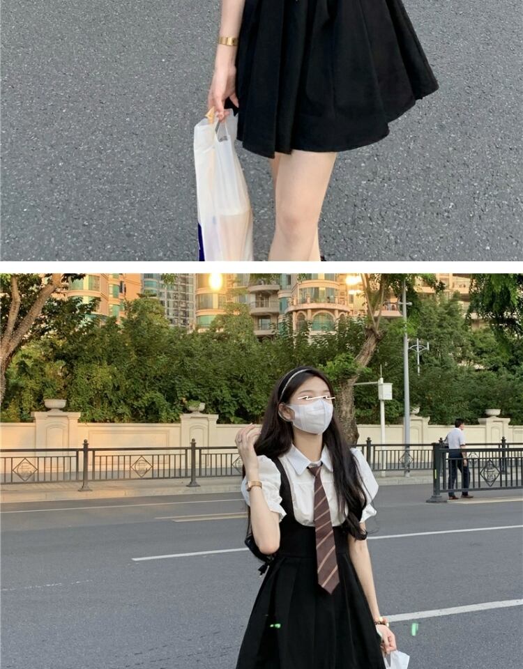ブラックスカート ドレス サマープリーツ薄手ウェスト 大人ガーリー スウィート キュート カジュアル 夏物 萌量不足92687533460