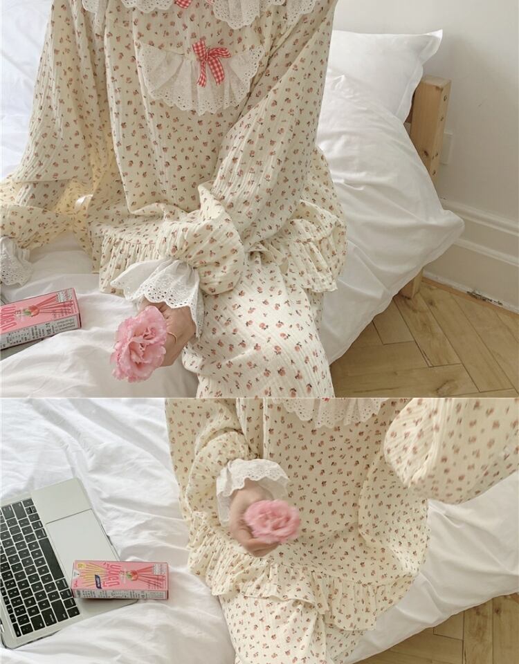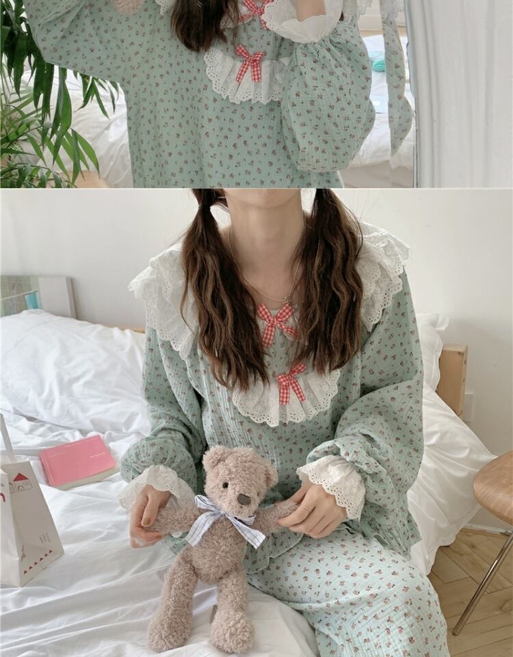 レースフローラルレディースオータム ロング リボン コットン 秋物 花柄 萌量不足42721015390