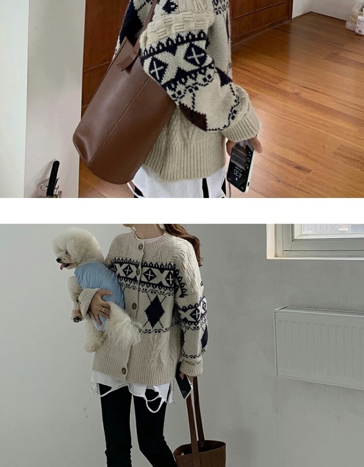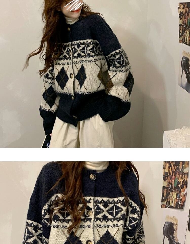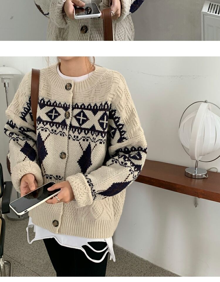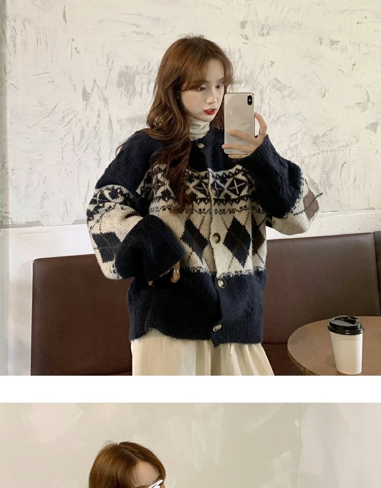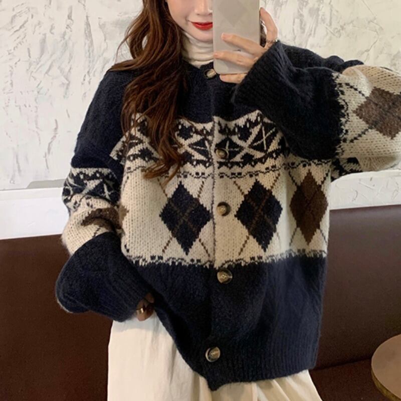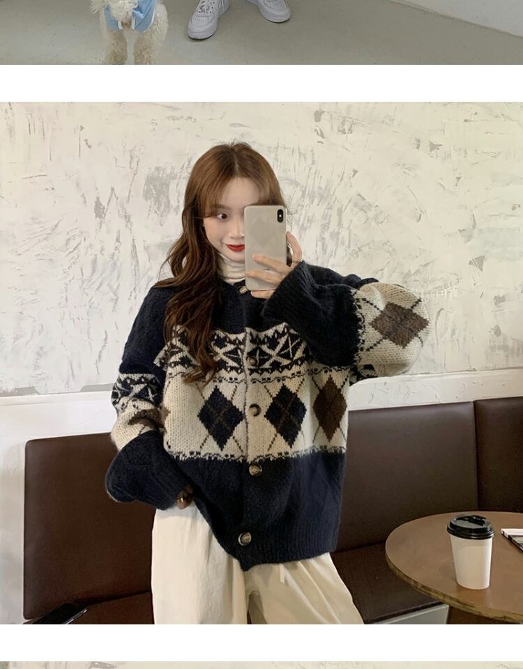 セーター オータムウィンタースタンダードシャツ ルーズカジュアルニットカーディガンジャケット ロング レトロ 秋物 冬物 萌量不足21383034400
