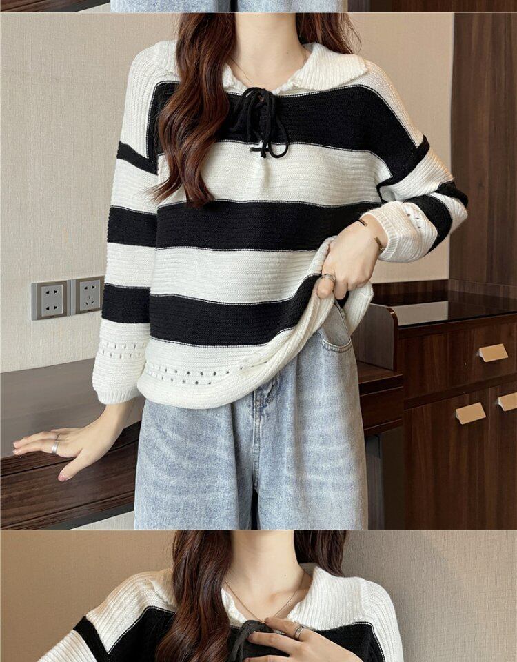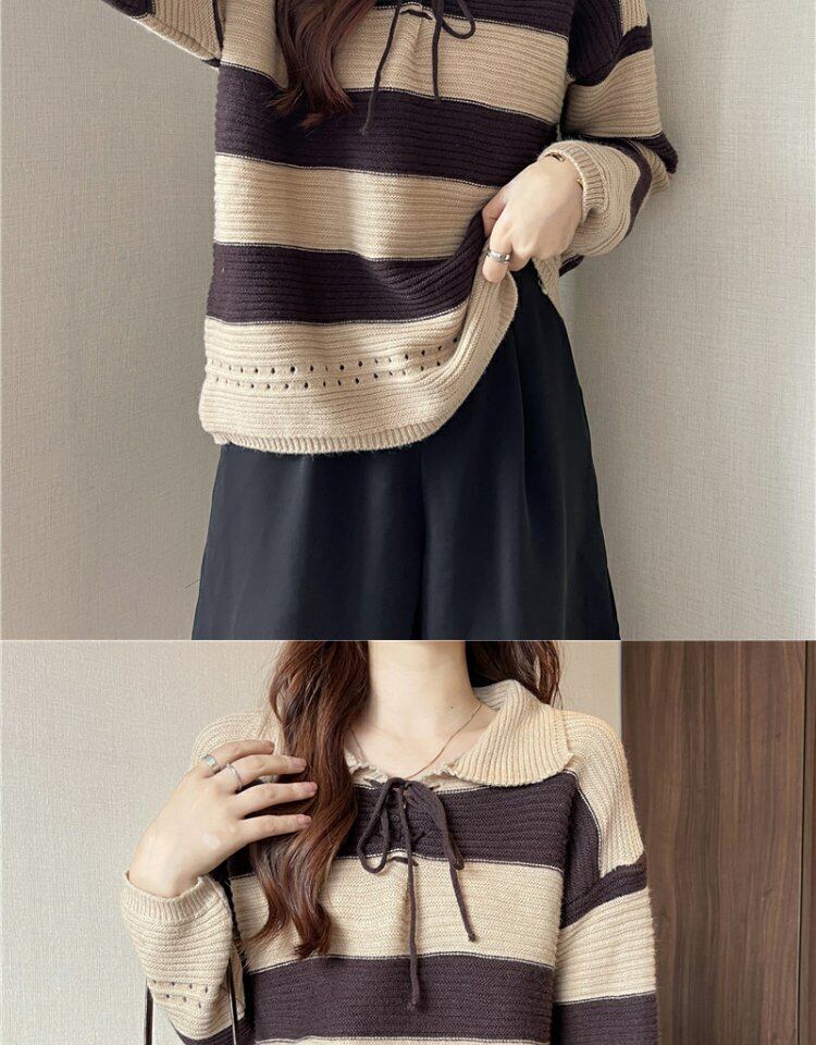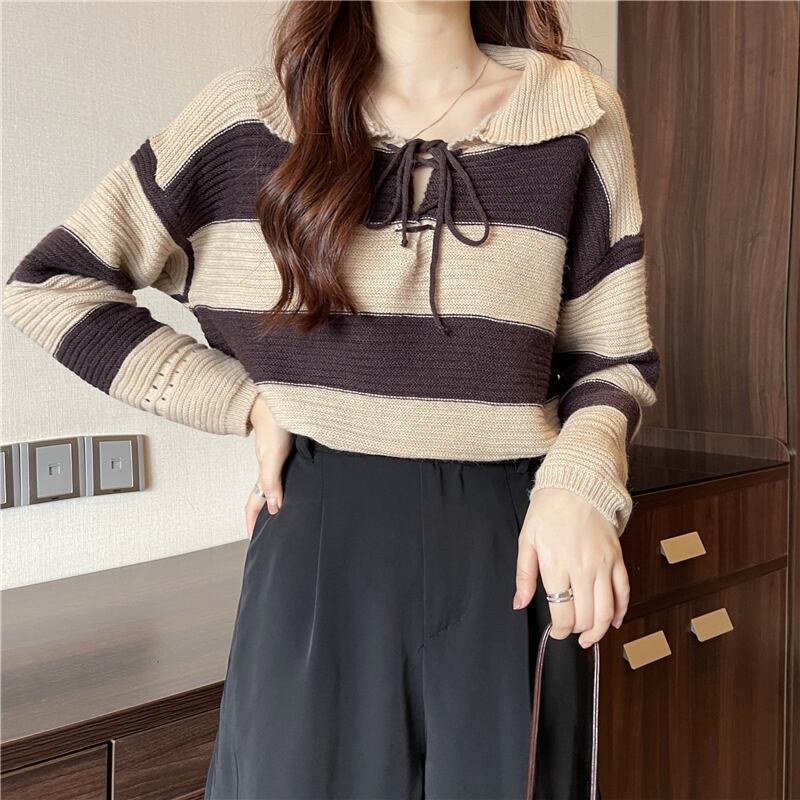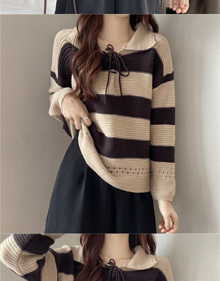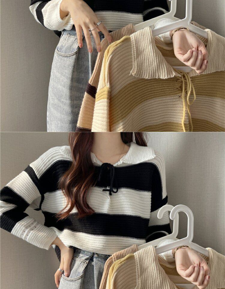 カラーストライプセーター 薄手スプリングオータムスタンダードブラウス ロング レトロ 春物 秋物 萌量不足64444745951