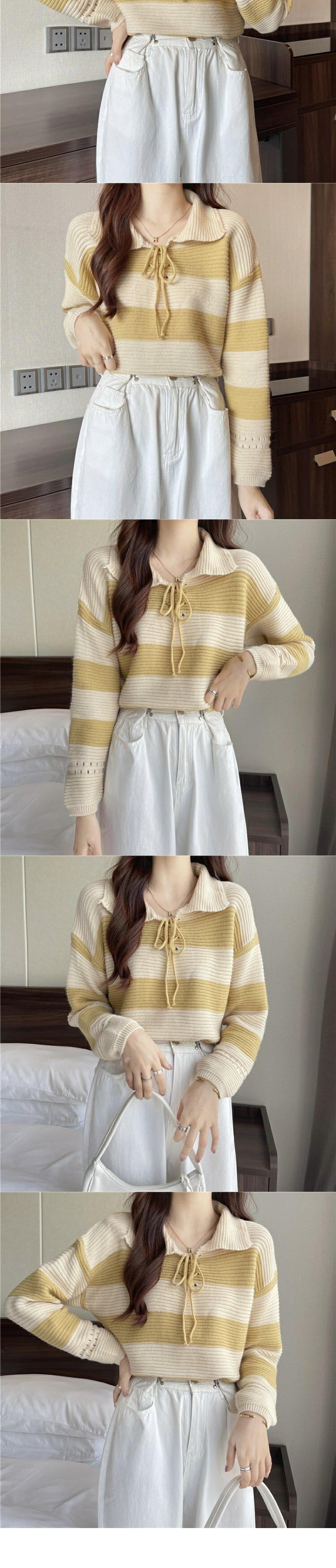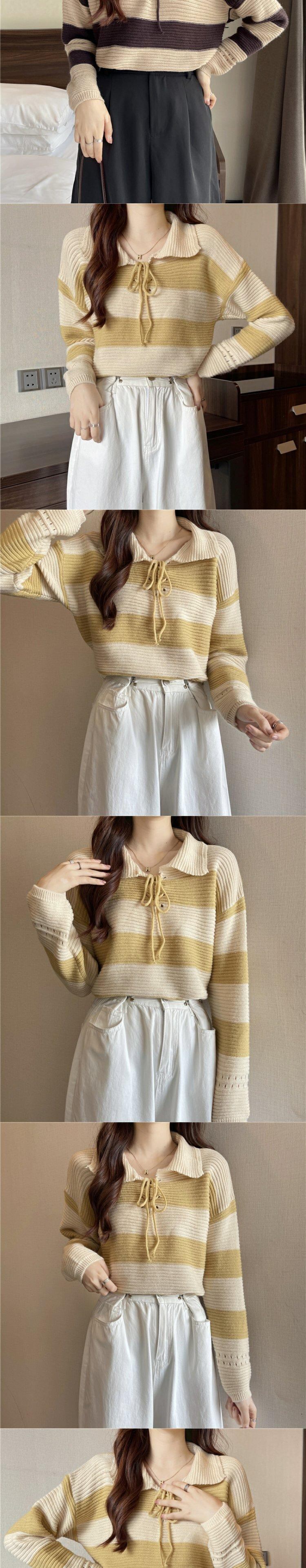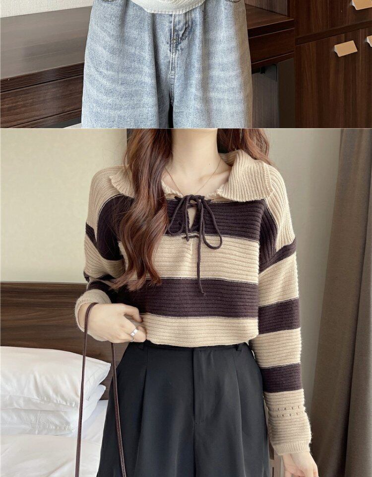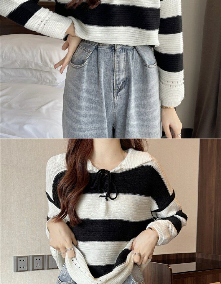 カラーストライプセーター 薄手スプリングオータムスタンダードブラウス ロング レトロ 春物 秋物 萌量不足64444745951