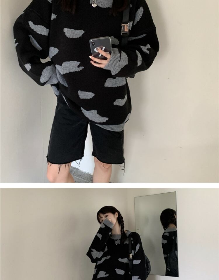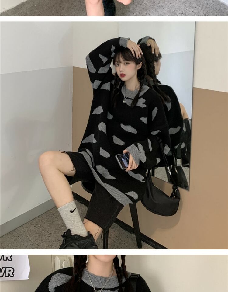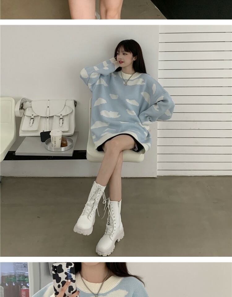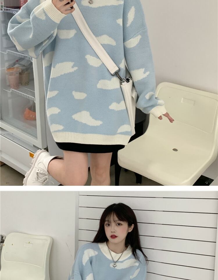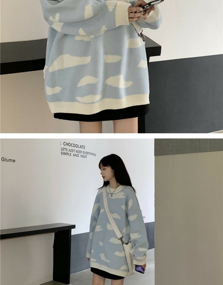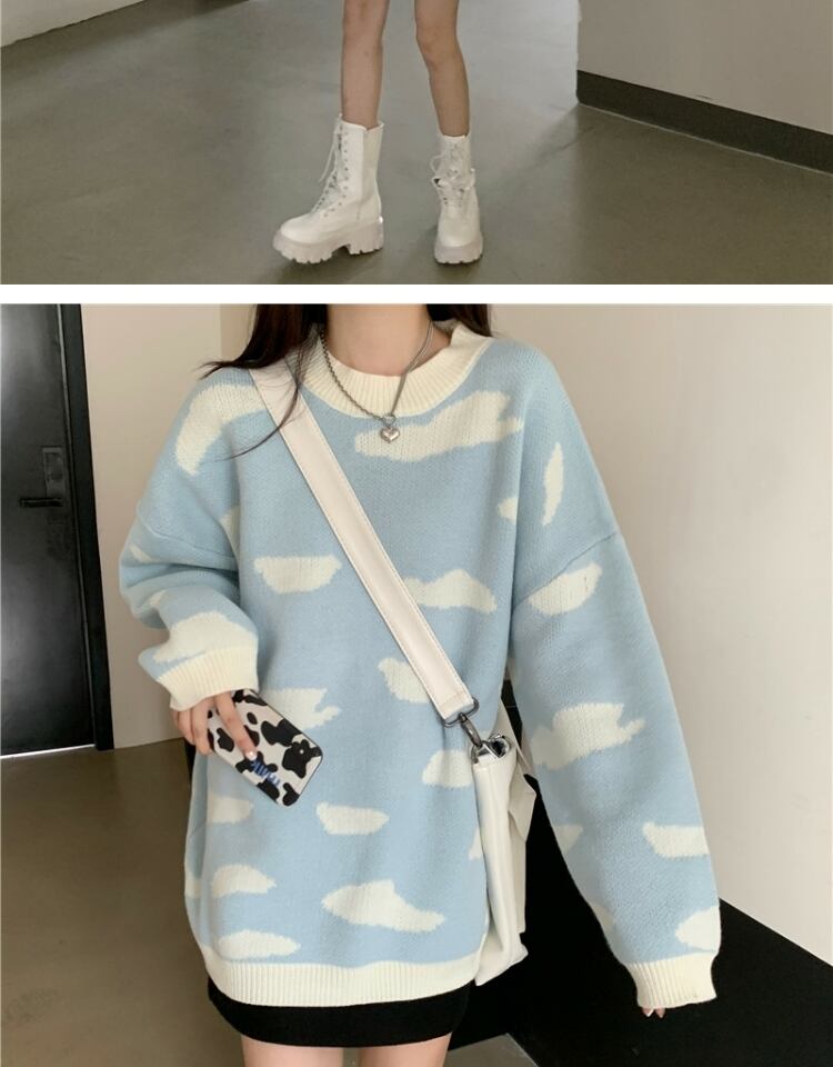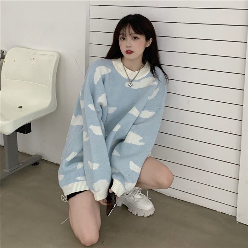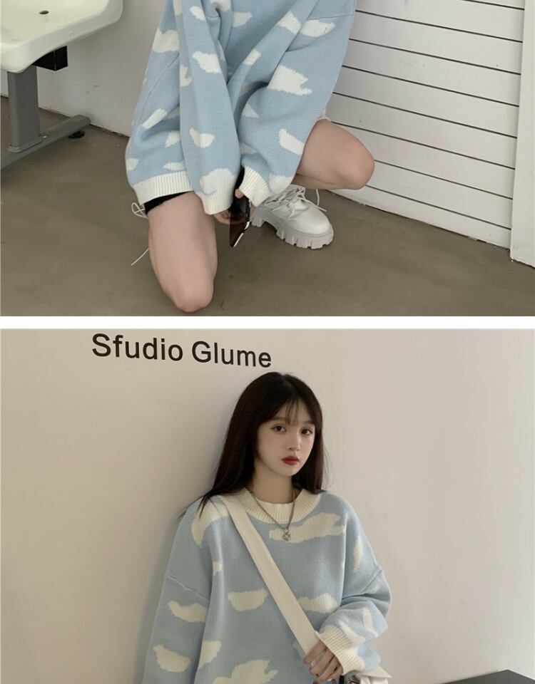 ブルーセーター スタイルスプリングオータムルーズプルオーバー ニット ストリート 春物 秋物 萌量不足18983285908