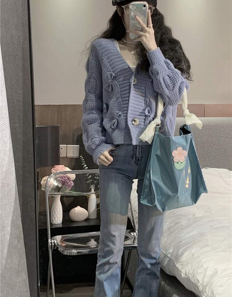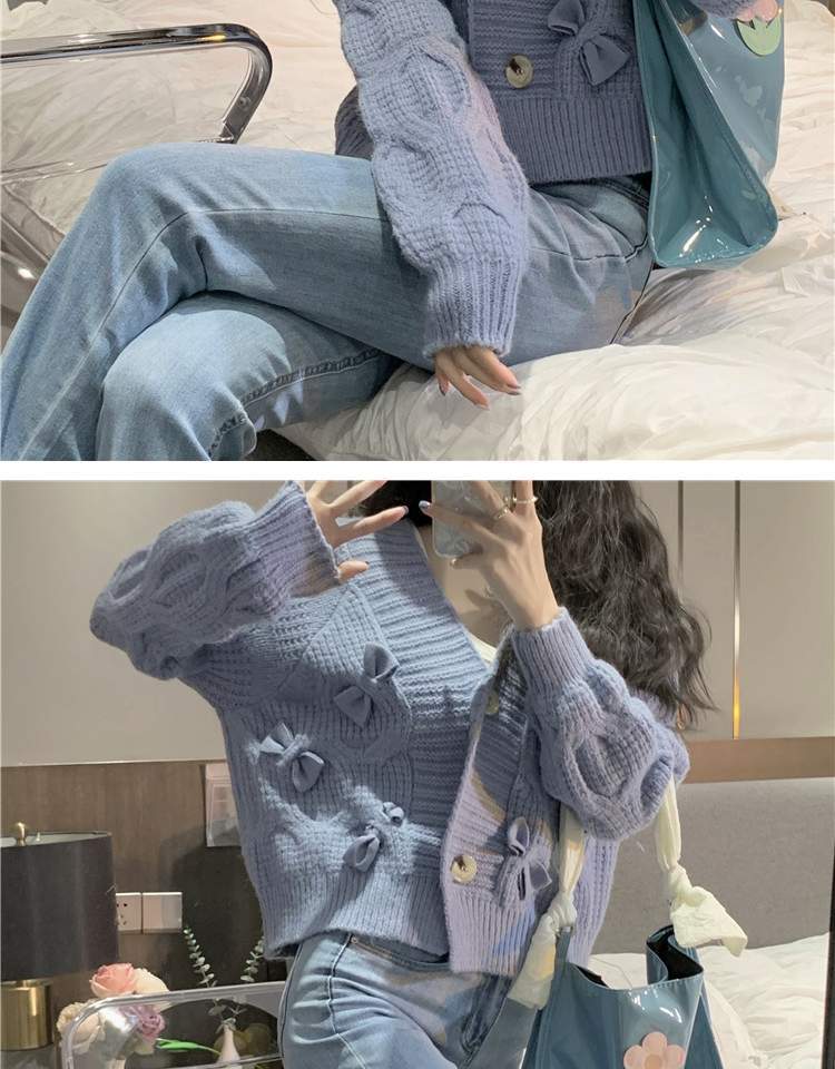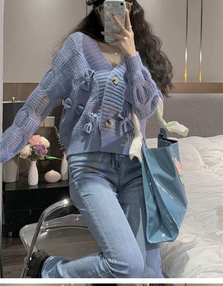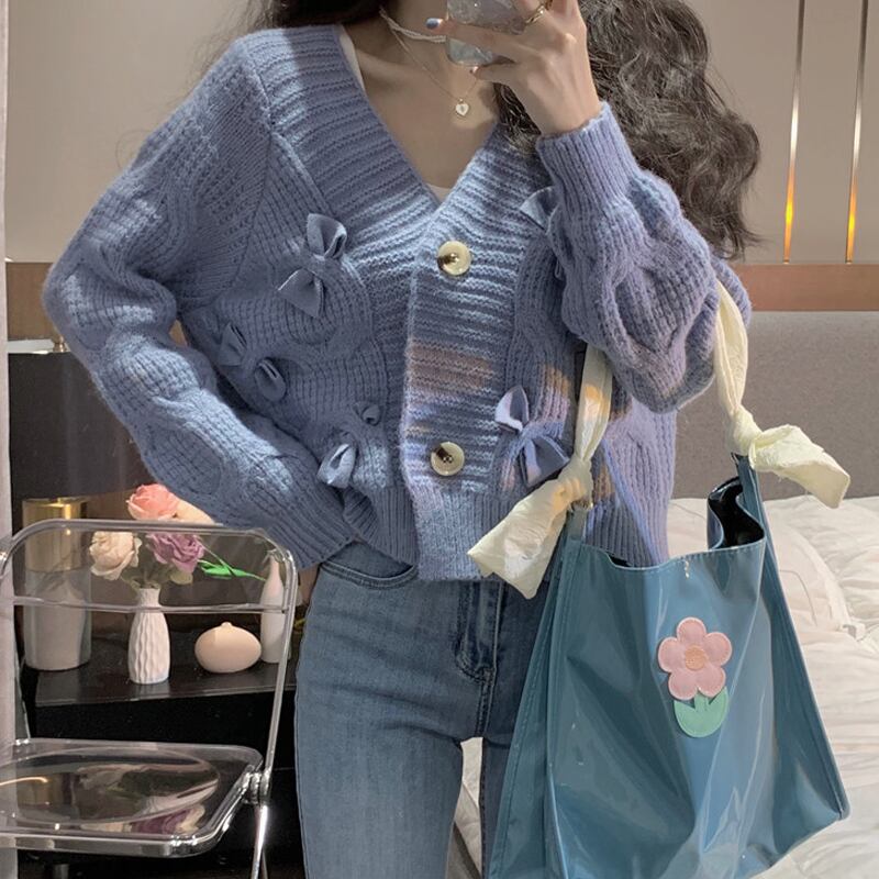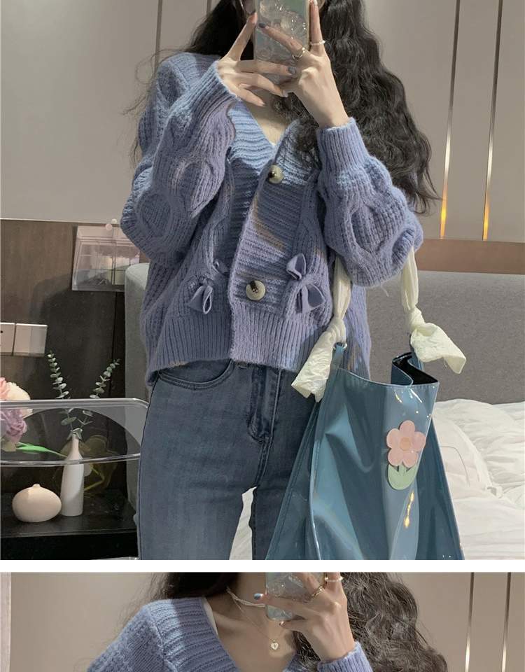 ブルーセーター コート オータムウィンタースタイルショートニットカーディガントップス 秋物 冬物 萌量不足35475975828