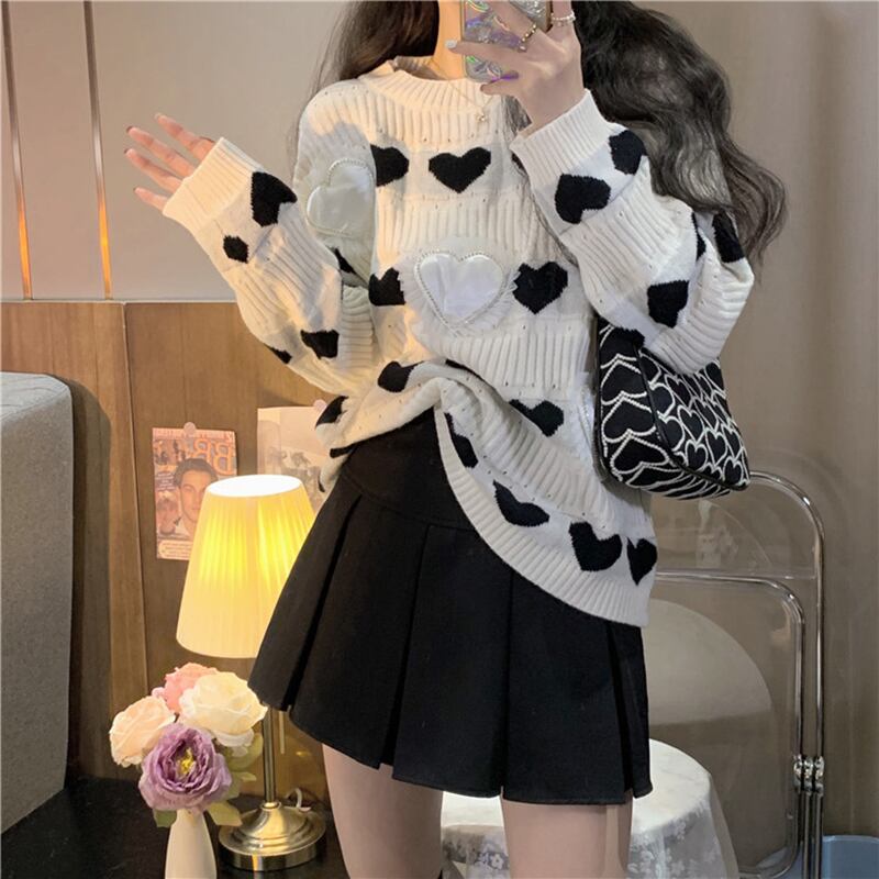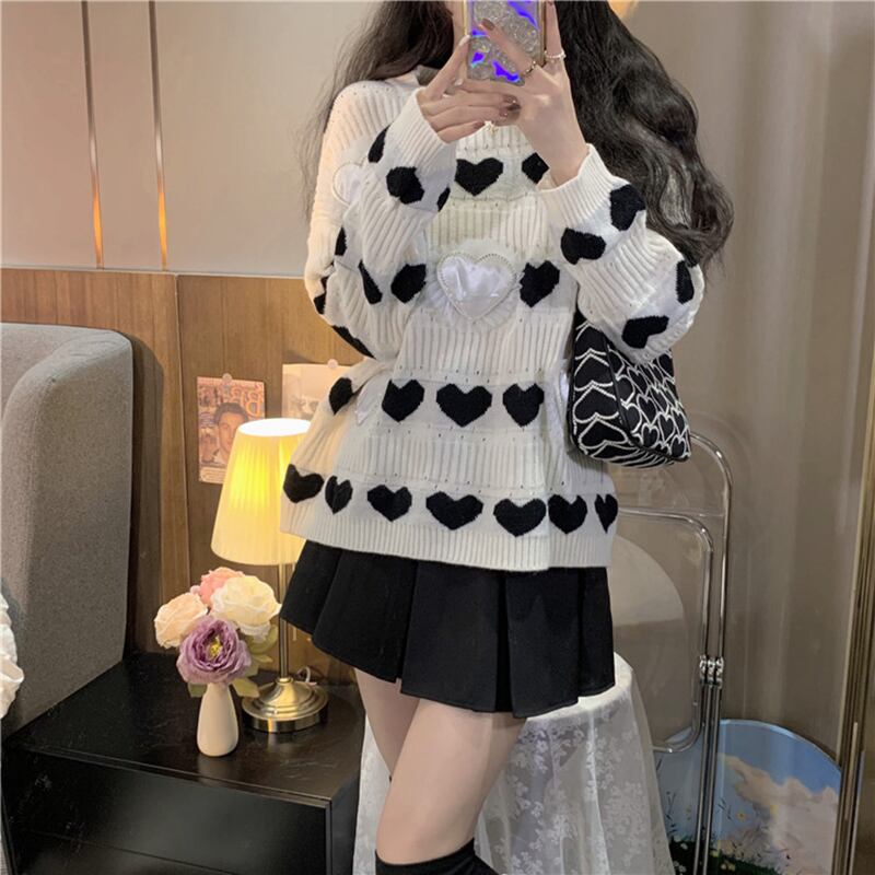 ラウンドネックセーター レディーススタイルルーズニットトップス ロング 大人ガーリー スウィート キュート カジュアル オータム 秋物 ウィンター 冬物 Oネック 萌量不足68905334781