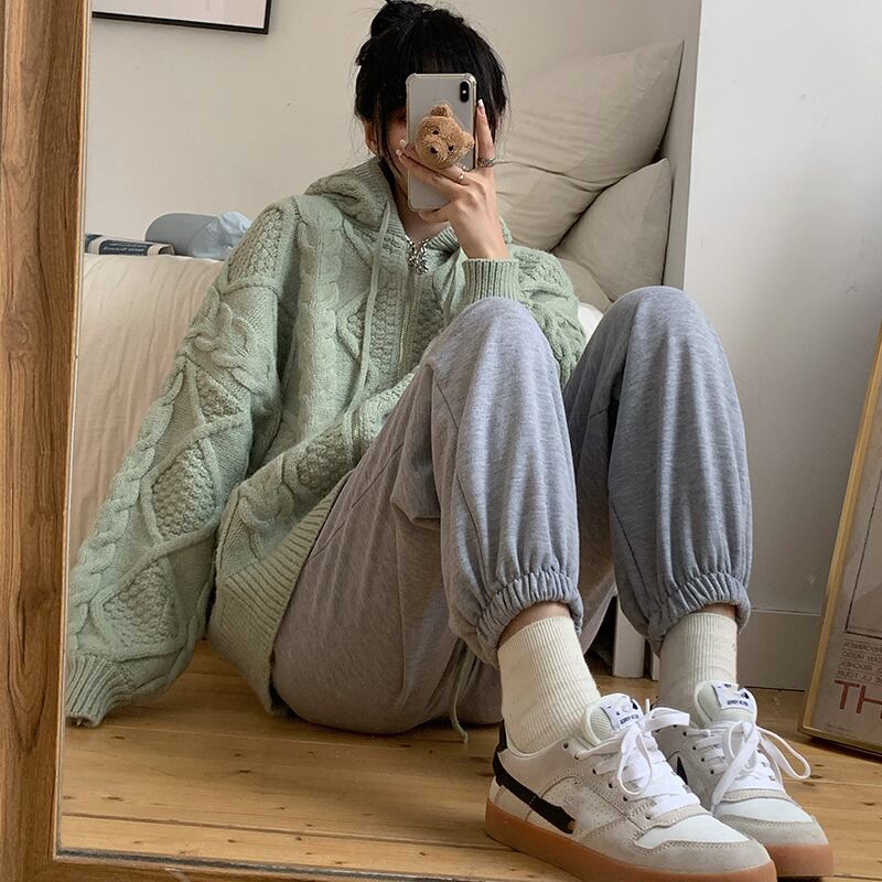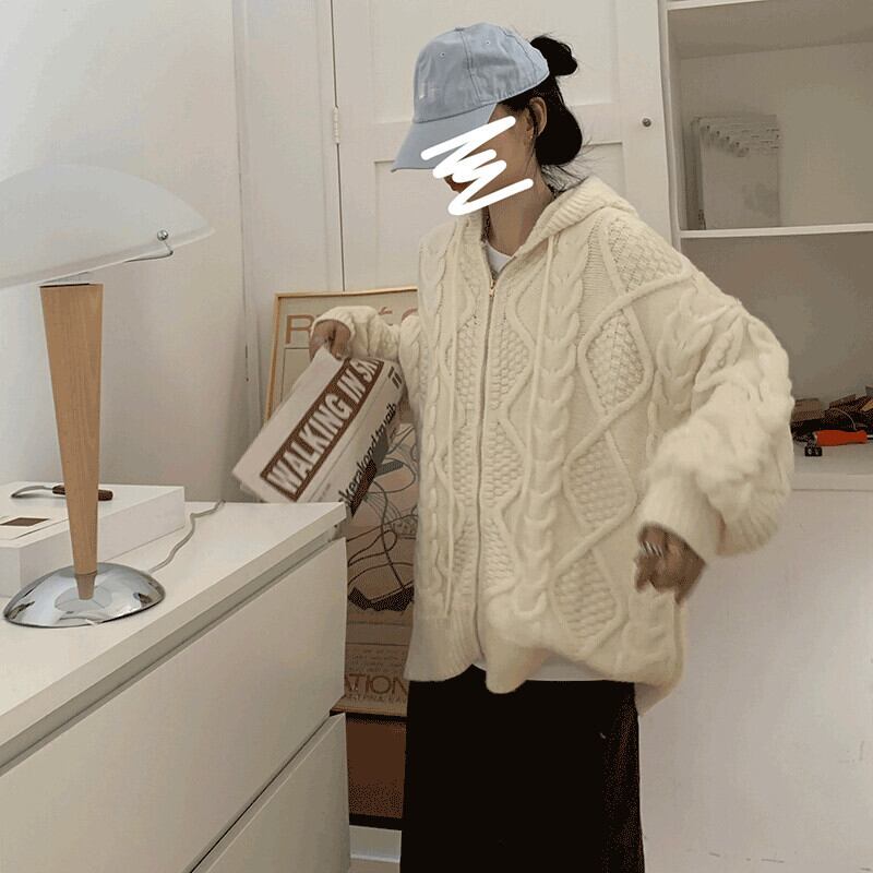 オータムウィンタースタイルジッパーフードセーター レディースルーズニットカーディガンジャケット トップス 秋物 冬物 萌量不足47111447695