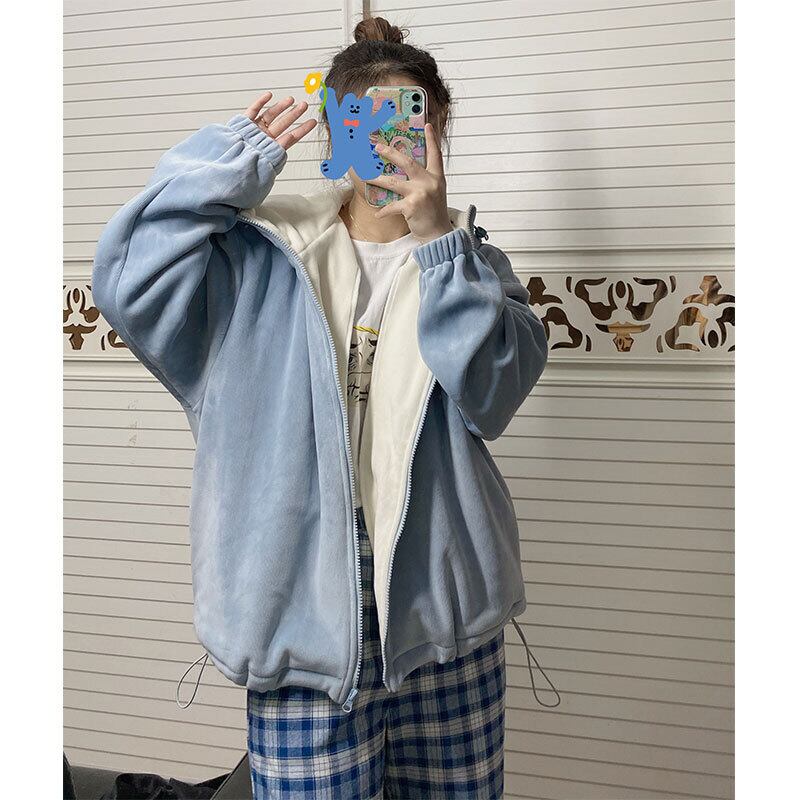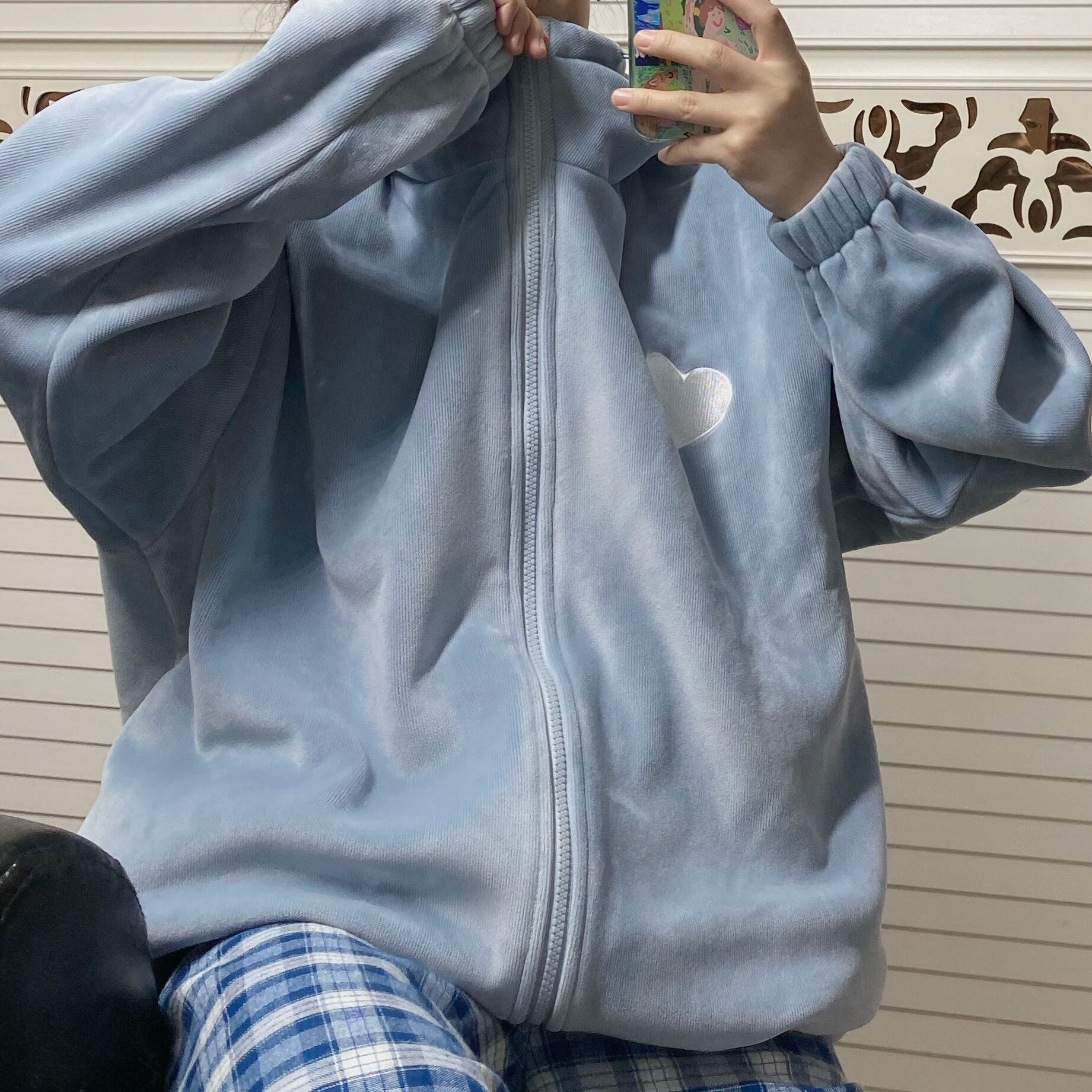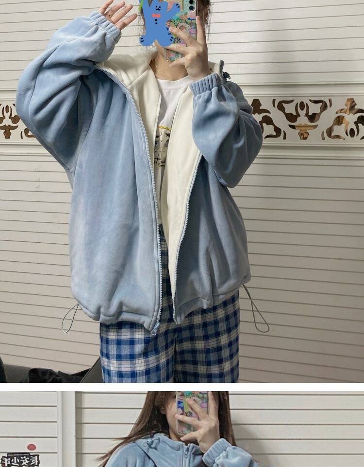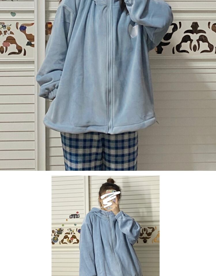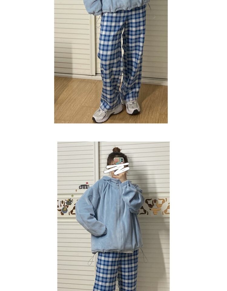 オータムウィンタースタイルホワイトブルーベルベットフードセーター ジャケット 薄手格子柄パンツ 大人ガーリー スウィート キュート カジュアル 秋物 冬物 萌量不足15051982082