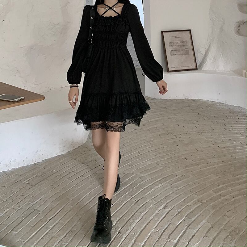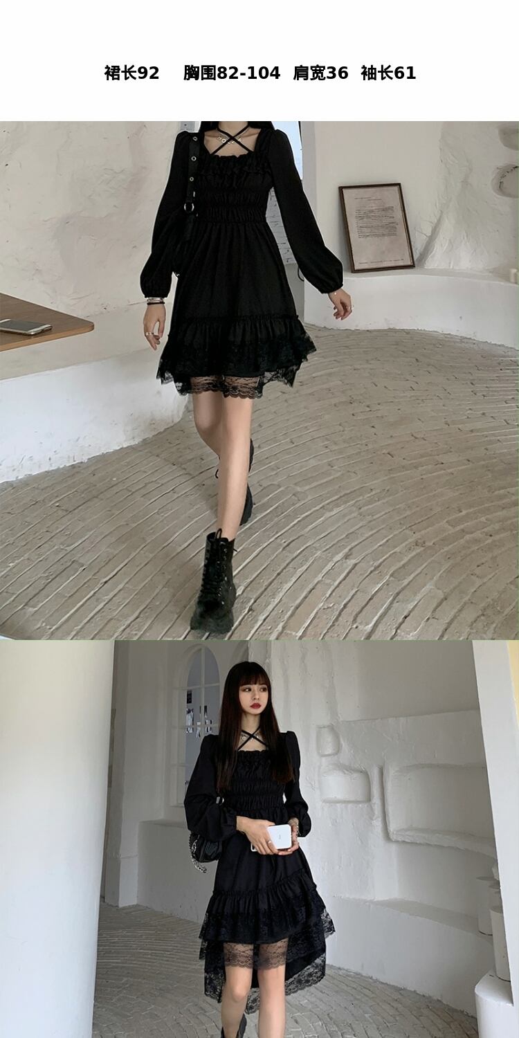 ダークドレス オータムウィンターレースカラースカート ロング 秋物 冬物 スクウェア ステッチ 萌量不足92200768157