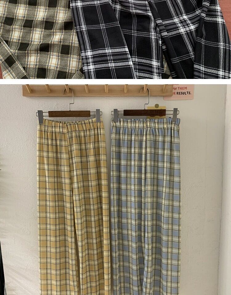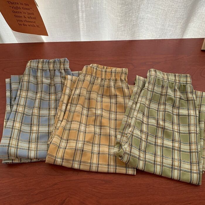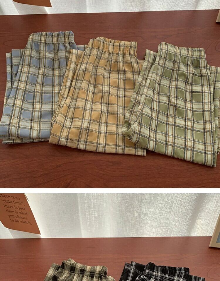 ハイウェスト格子柄パンツ ルーズカジュアルスタンダードサマー薄手 レトロ 夏物 萌量不足87422338014