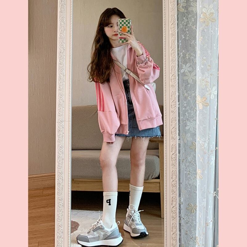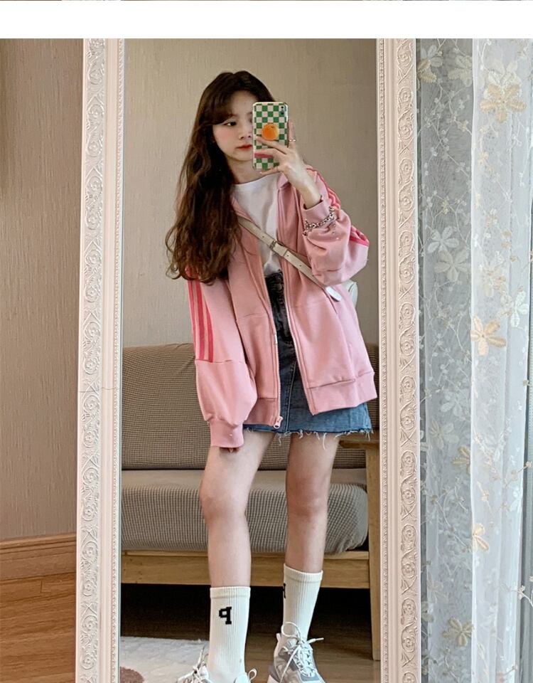 フードセーター コート スプリングオータムスタイルルーズトップス ピンク 春物 秋物 萌量不足56787382776