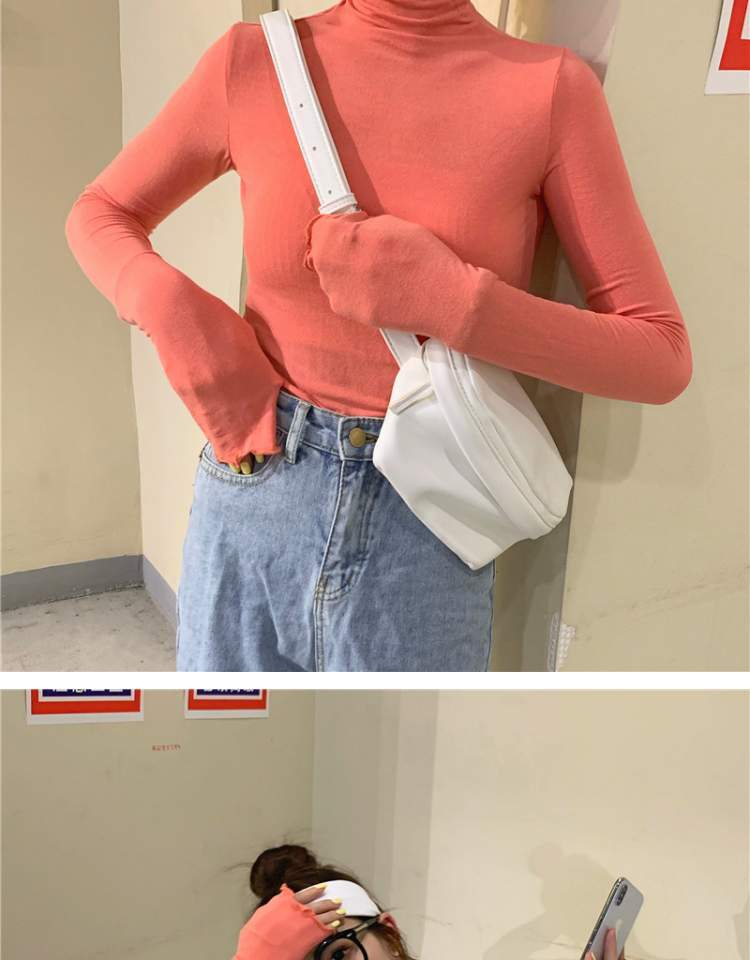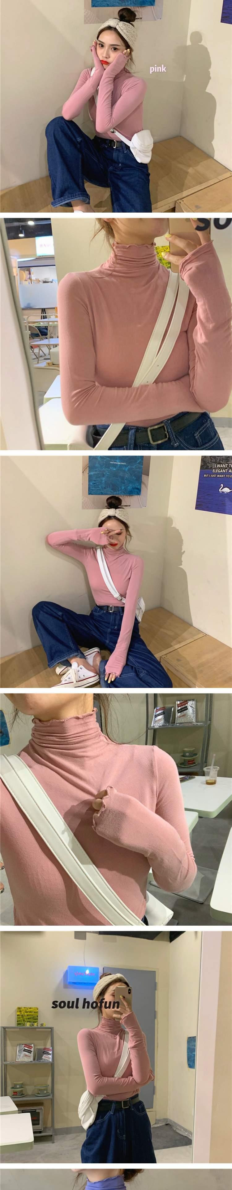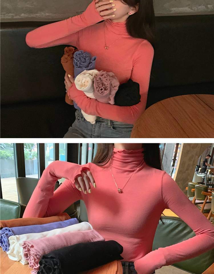 シャツ スプリングオータム薄手カラースリムトップス ピンク 春物 秋物 萌量不足59213503835