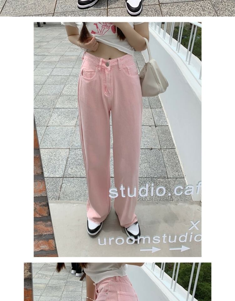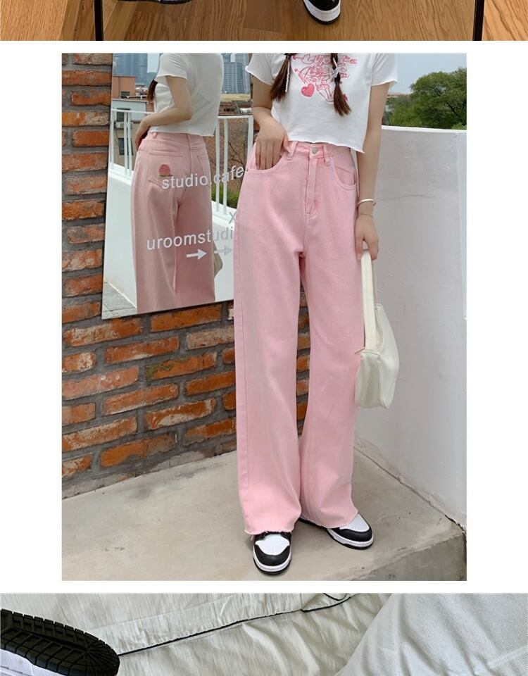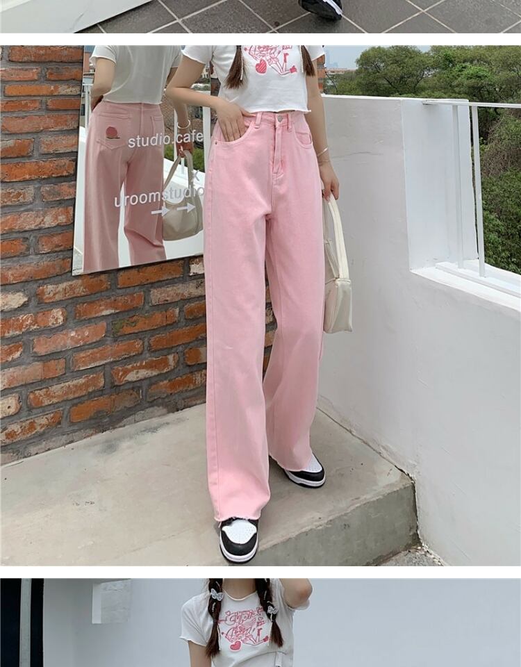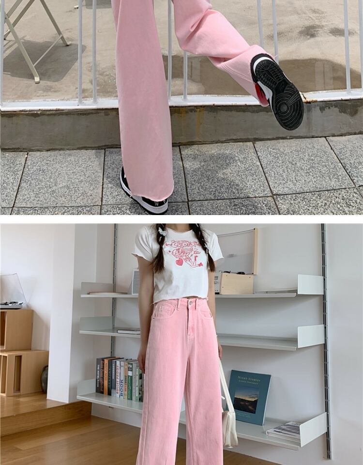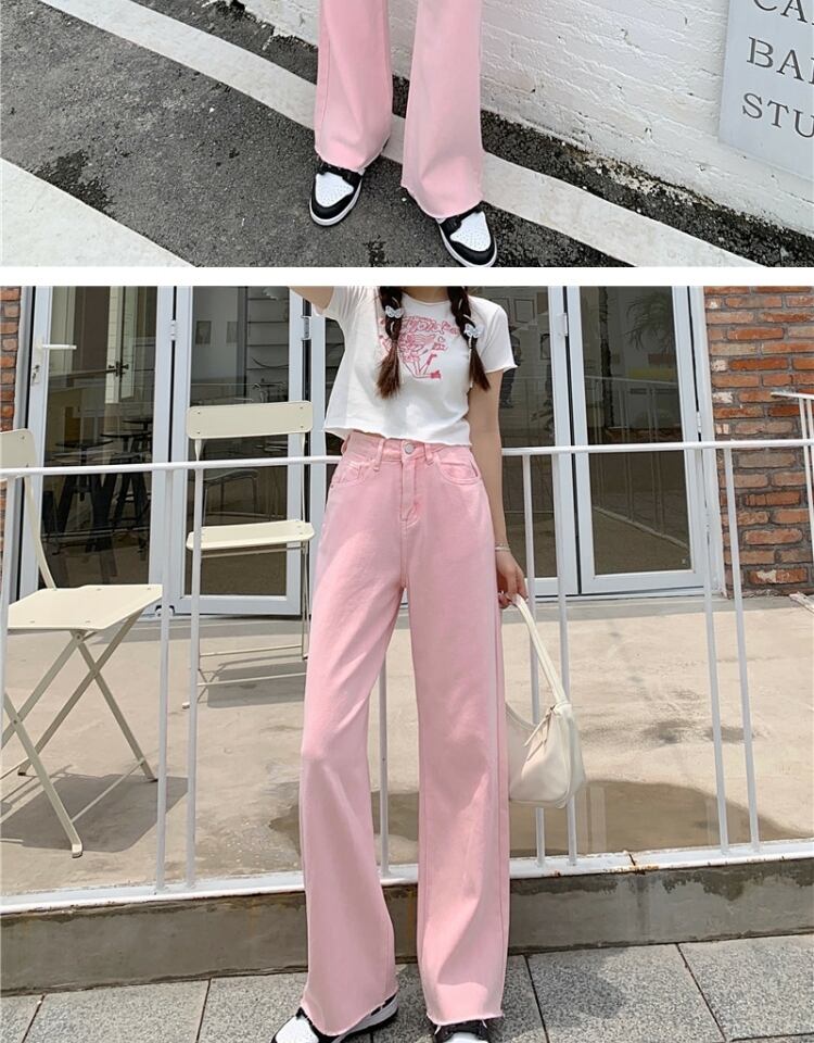 ジーンズ スプリングオータムパンツ ハイウェストウェスト薄手ワイドレッグルーズ ピンク 春物 秋物 ワイドパンツ 萌量不足22621437881