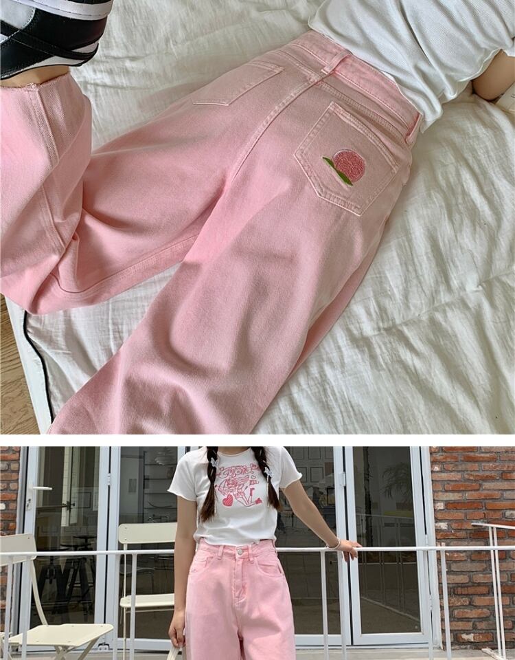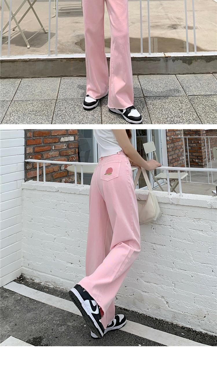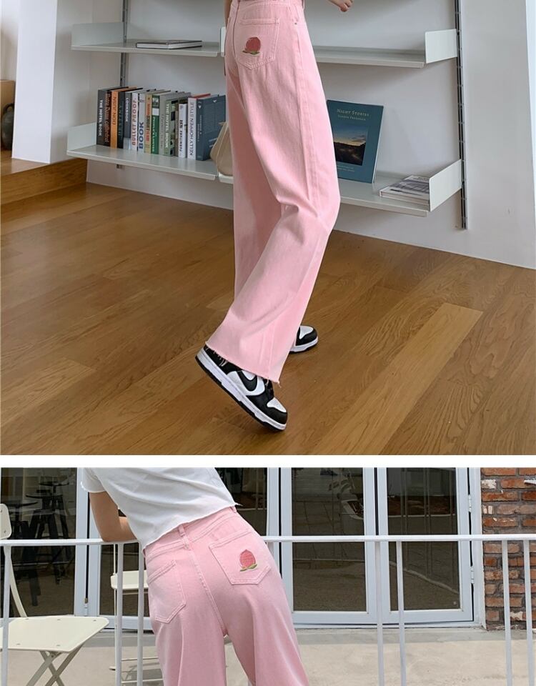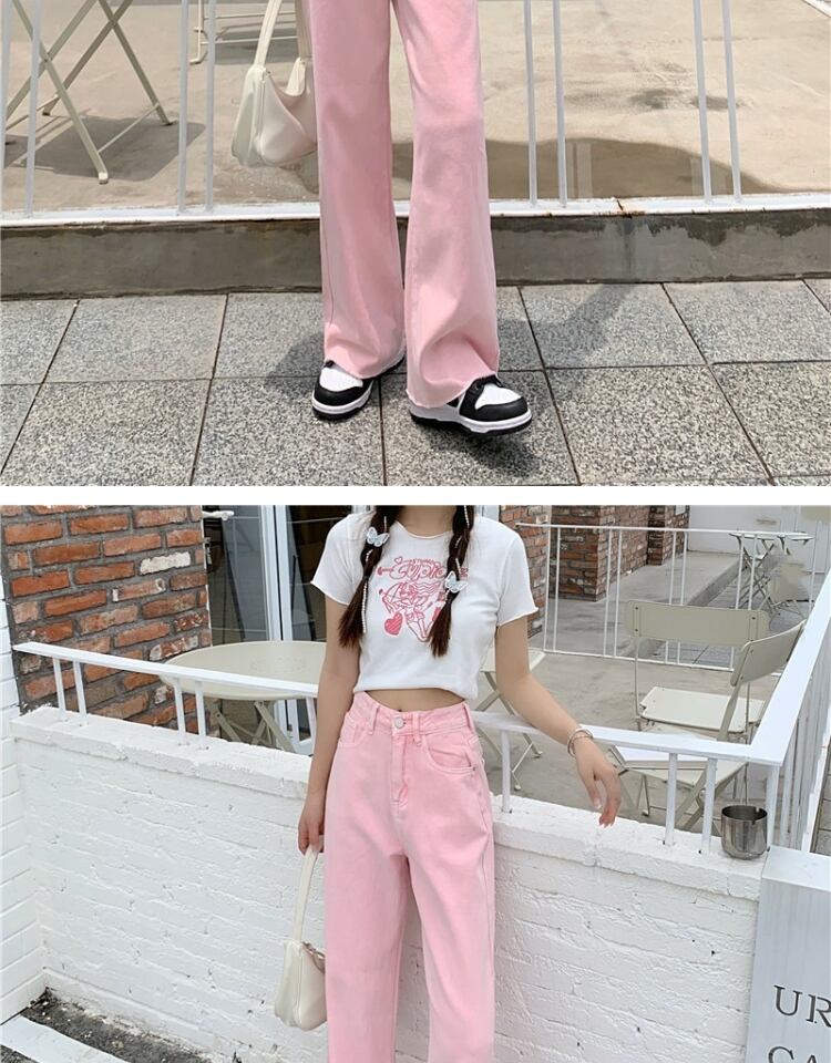 ジーンズ スプリングオータムパンツ ハイウェストウェスト薄手ワイドレッグルーズ ピンク 春物 秋物 ワイドパンツ 萌量不足22621437881