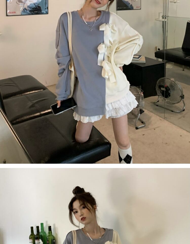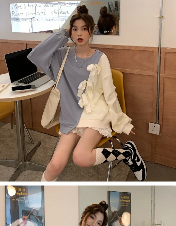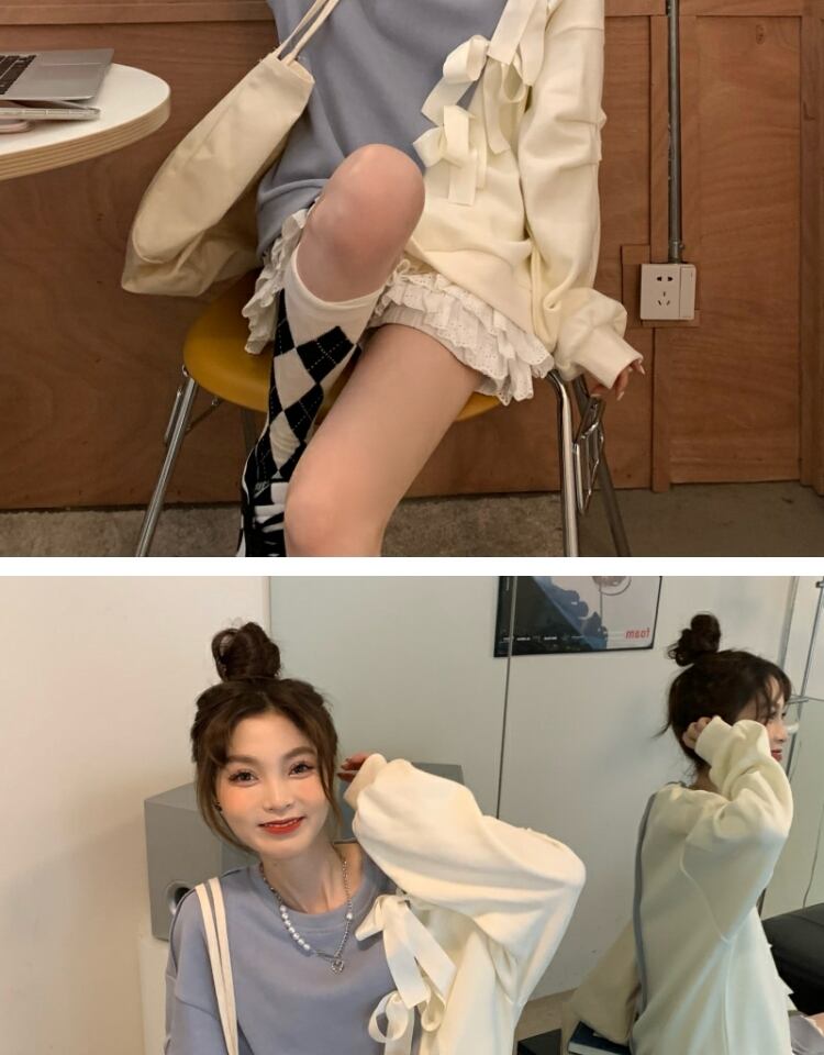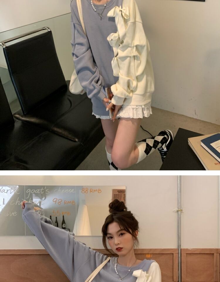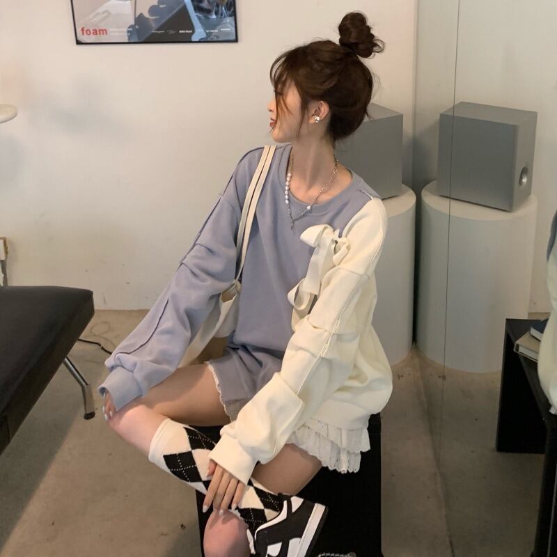 リボンルーズセーター レディースオータムブラウス ロング 秋物 ステッチ 萌量不足8068430068