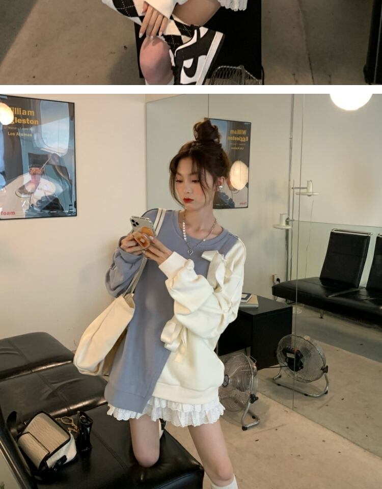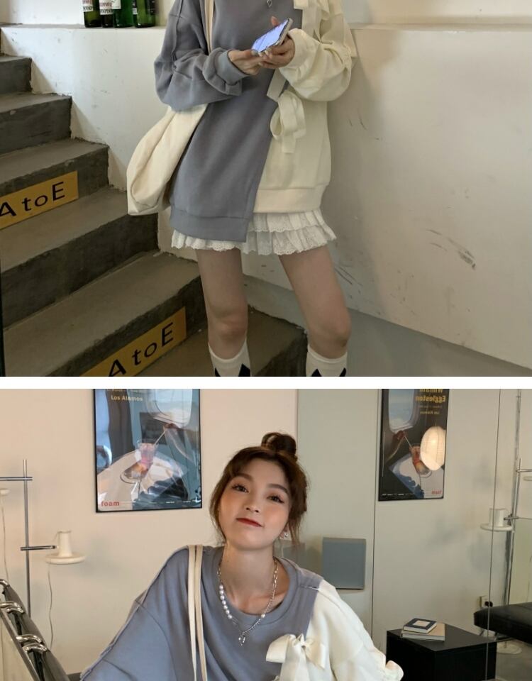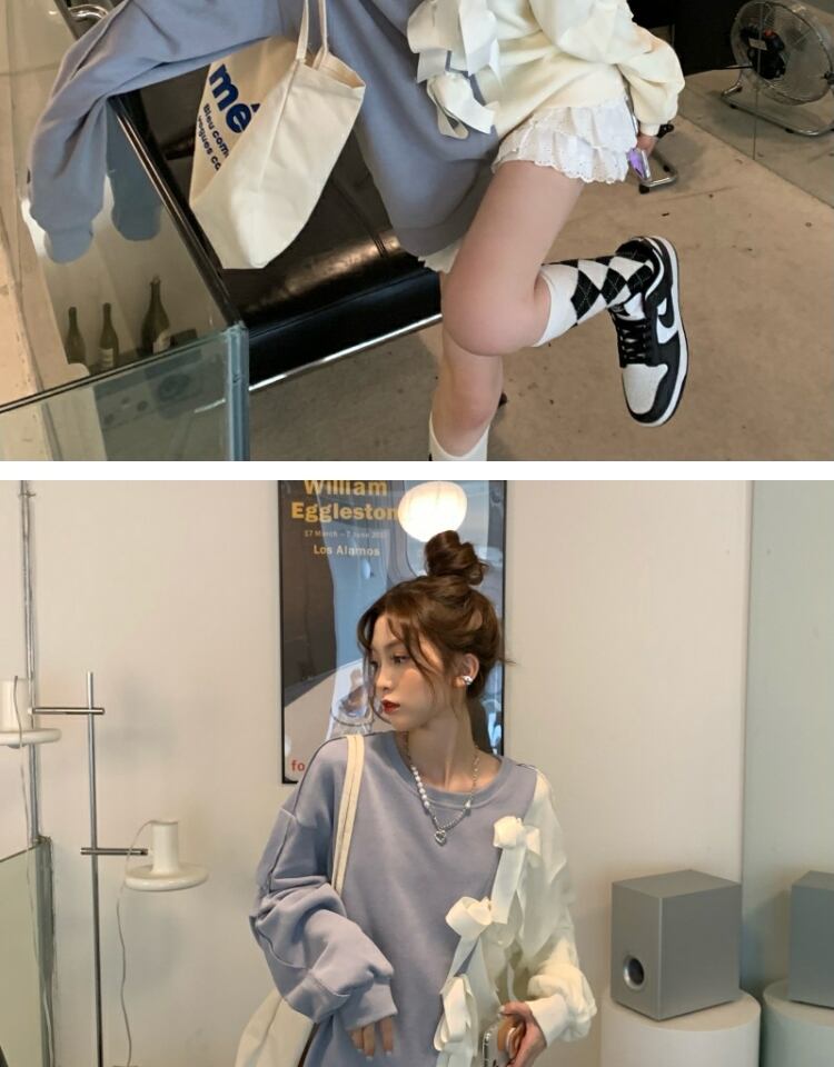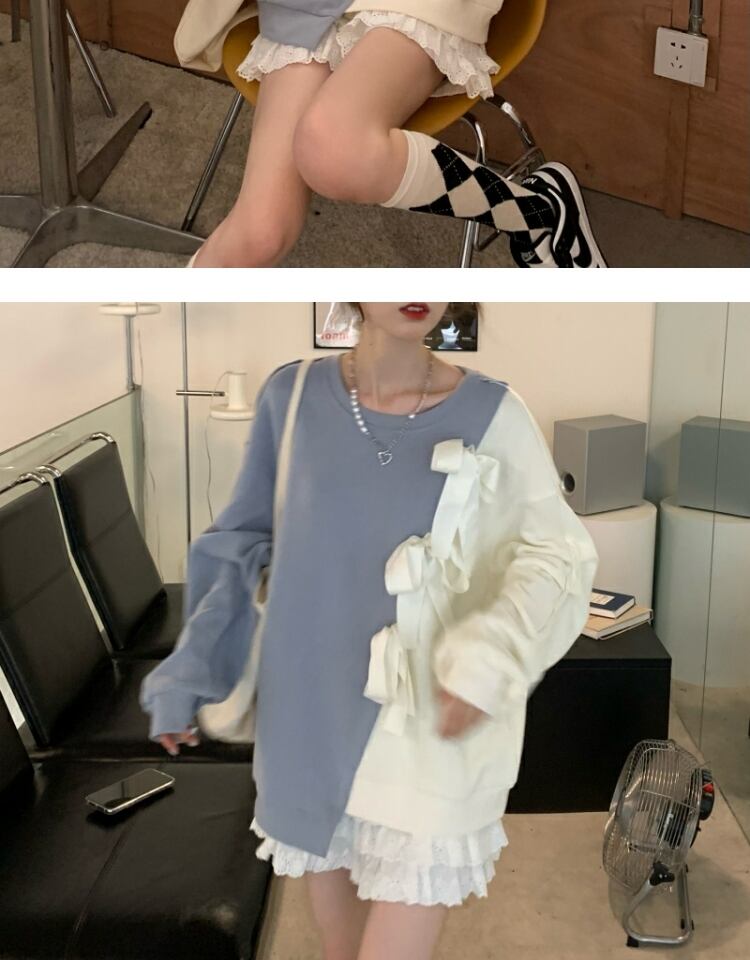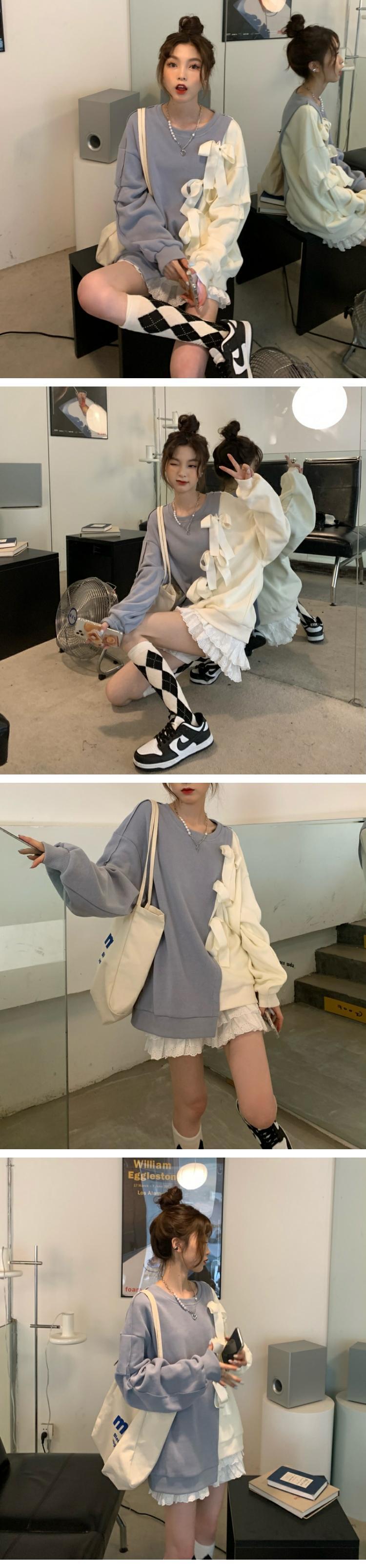 リボンルーズセーター レディースオータムブラウス ロング 秋物 ステッチ 萌量不足8068430068
