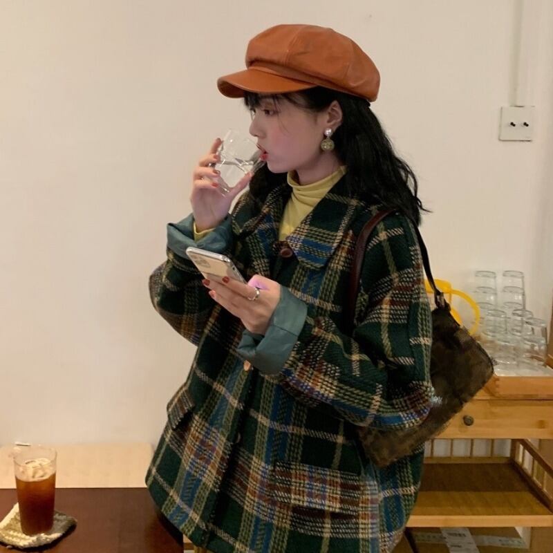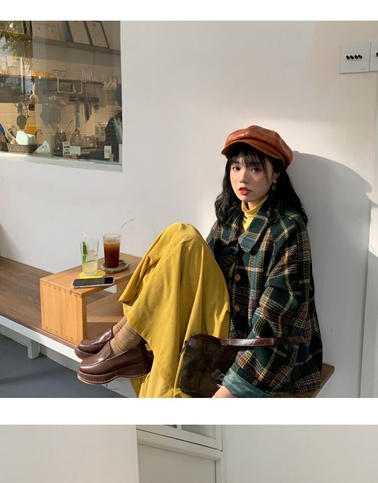 スプリングオータムスタンダード格子柄ジャケット スリムシャツ コーデュロイAラインスカート レディース レトロ 春物 秋物 萌量不足2088424864