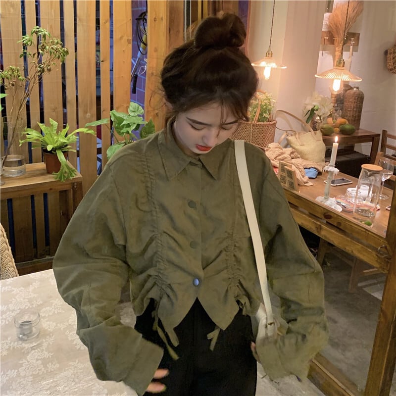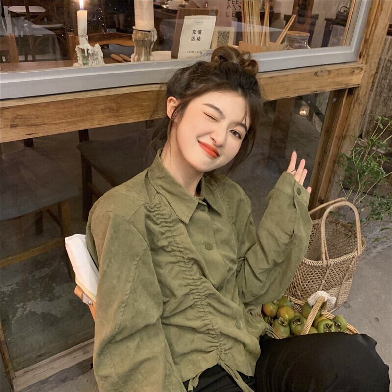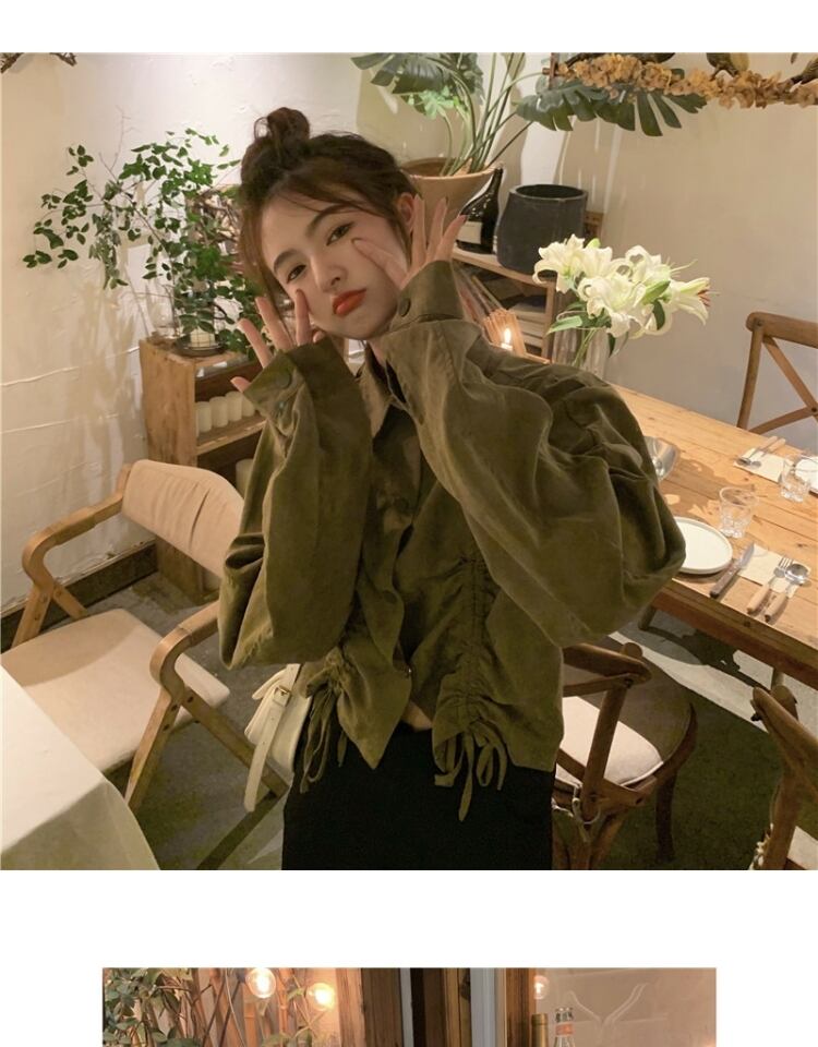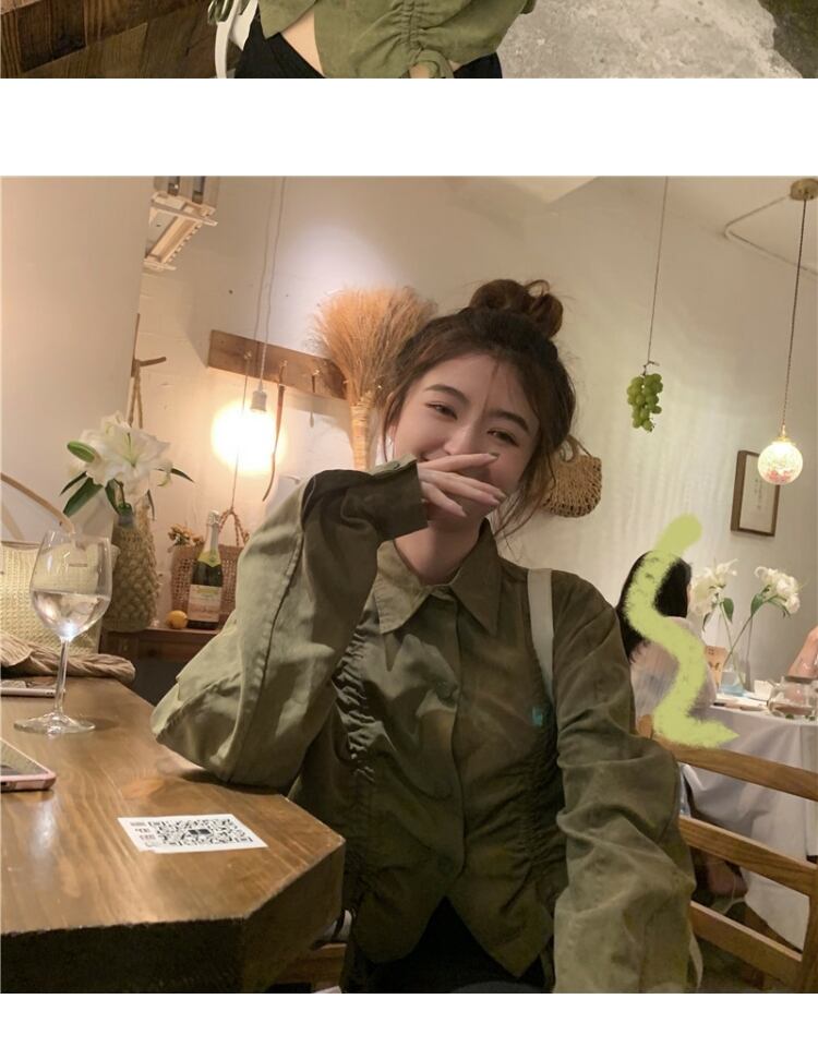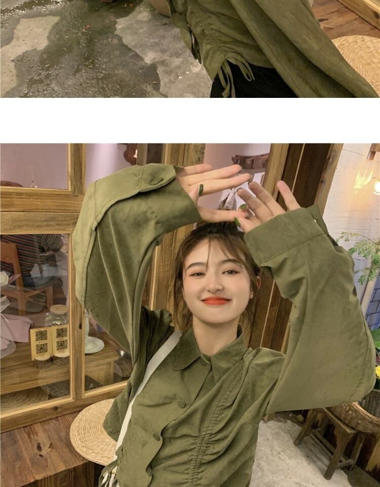 グリーンカジュアル薄手ジャケット レディーススプリングオータム ロング 春物 秋物 萌量不足98715263245