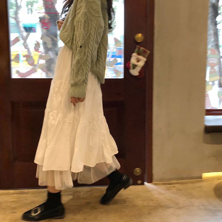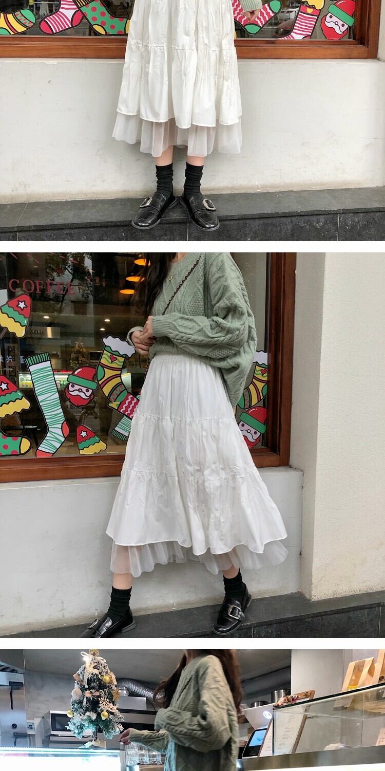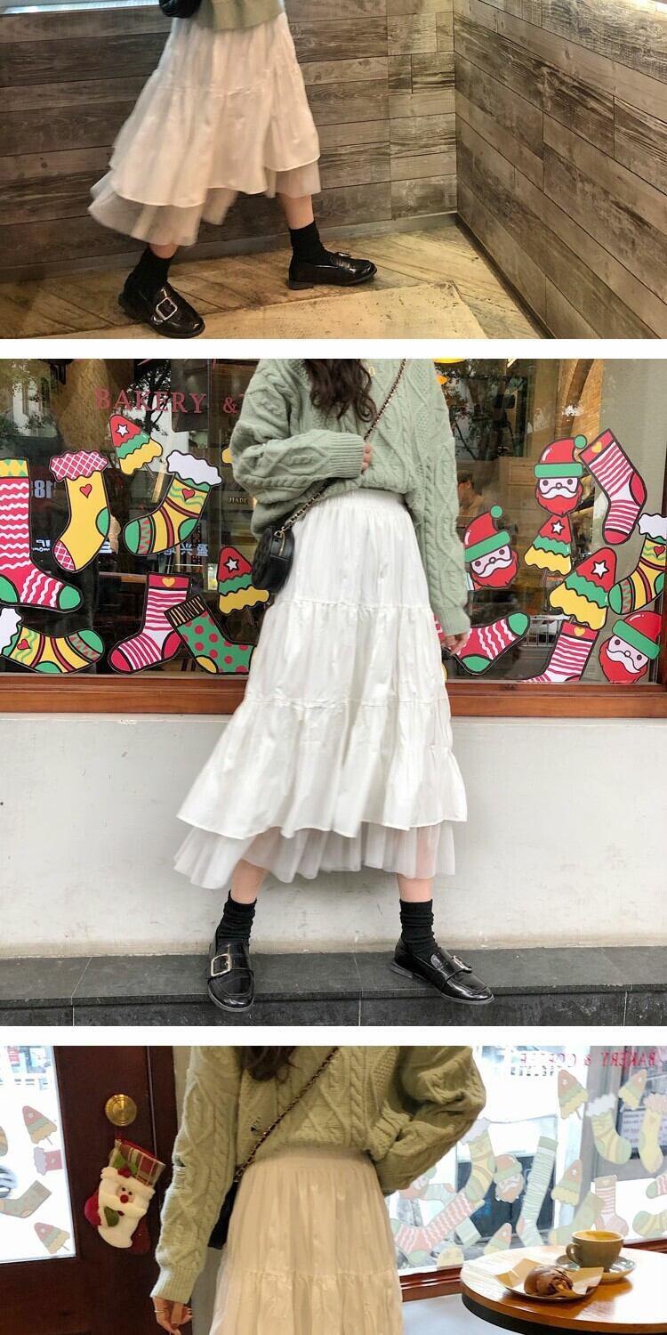 ルーズプリーツスカート スプリングオータムAライン 春物 秋物 ステッチ 萌量不足43324888786