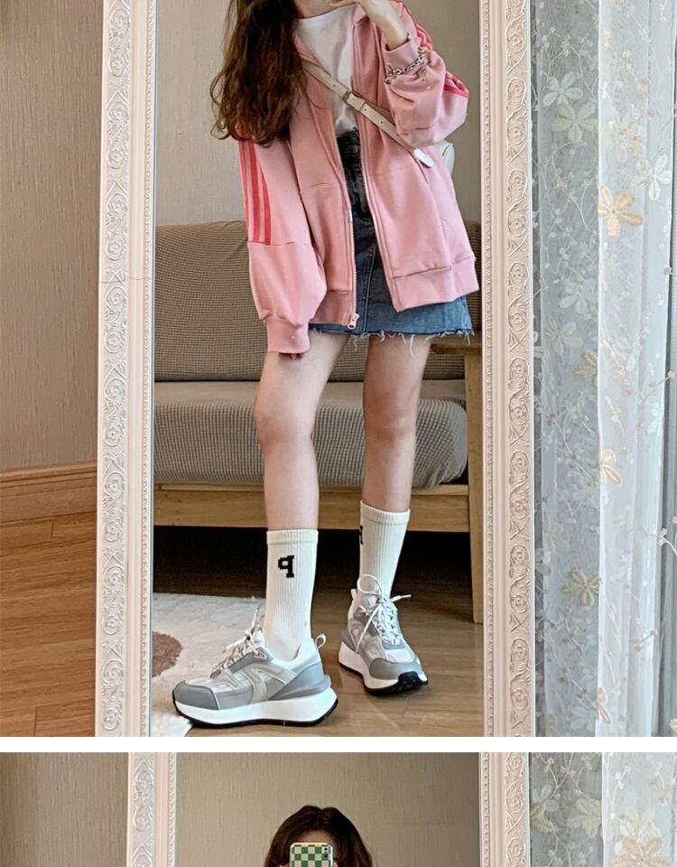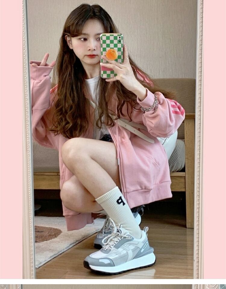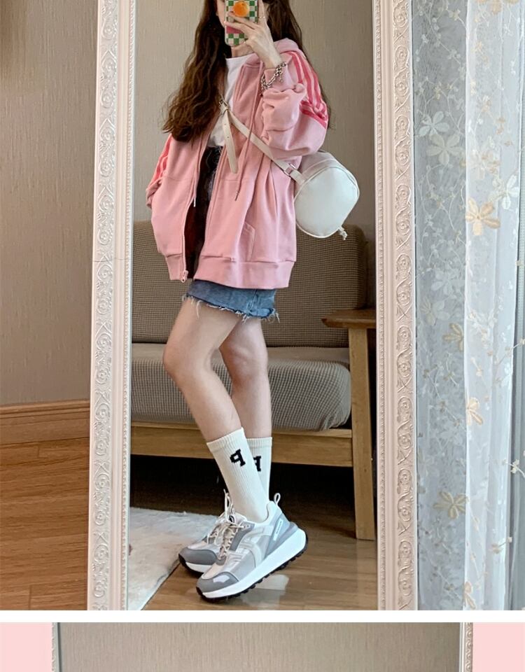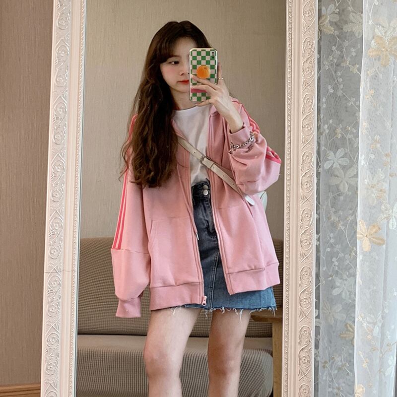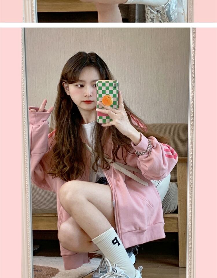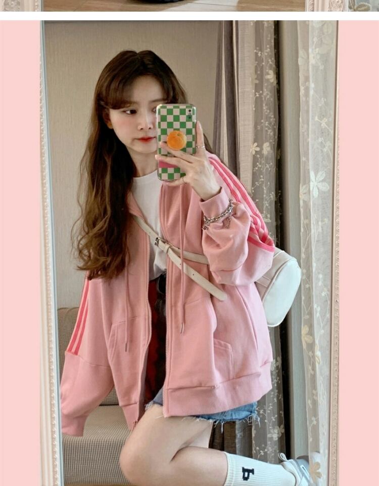 フードセーター ジャケット スプリングオータムルーズトップス ピンク 春物 秋物 萌量不足47935440171