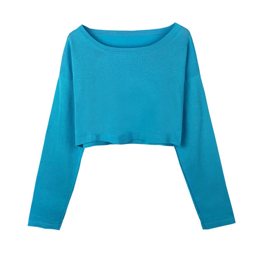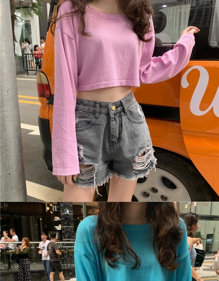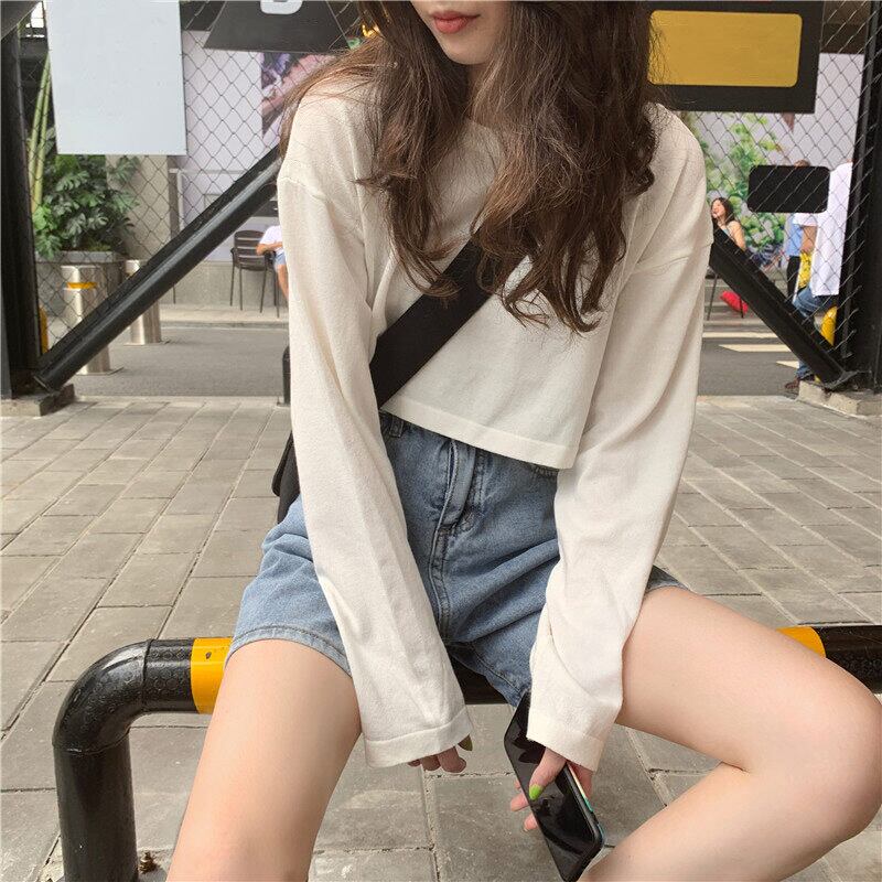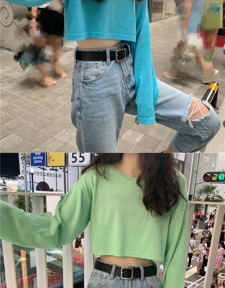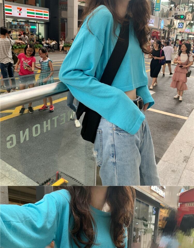 トップス オータムショートハイウェストシャツ ルーズニットTシャツ ロング 秋物 萌量不足27455968667