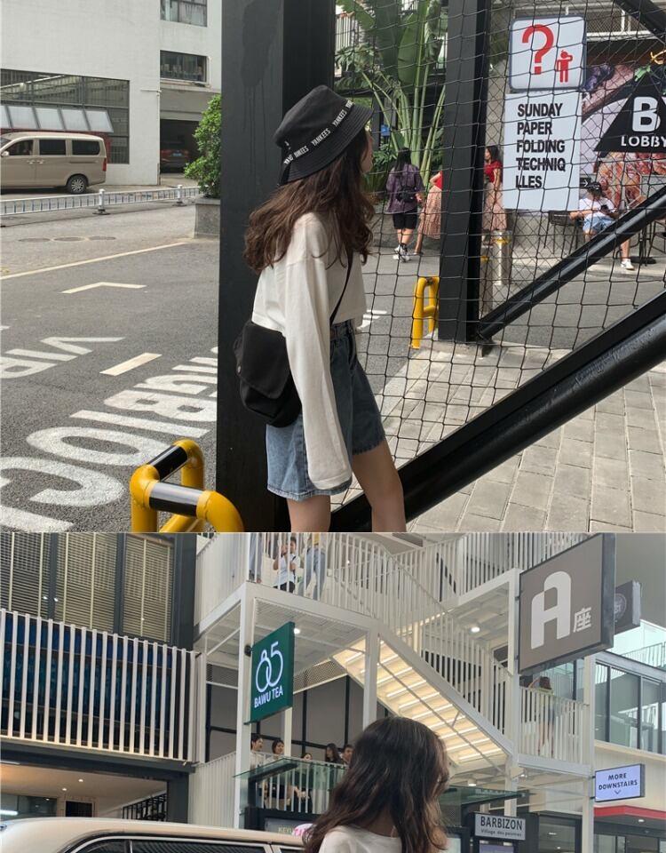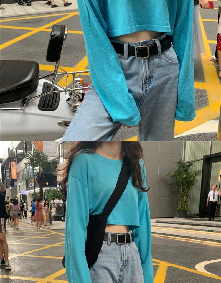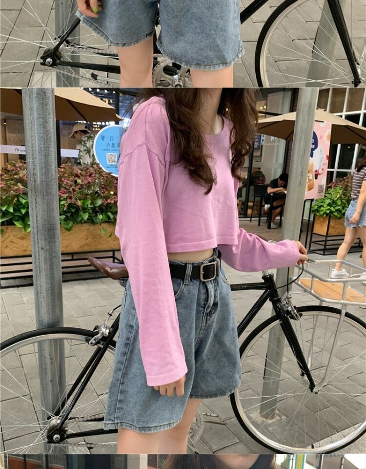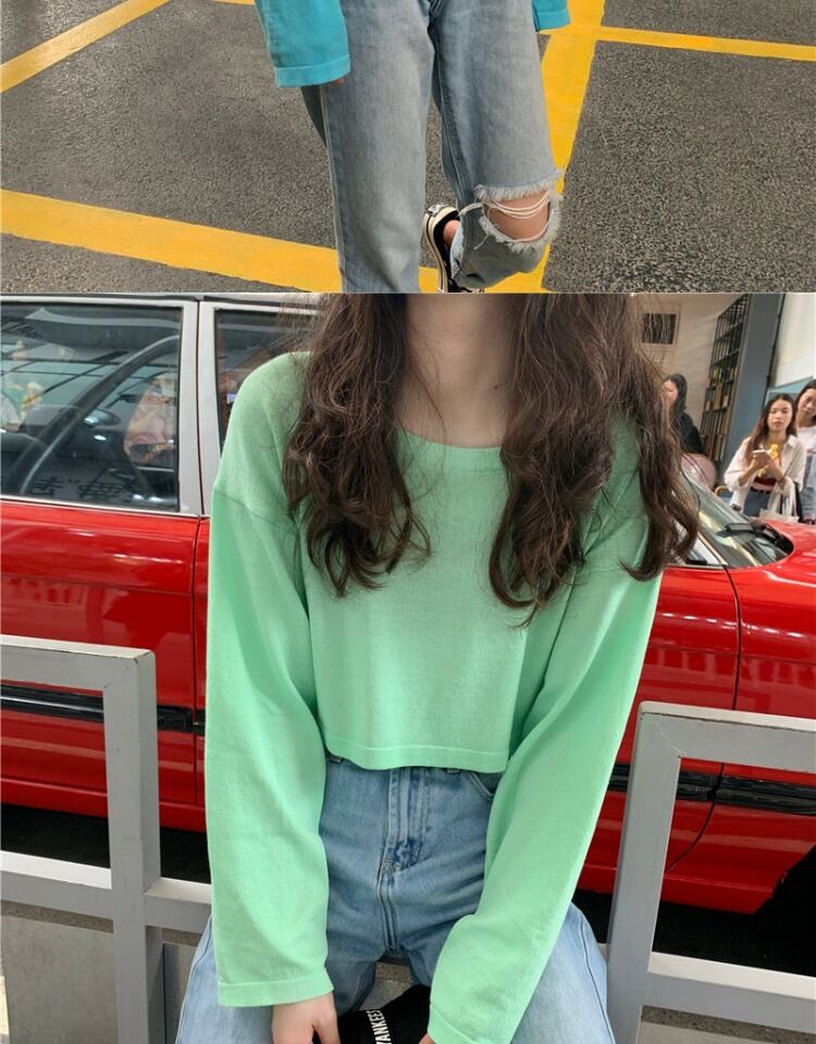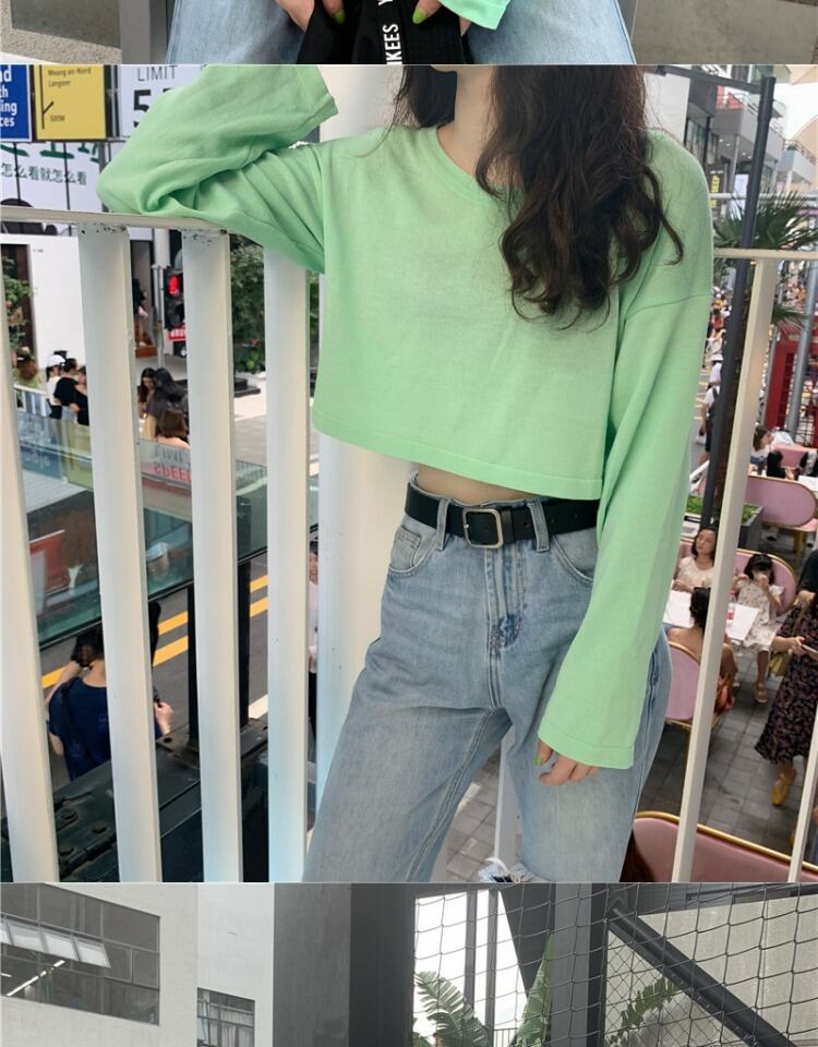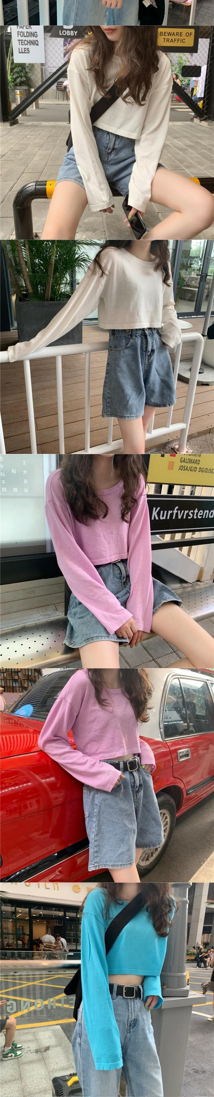 トップス オータムショートハイウェストシャツ ルーズニットTシャツ ロング 秋物 萌量不足27455968667