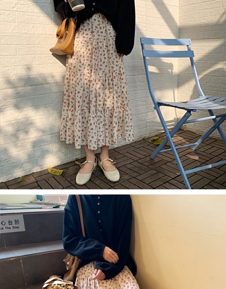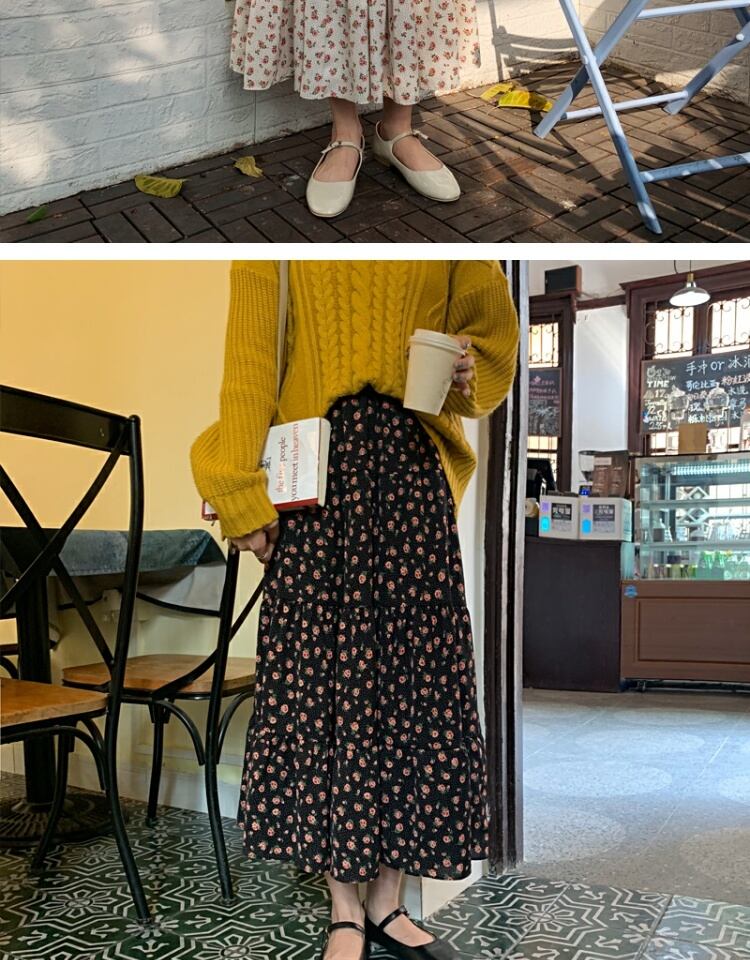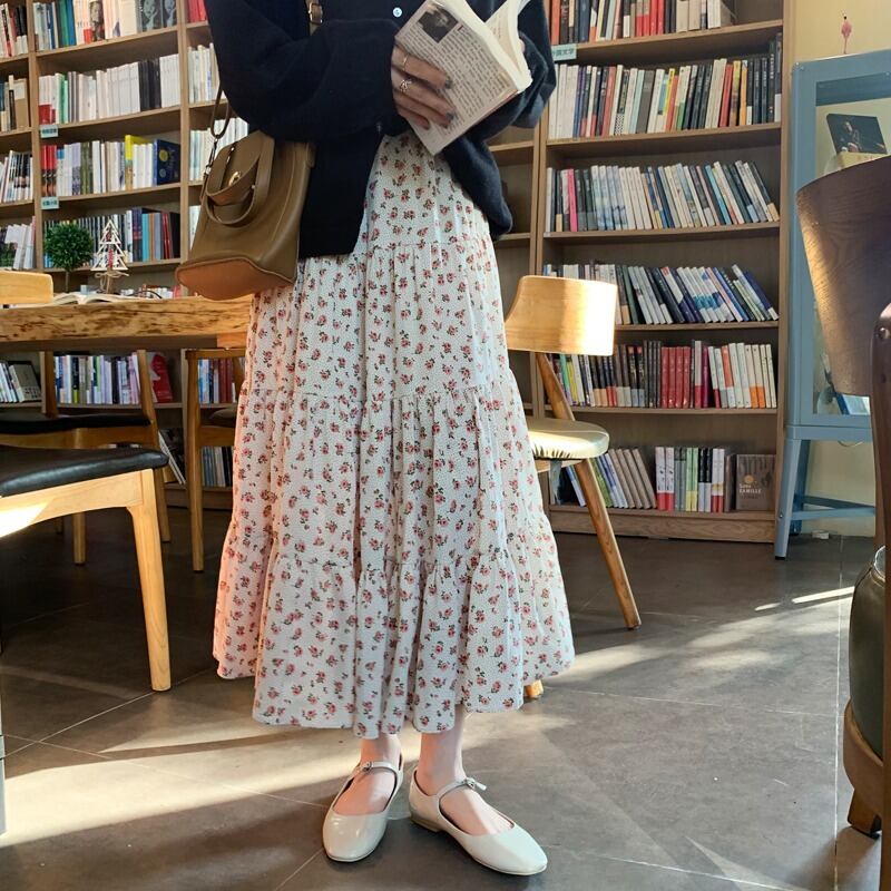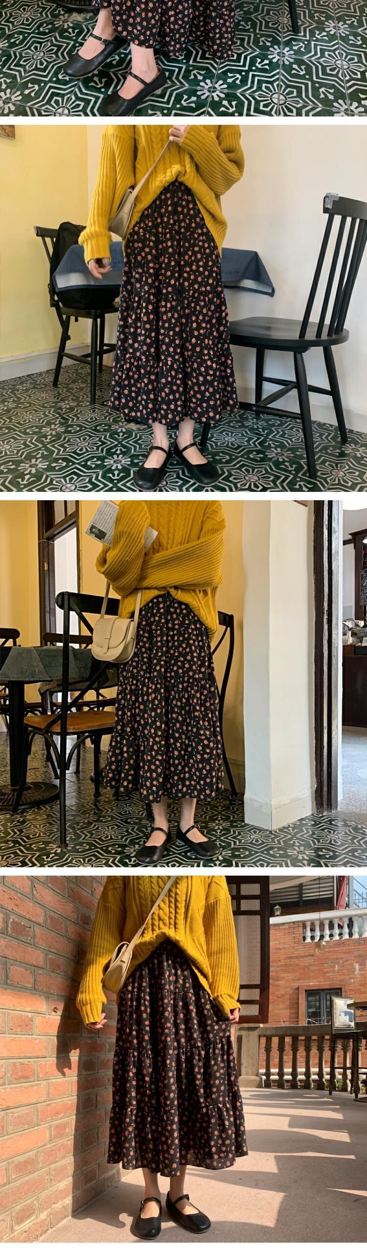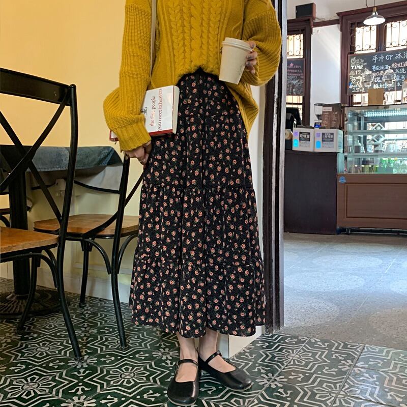 スカート オータムハイウェストAライン薄手フローラル 秋物 花柄 萌量不足40753893651