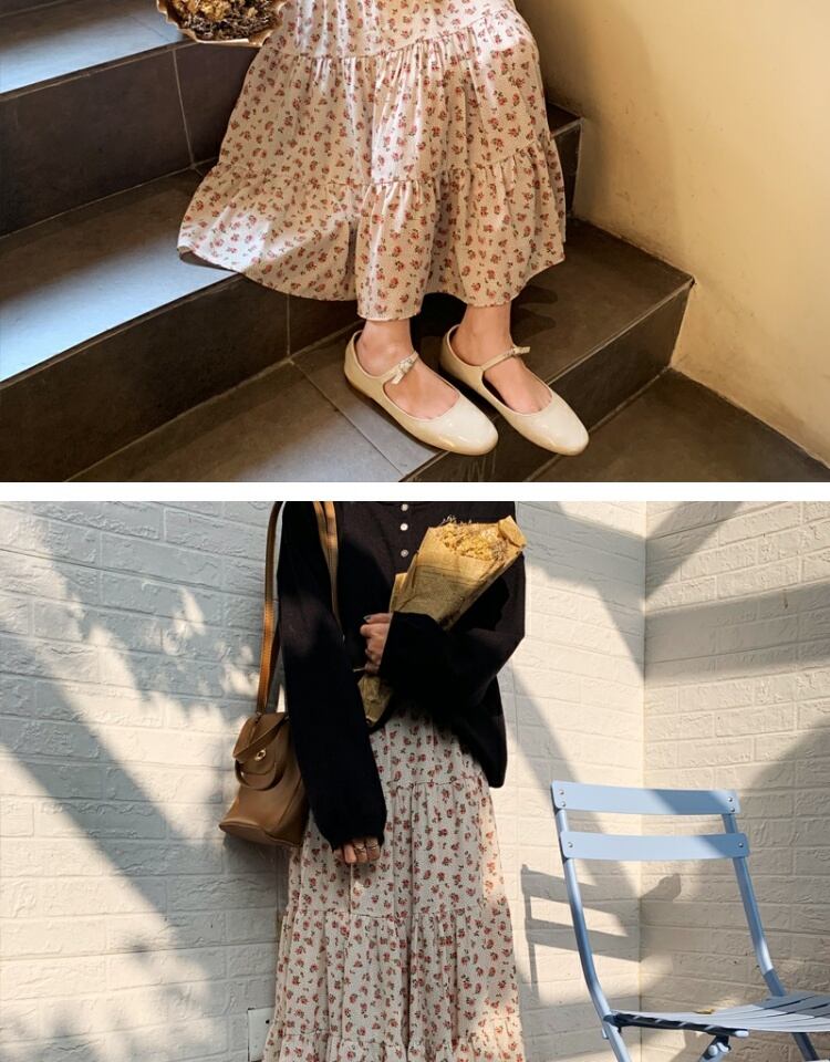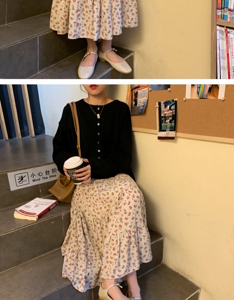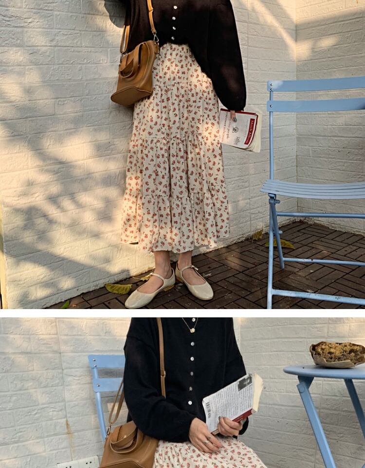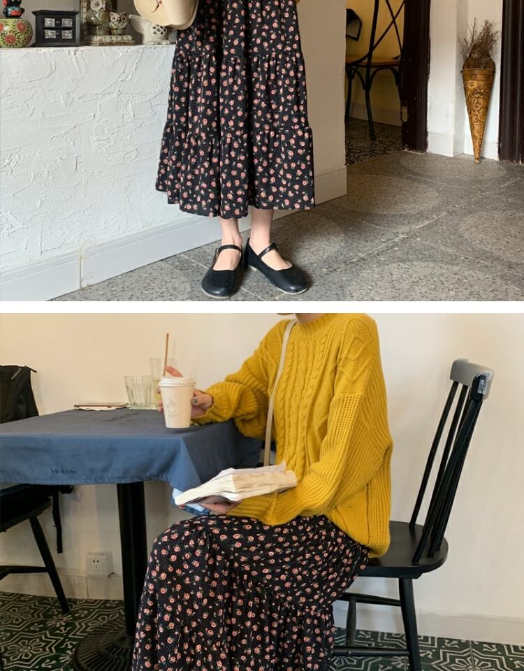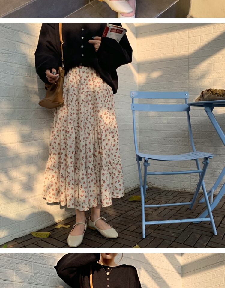 スカート オータムハイウェストAライン薄手フローラル 秋物 花柄 萌量不足40753893651