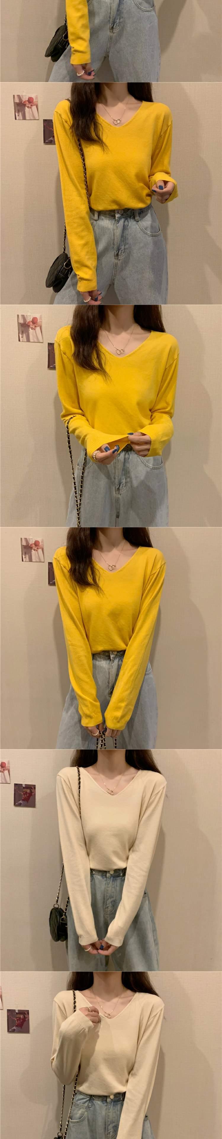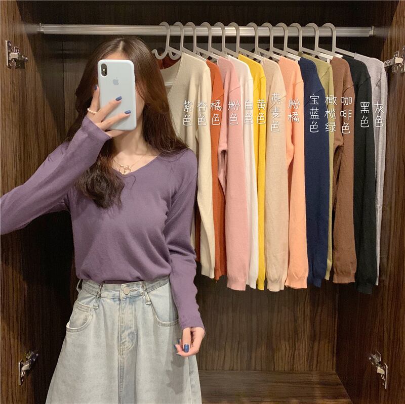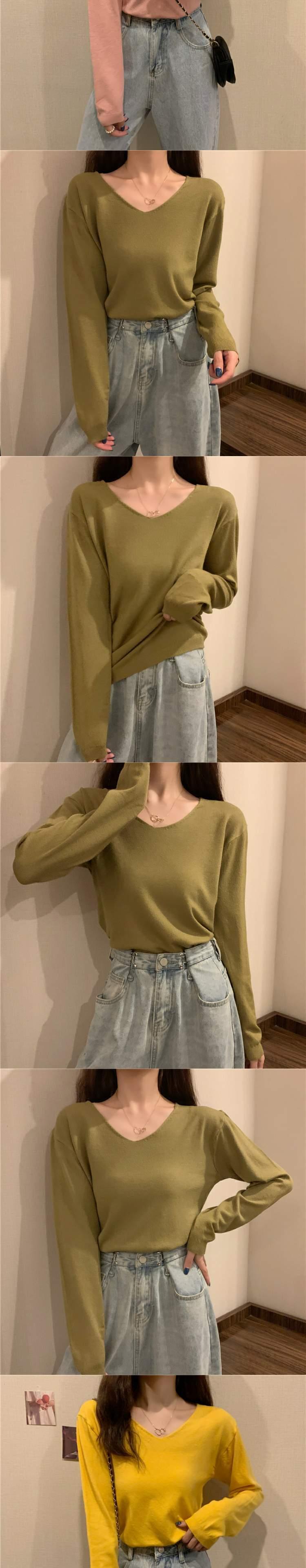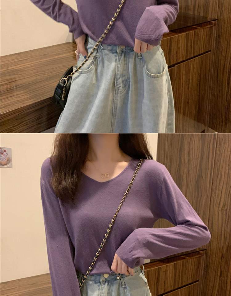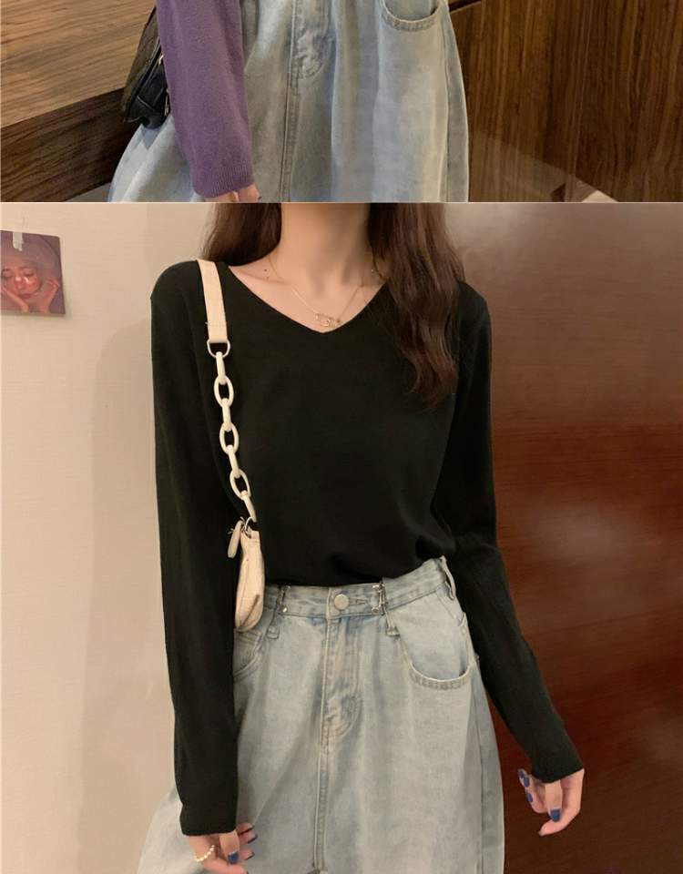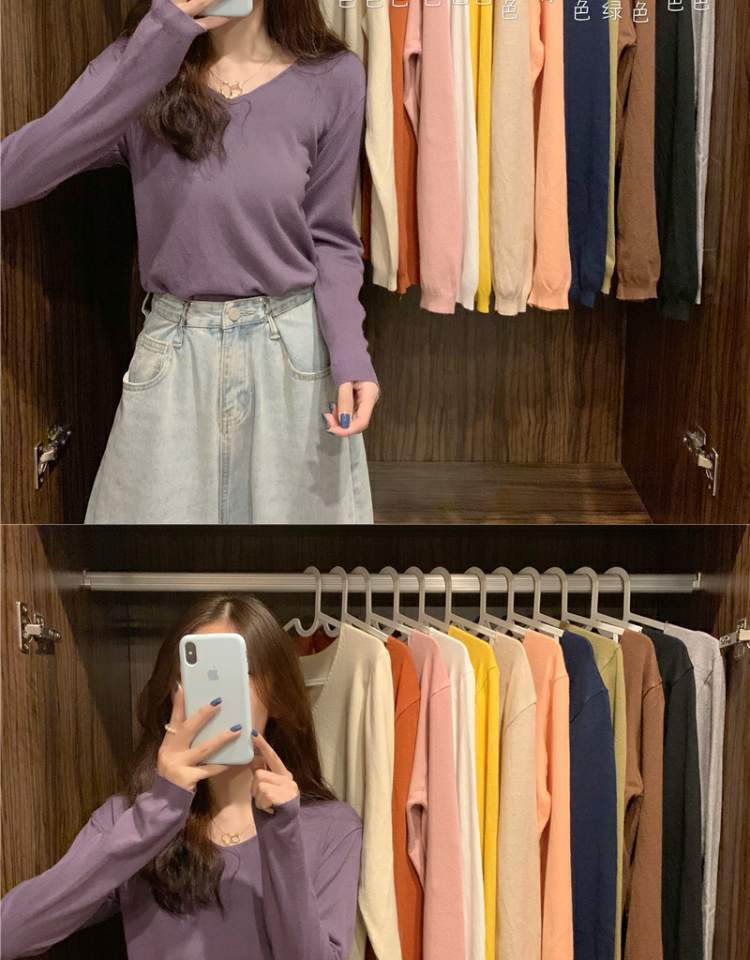 オータムカラーVネックブラウス レディースカジュアル薄手ニットシャツ ロング 秋物 萌量不足48928433198