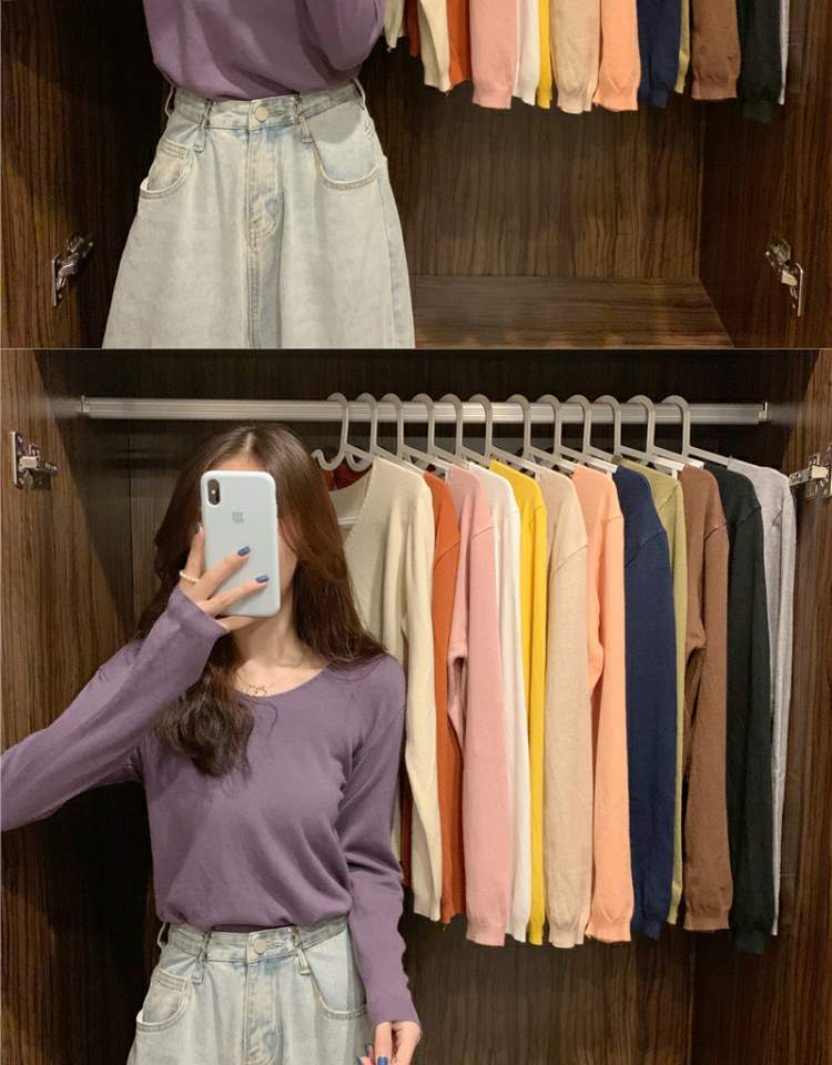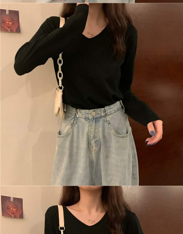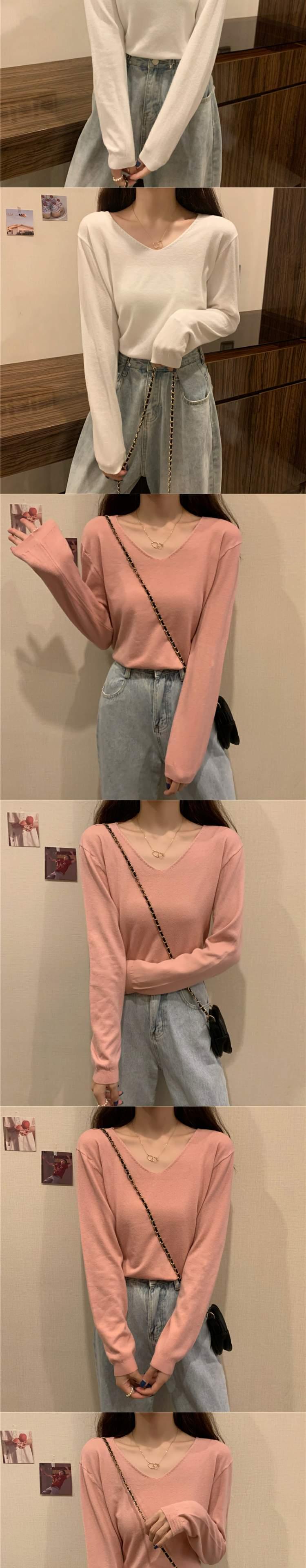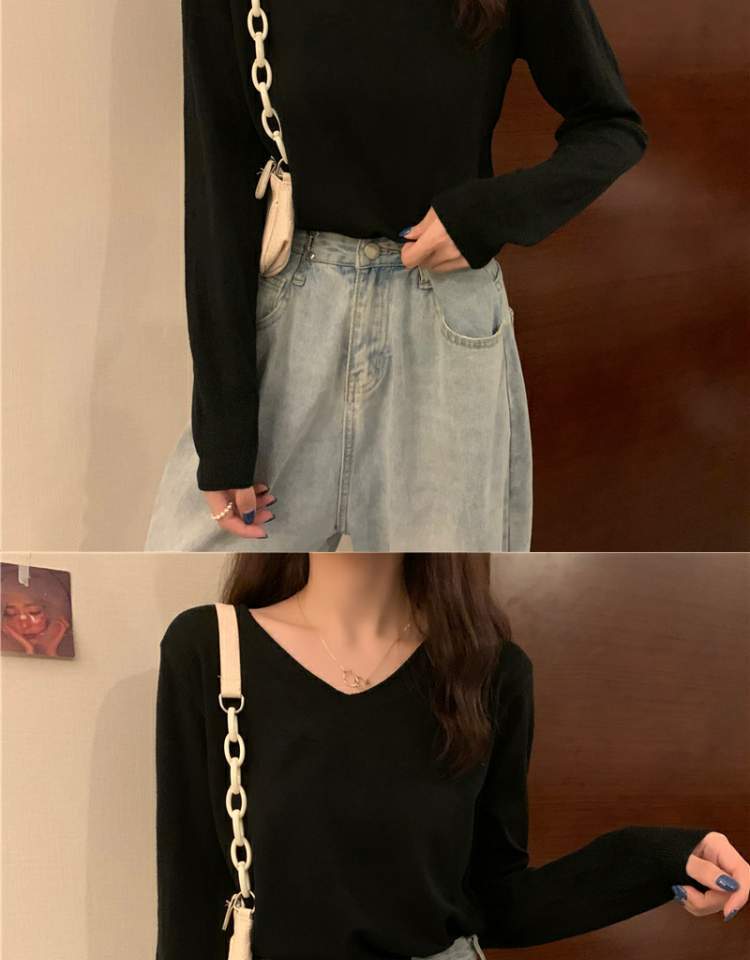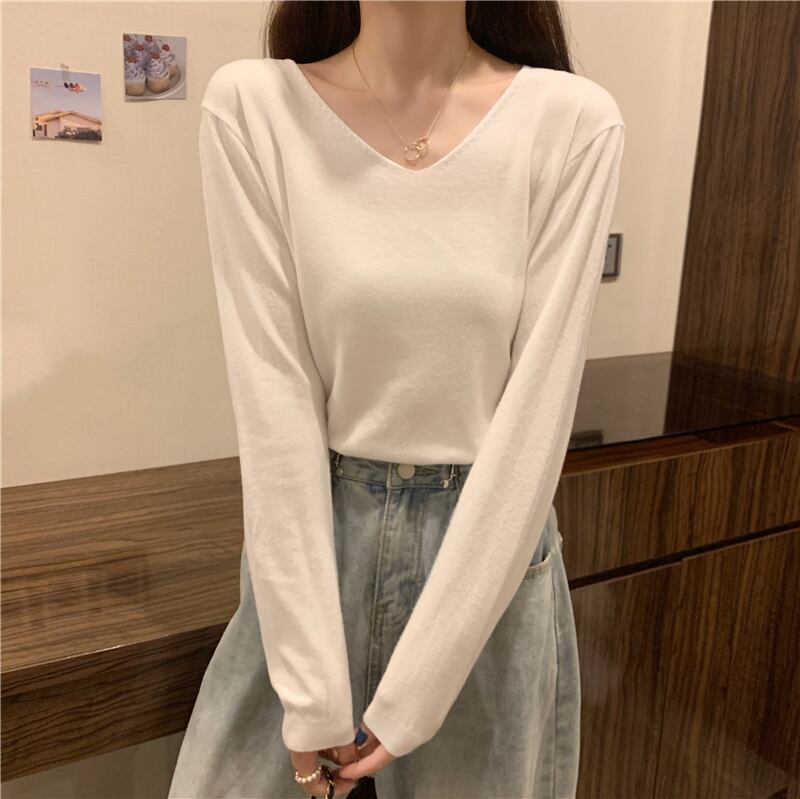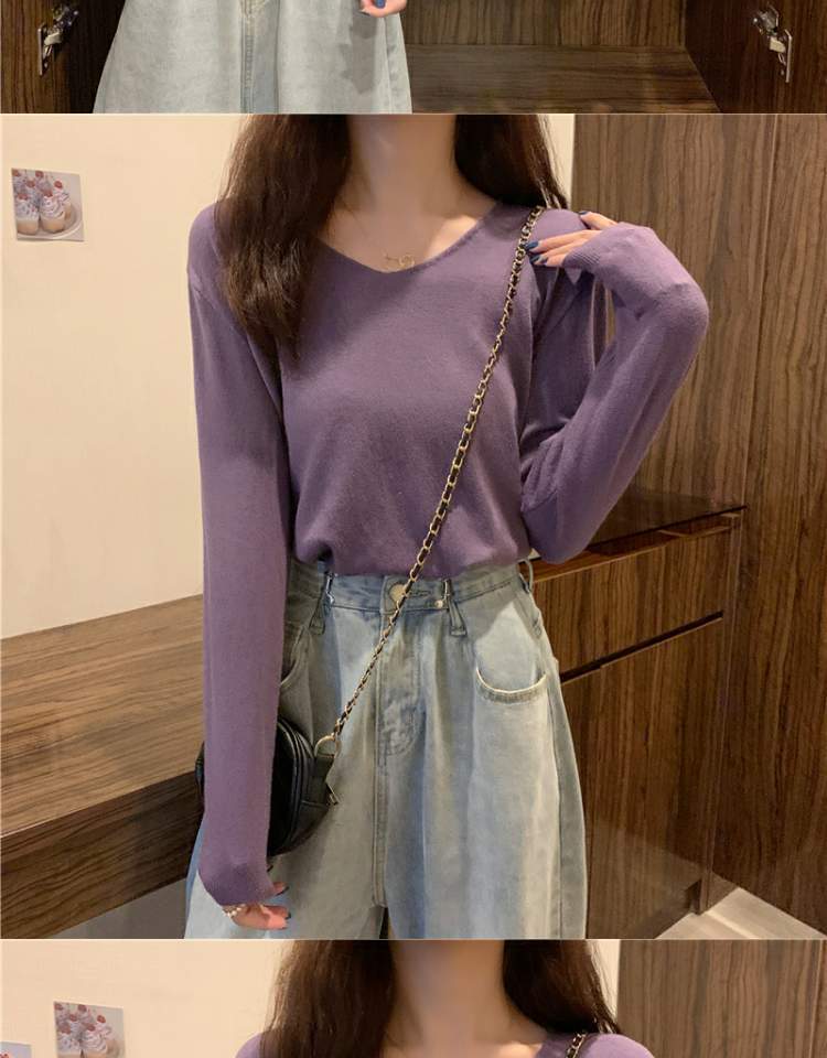 オータムカラーVネックブラウス レディースカジュアル薄手ニットシャツ ロング 秋物 萌量不足48928433198