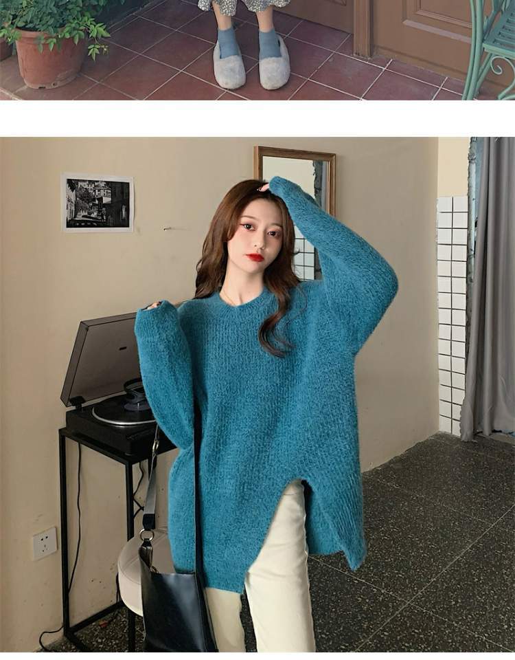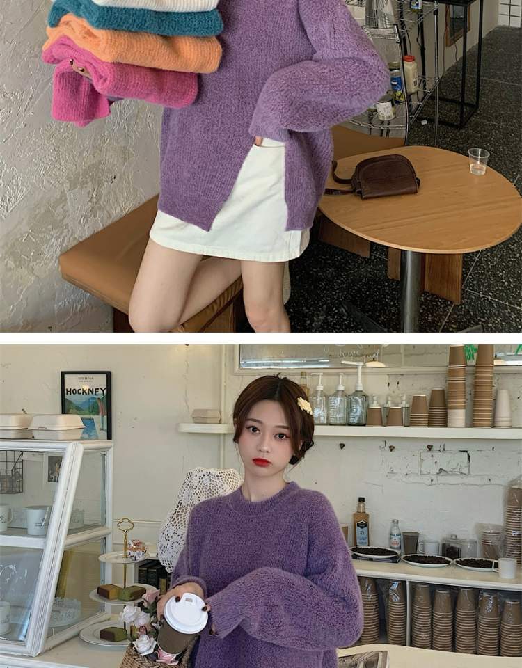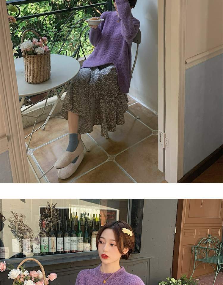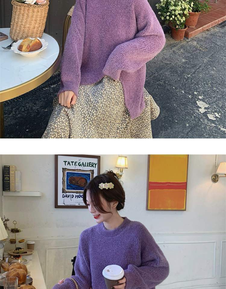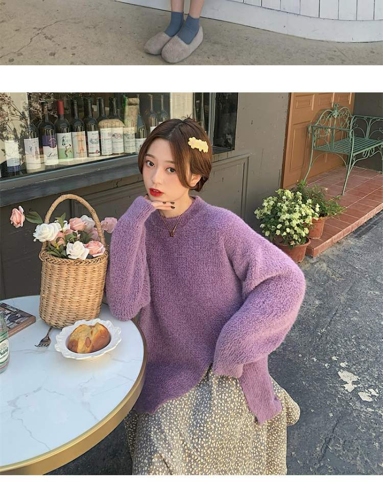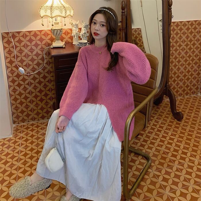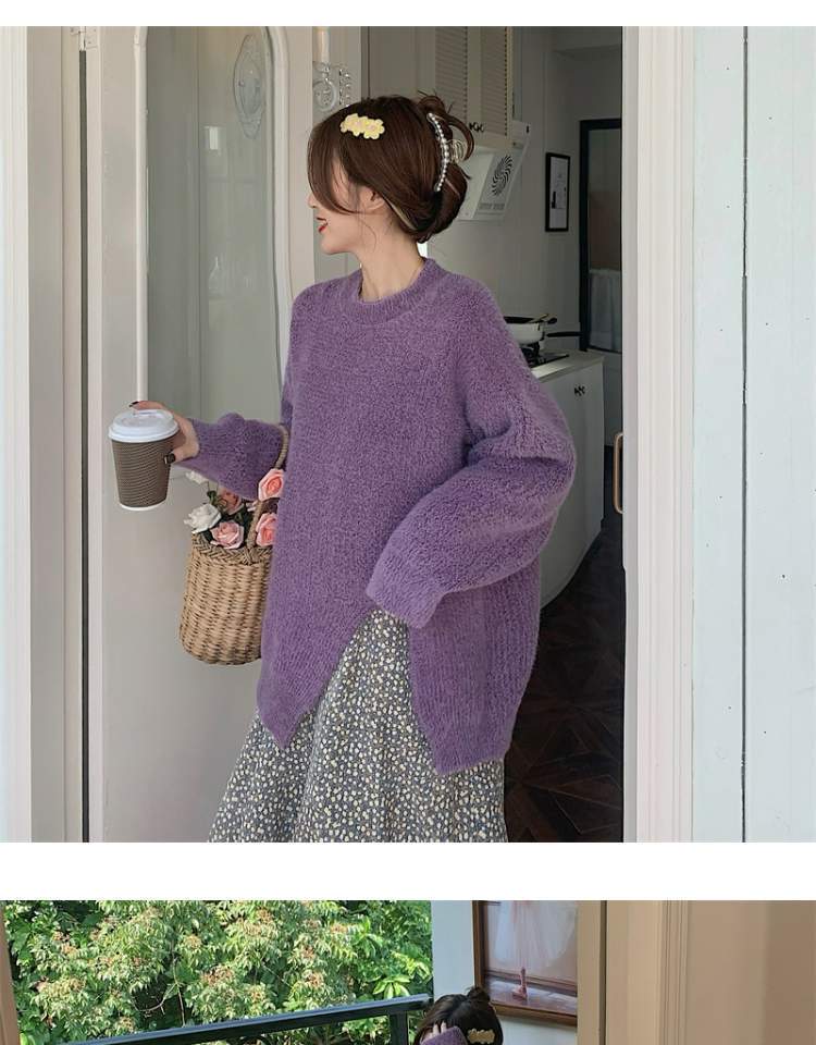 スタンダードスタイルセーター レディースオータムウィンタールーズニットトップス レトロ 秋物 冬物 パープル 萌量不足49523281677