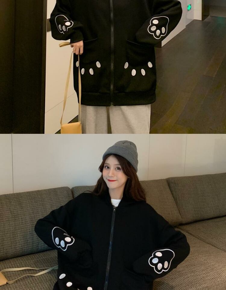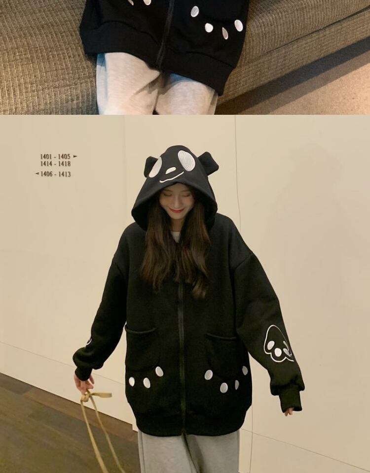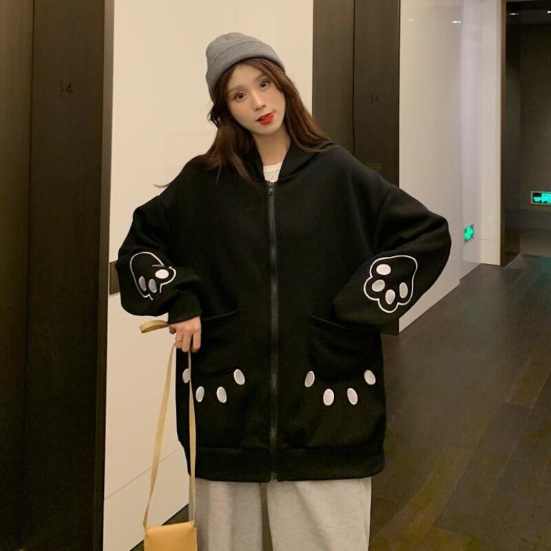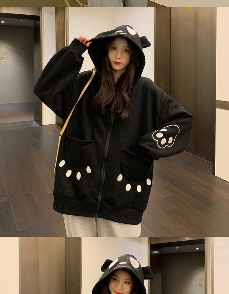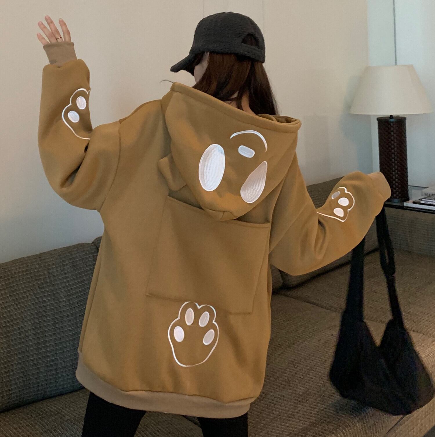 フードセーター ジャケット レディースオータムウィンタールーズスタイルトップス レッド 刺繍 秋物 冬物 萌量不足78304881616