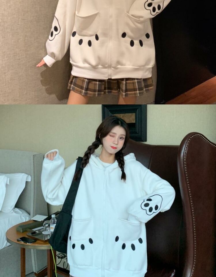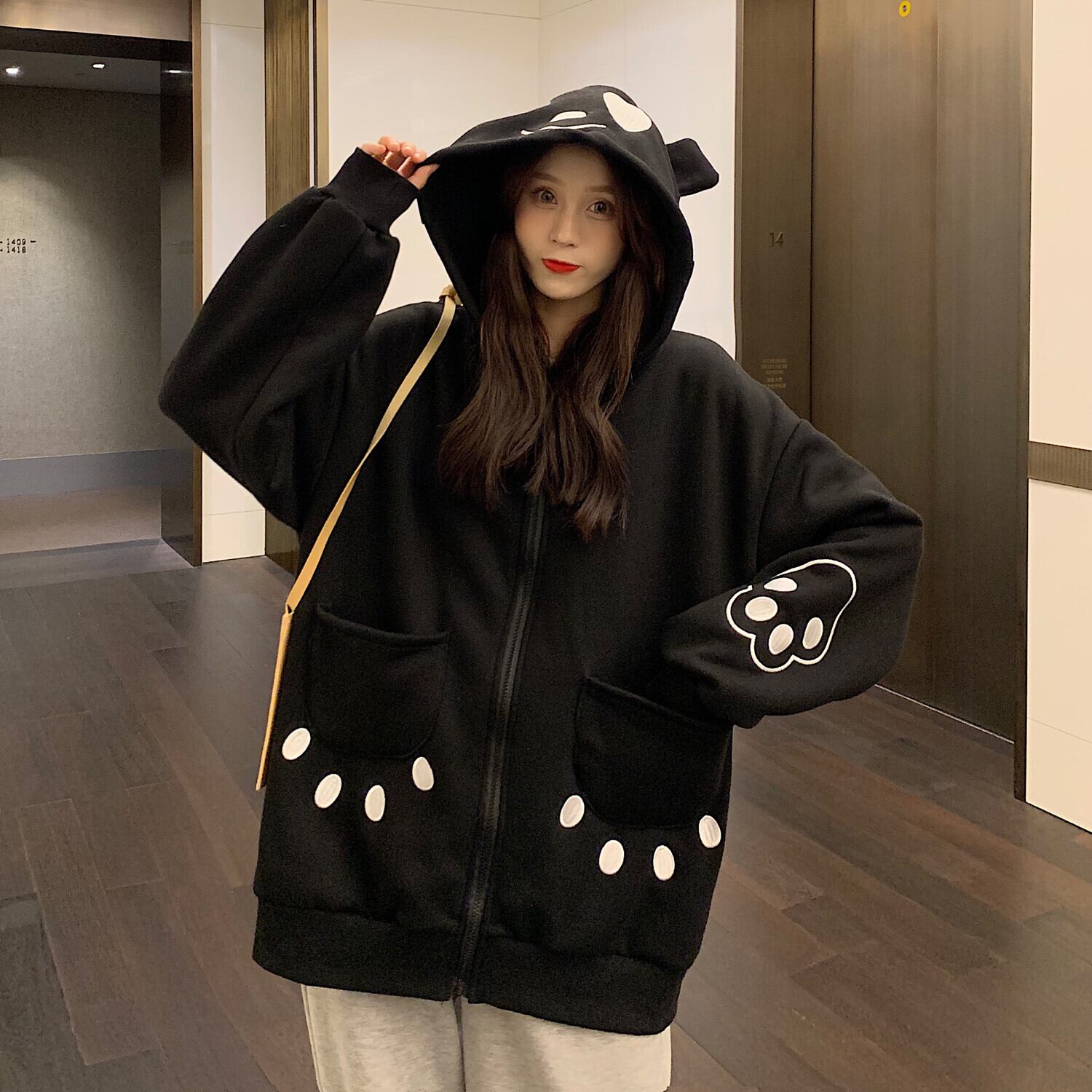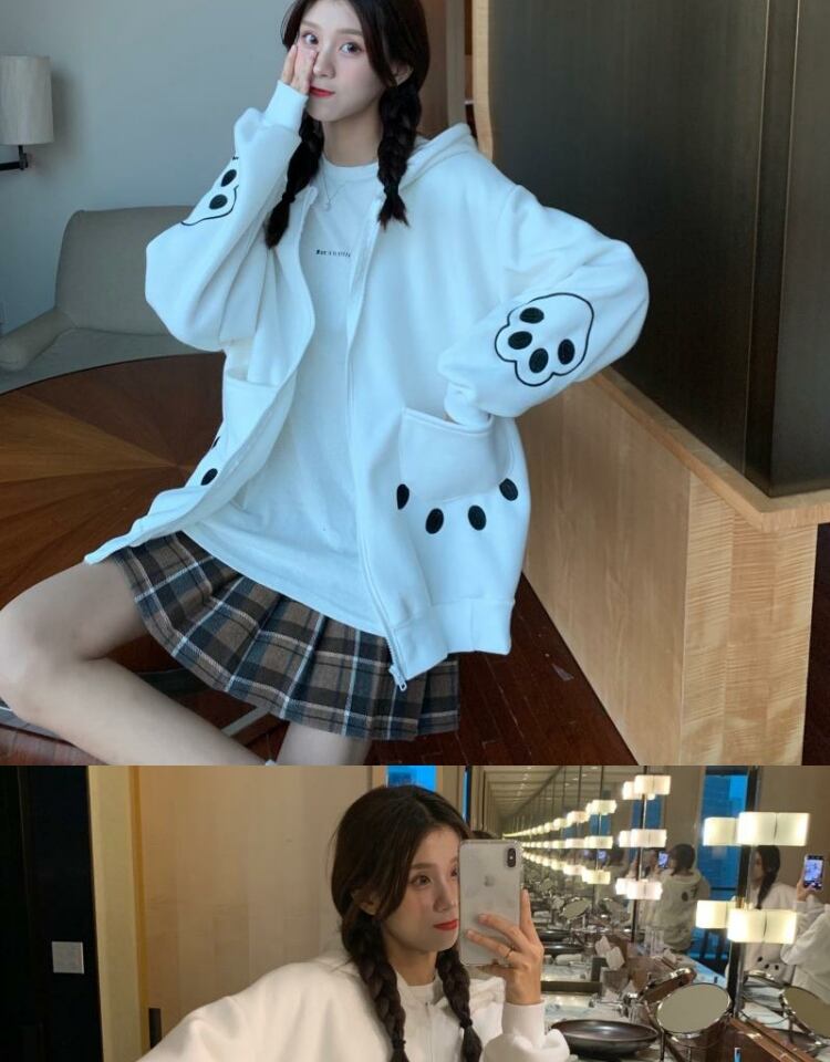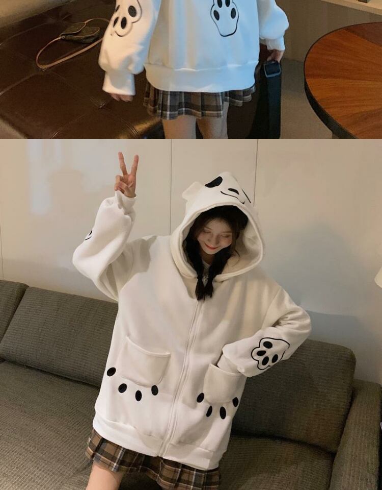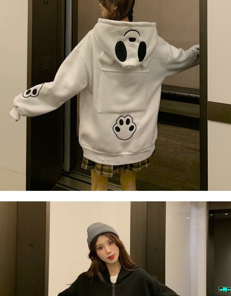 フードセーター ジャケット レディースオータムウィンタールーズスタイルトップス レッド 刺繍 秋物 冬物 萌量不足78304881616