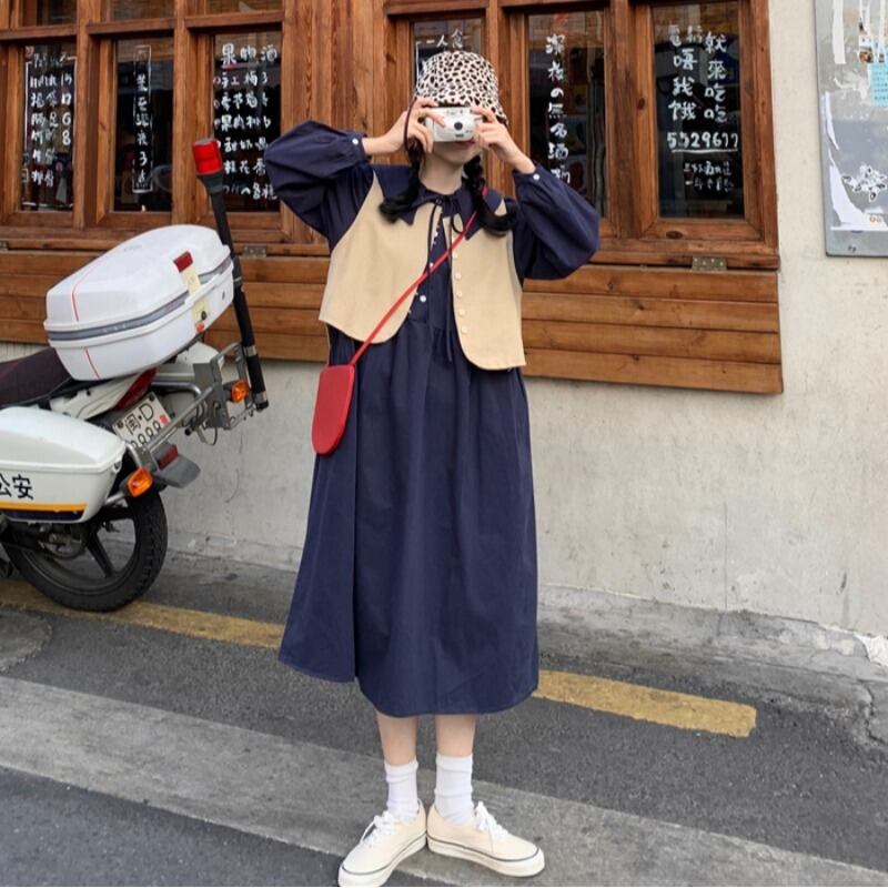 スカート カラーオータムルーズドレス ロング 秋物 萌量不足33788344181
