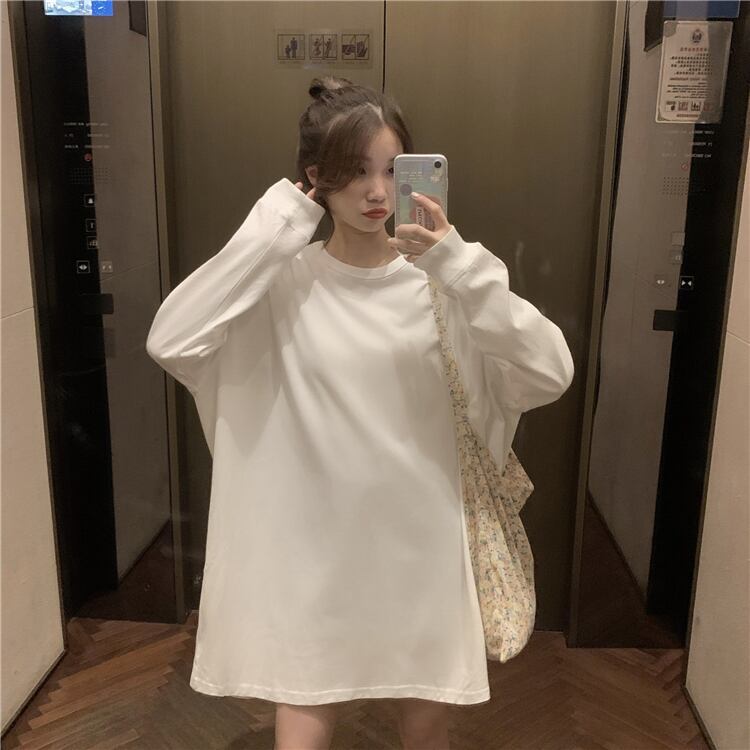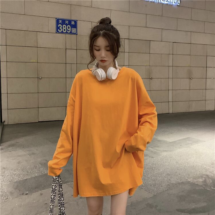 オレンジロングTシャツ シャツ レディースルーズホワイトセーター レッド 萌量不足44339210856