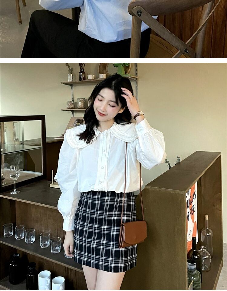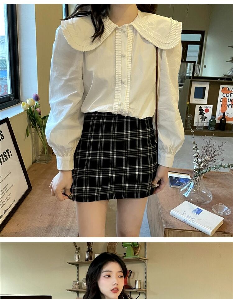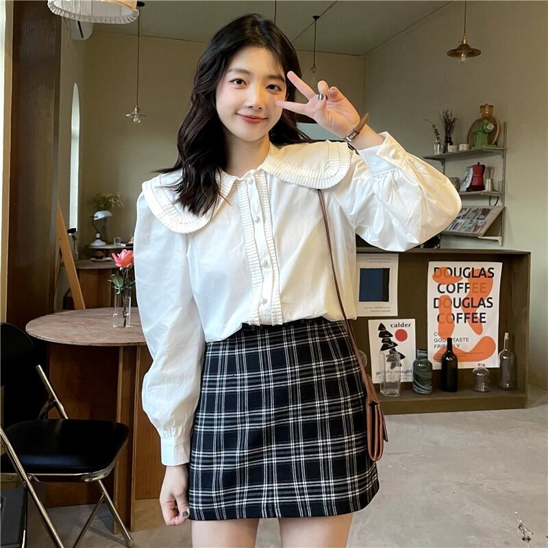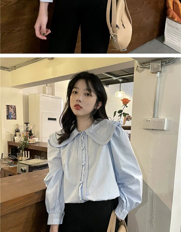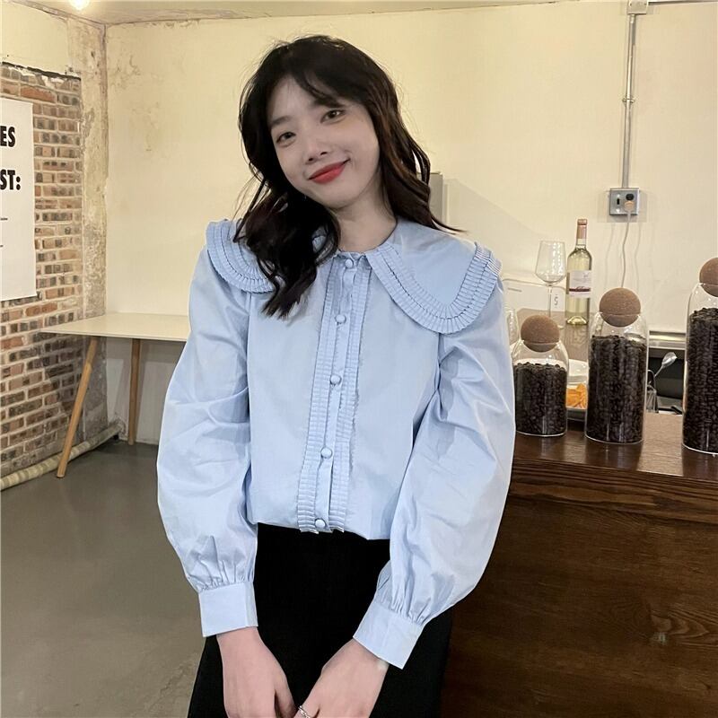 カラーホワイトシャツ オータムトップス ロング 大人ガーリー スウィート キュート カジュアル 秋物 萌量不足68252448619
