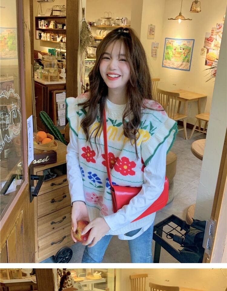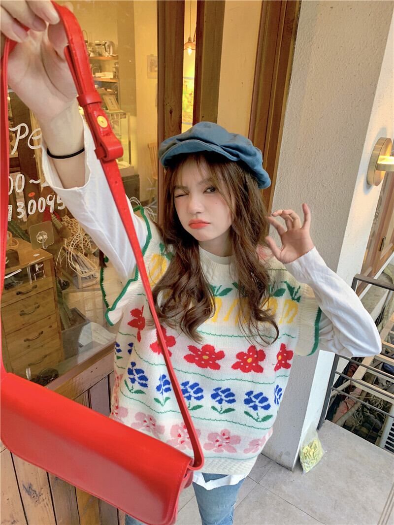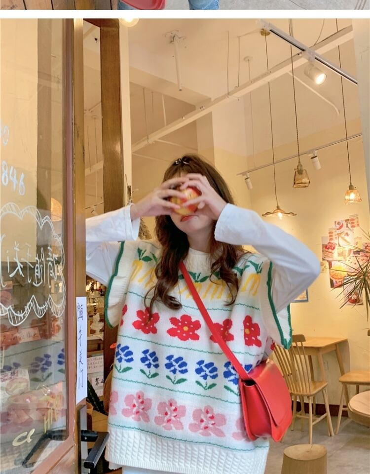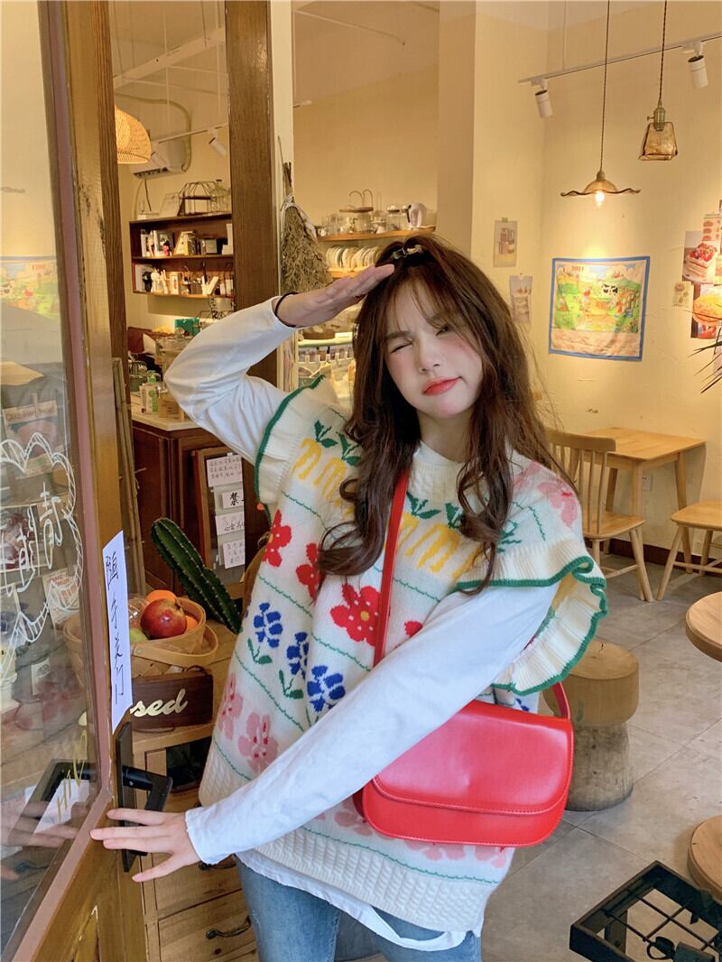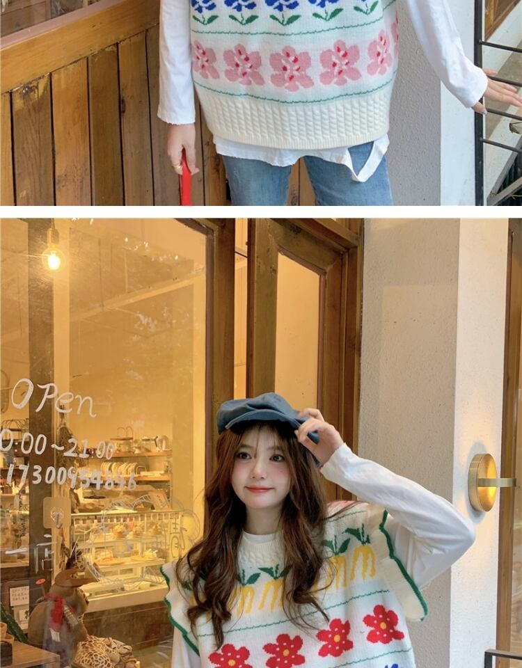 スタンダードFlowerデザイン ジャカードパターンノースリーブセーター ジャケット レディース レトロ 大人ガーリー スウィート キュート カジュアル フラワーデザイン 萌量不足71503545207