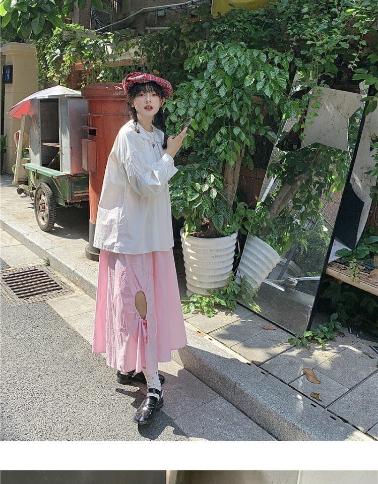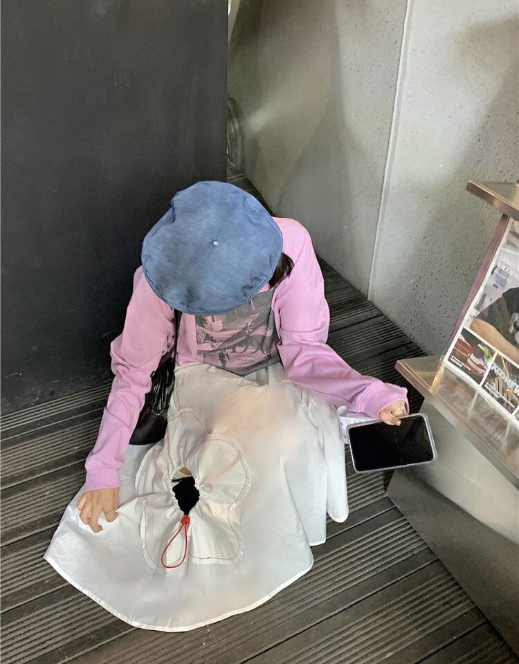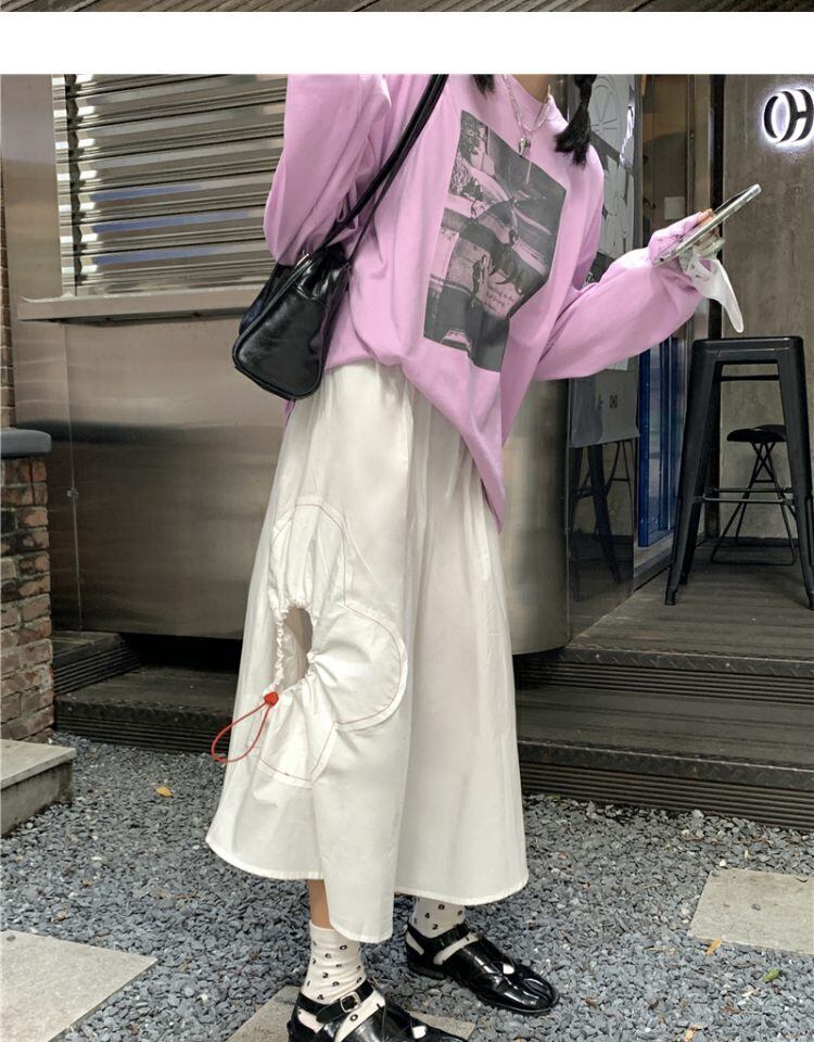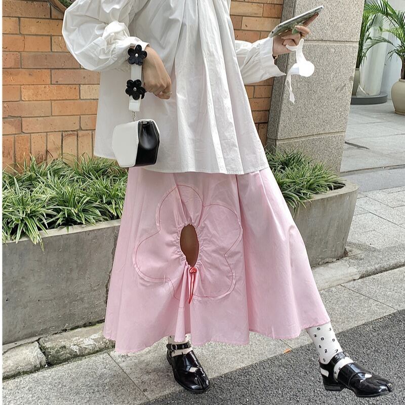 Flowerデザイン スカート オータムルーズAラインハイウェストウェスト 秋物 フラワーデザイン 萌量不足72123624909