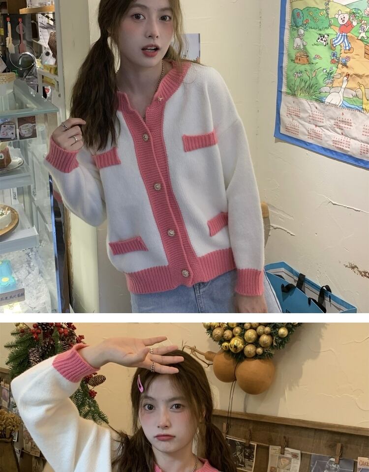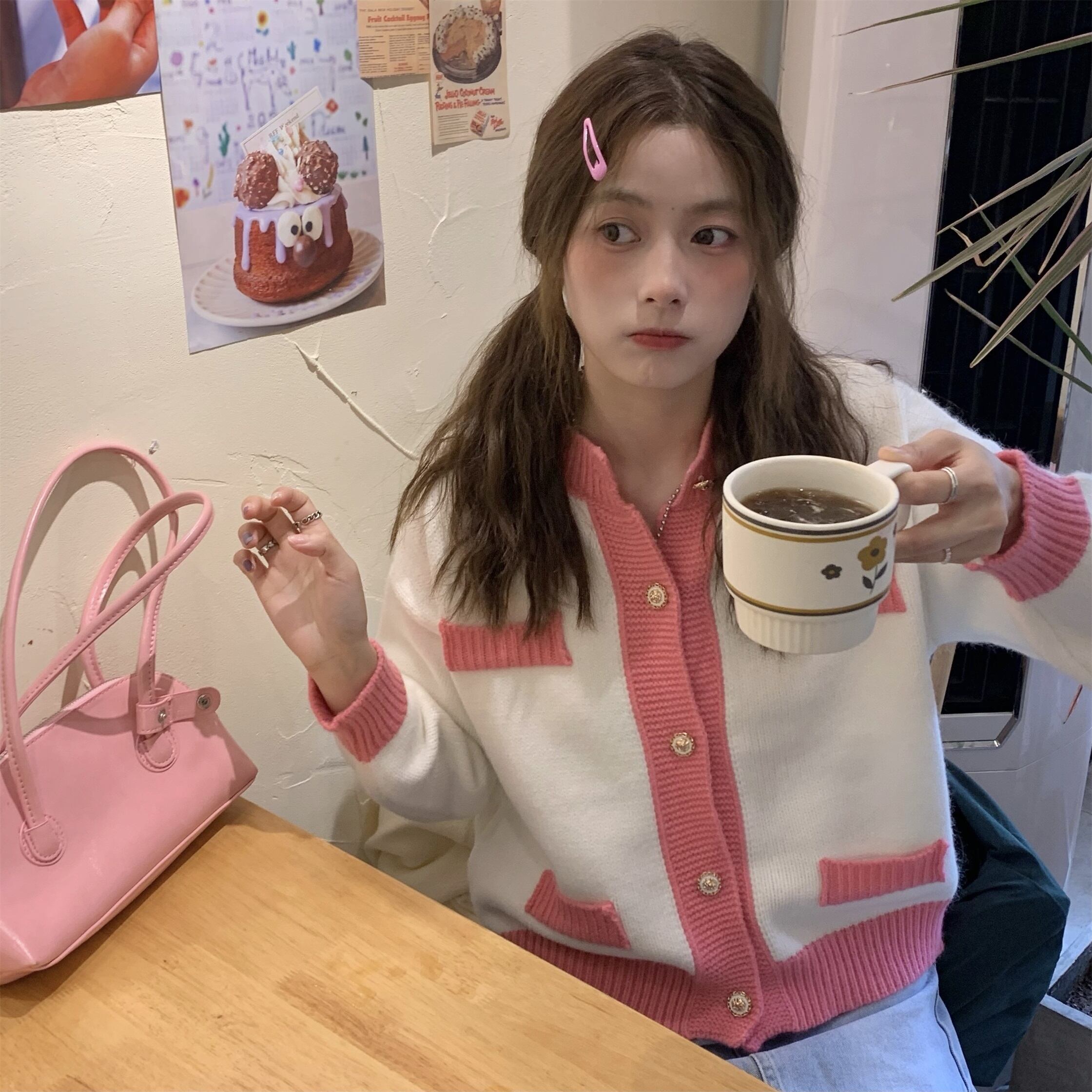 オータムウィンターニットカーディガンジャケット セーター ピンク 大人ガーリー スウィート キュート カジュアル 秋物 冬物 萌量不足96193757255