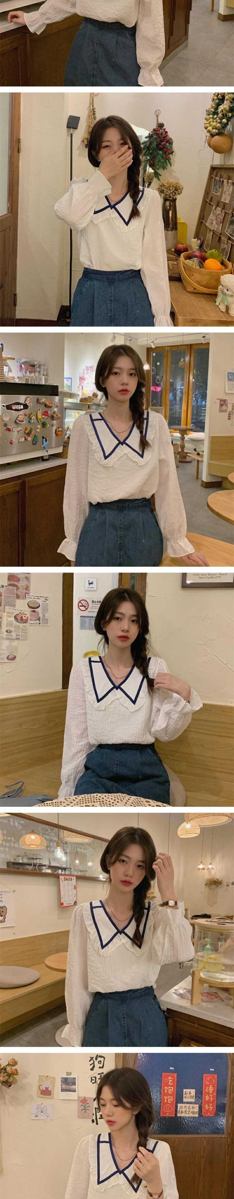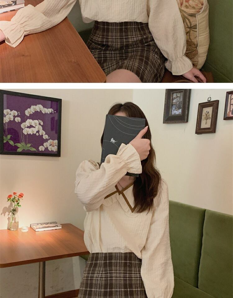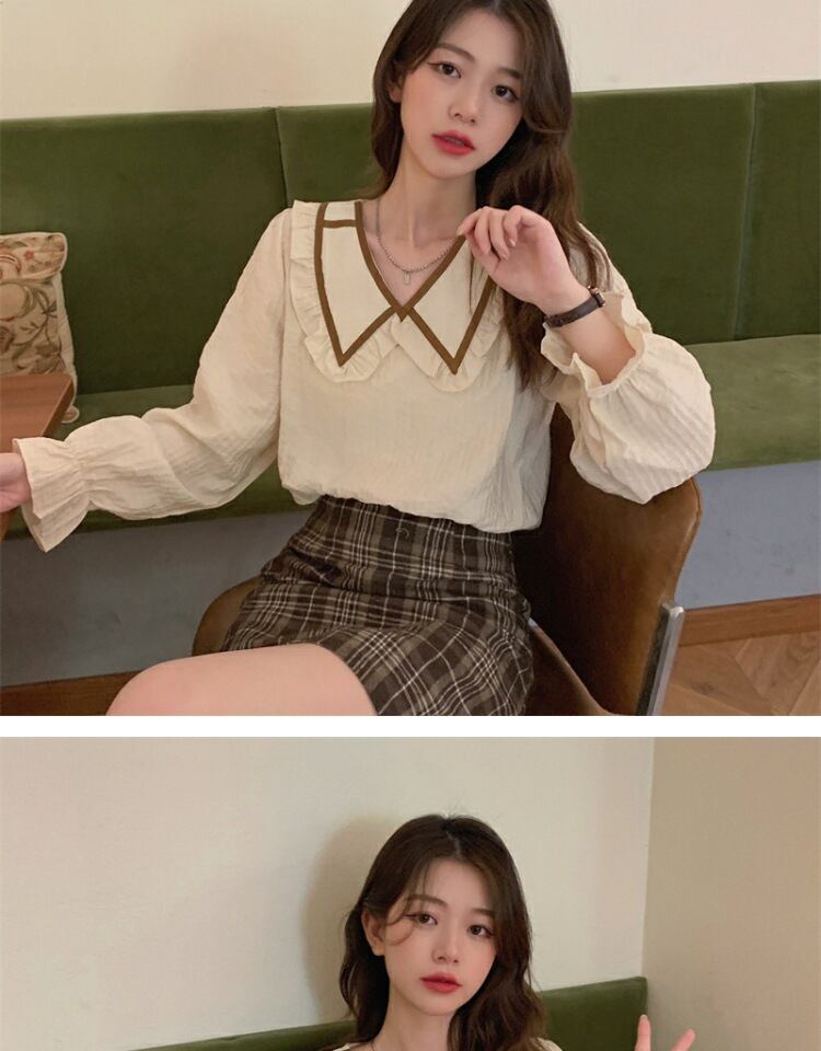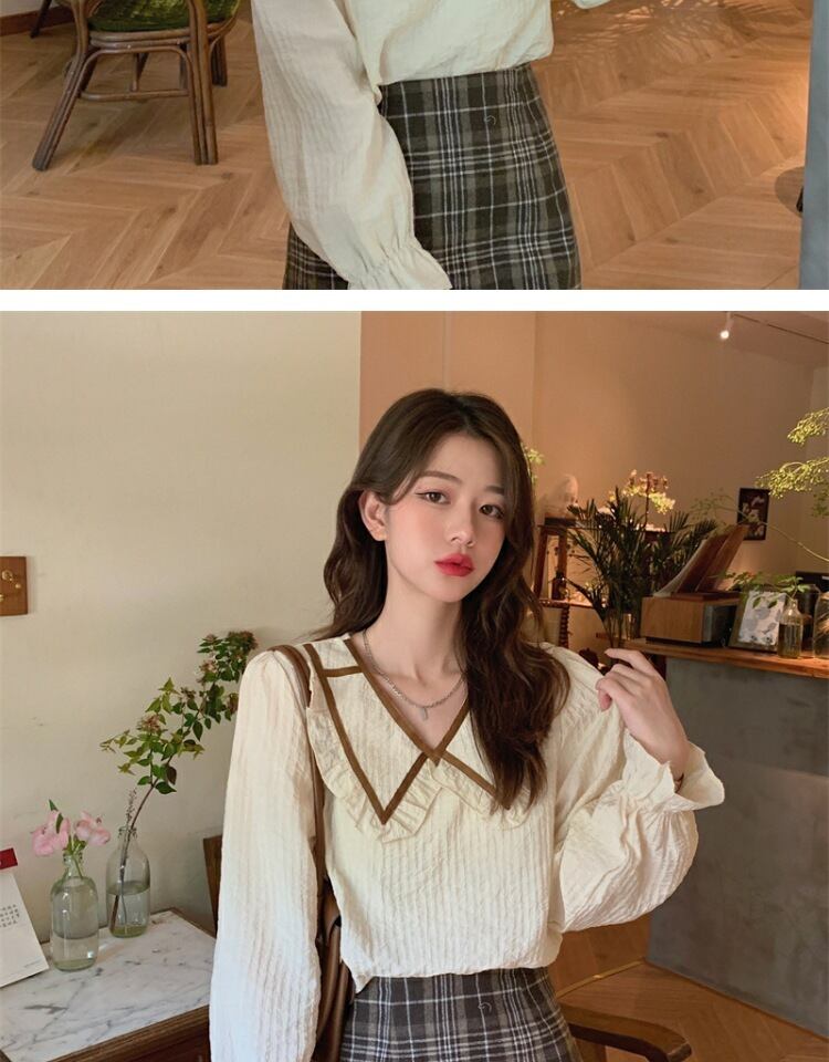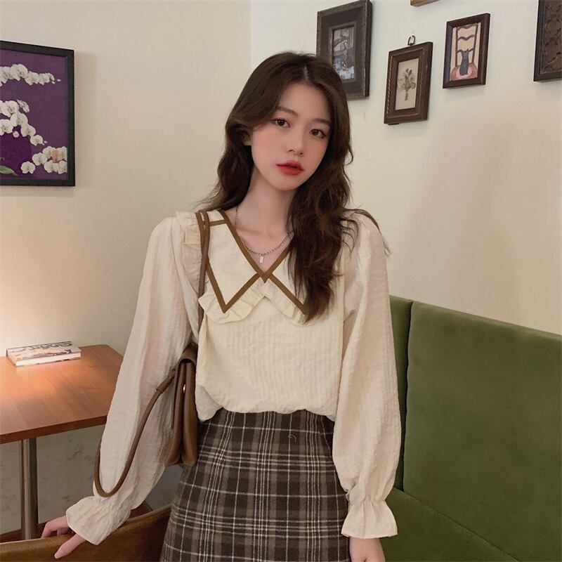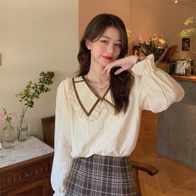 カラーブラウス スプリングオータムシャツ ロング 大人ガーリー スウィート キュート カジュアル 春物 秋物 萌量不足60415784745