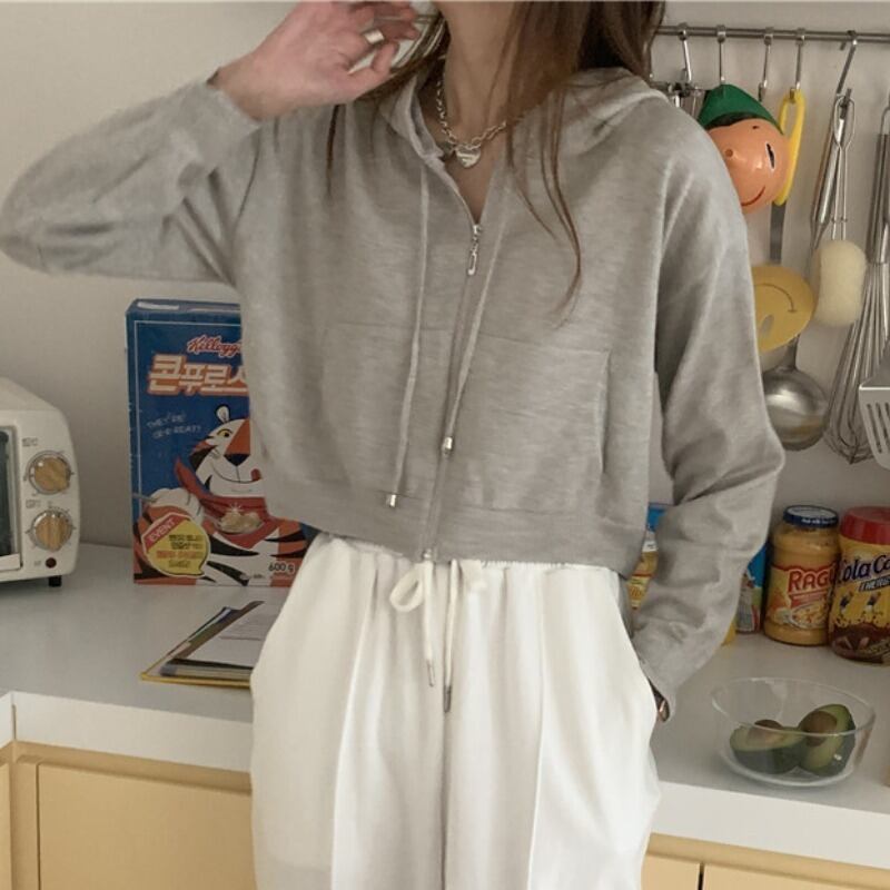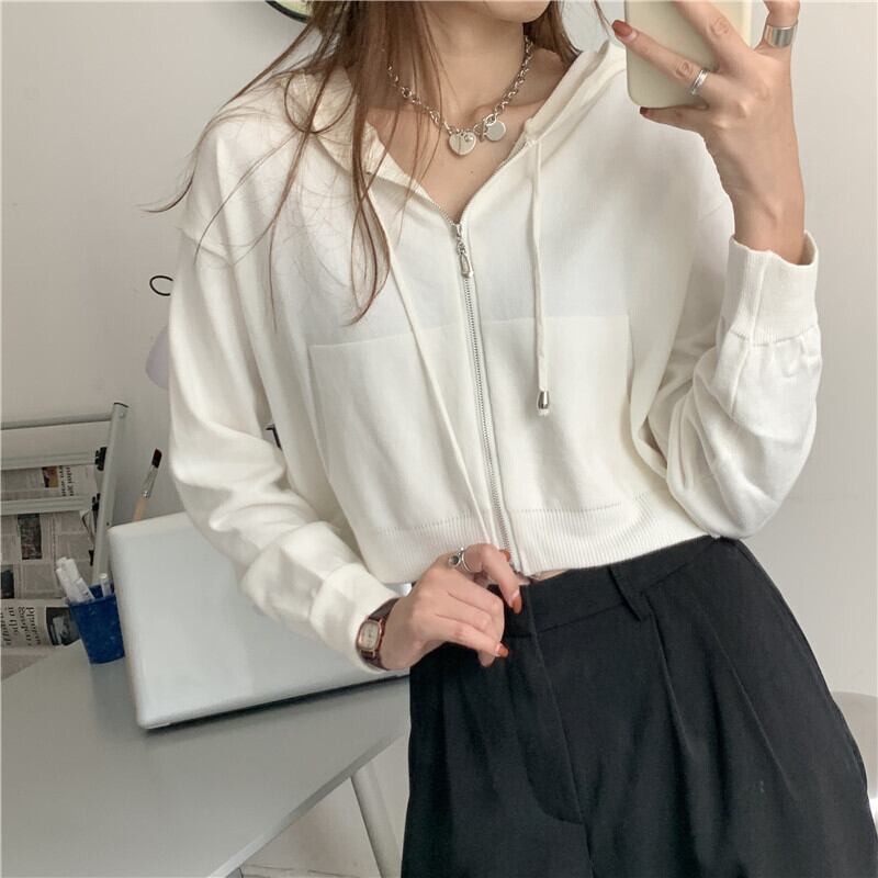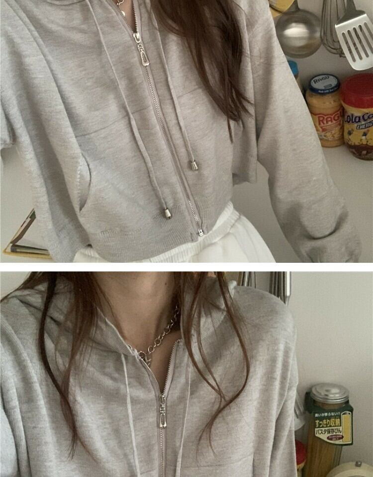 ルーズフードショートセーター ニットカーディガンオータム薄手コート ブラウス スプリング 春物 秋物 萌量不足62988002150