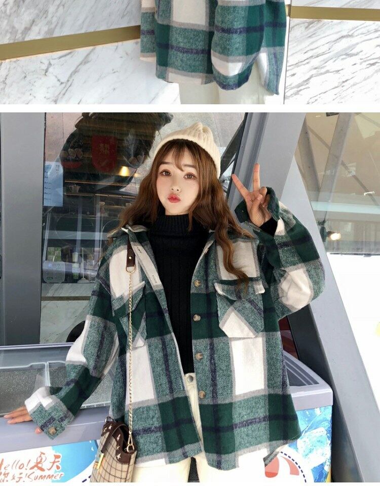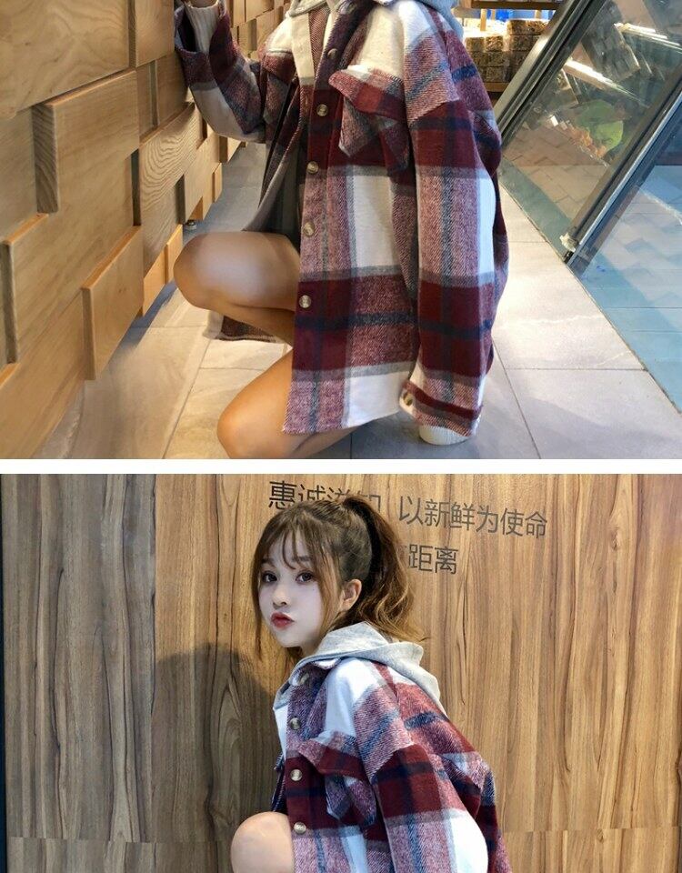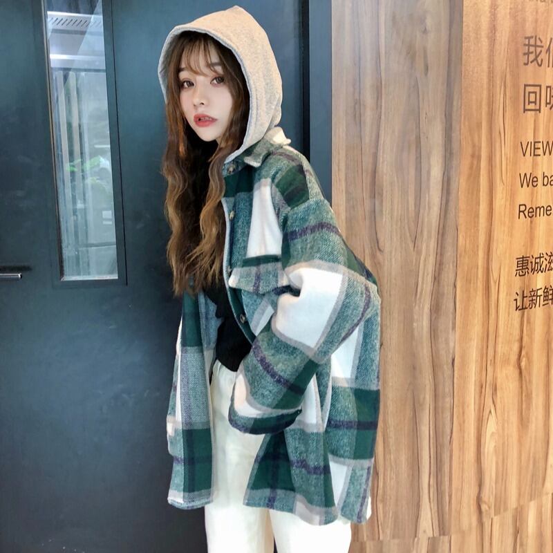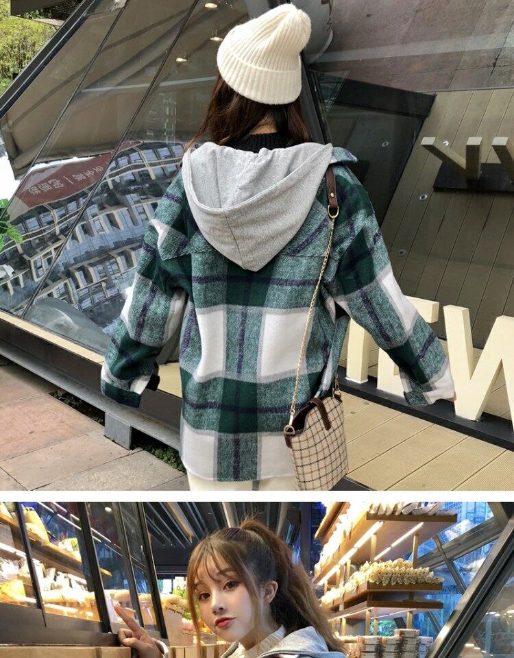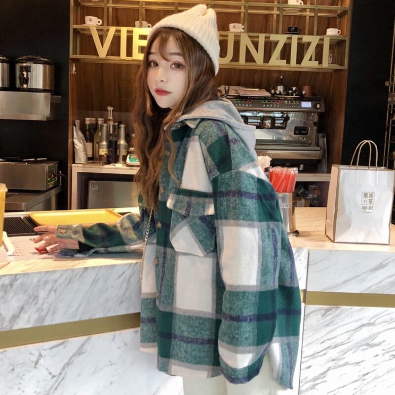 スタンダード格子柄コート オータムウィンタールーズスタイルフードブラウス レトロ 秋物 冬物 萌量不足54175222608