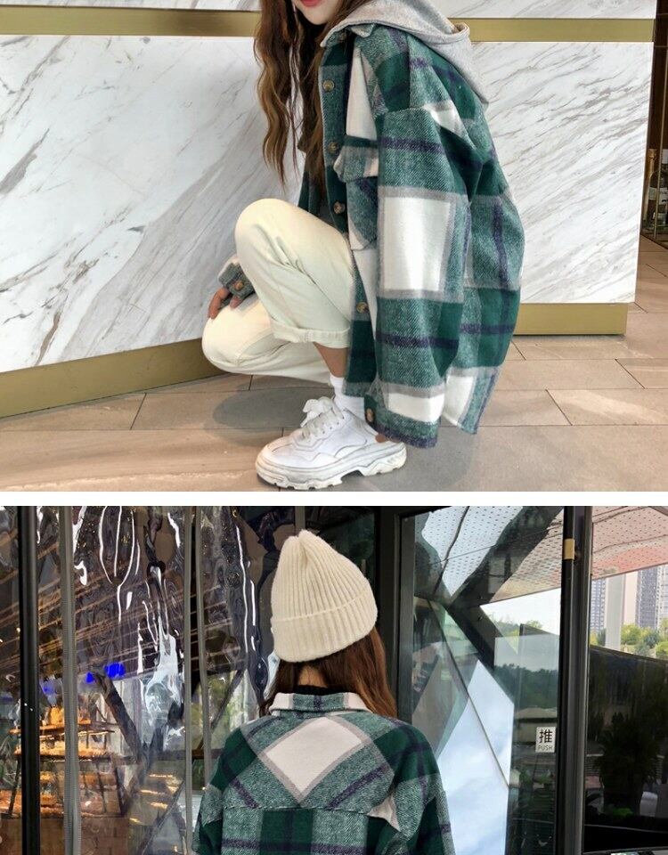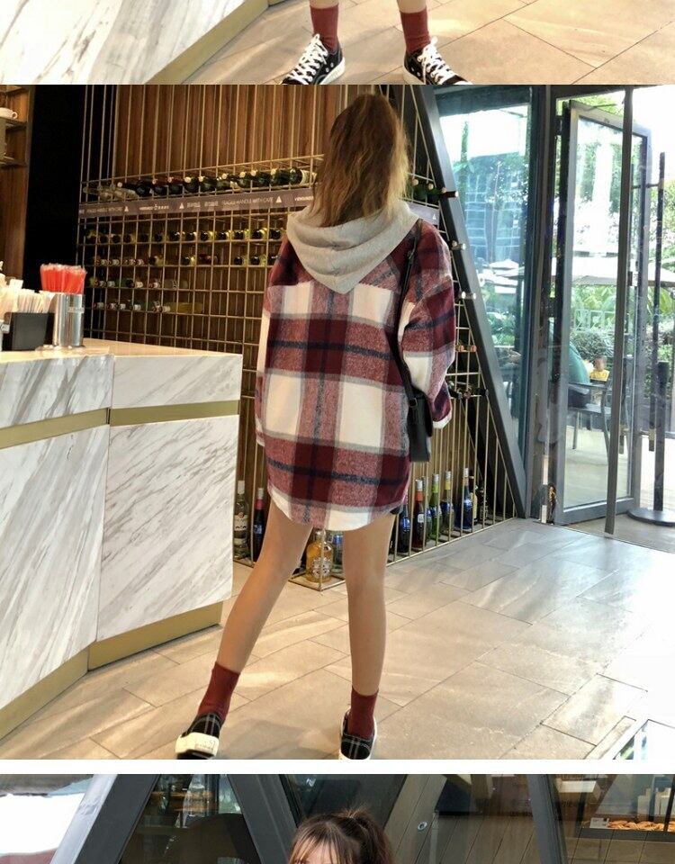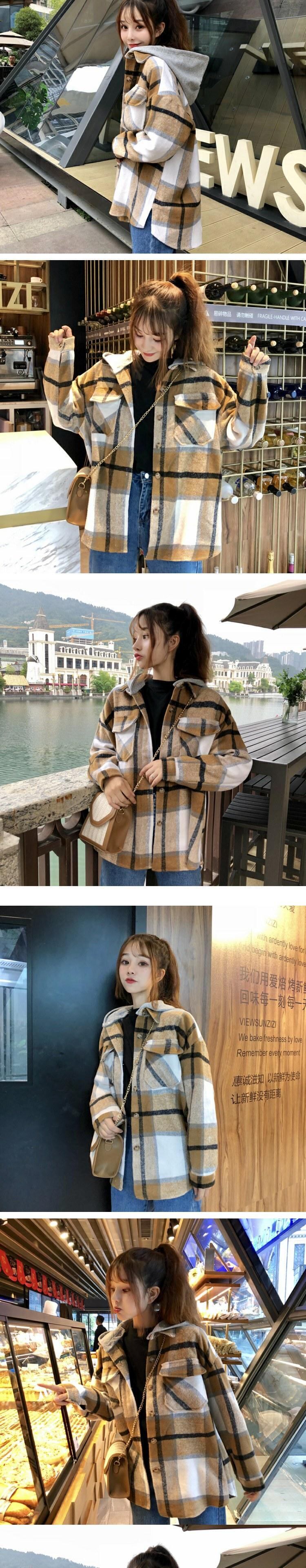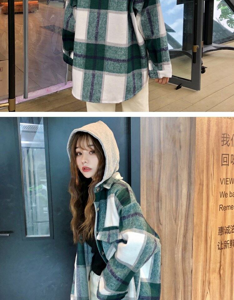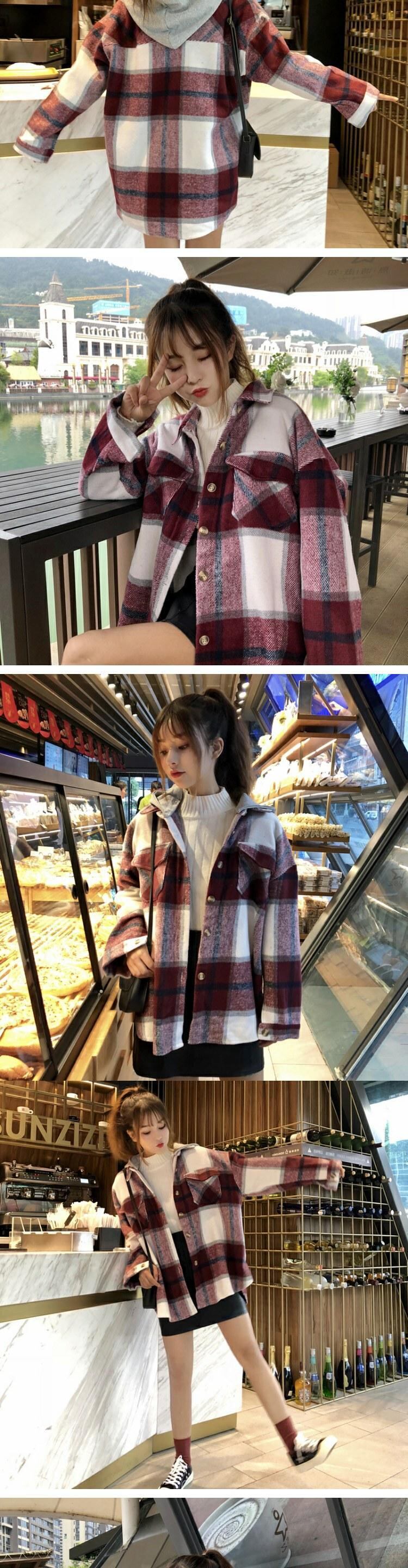 スタンダード格子柄コート オータムウィンタールーズスタイルフードブラウス レトロ 秋物 冬物 萌量不足54175222608