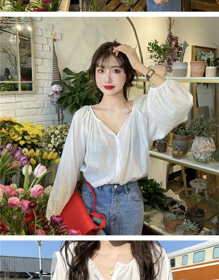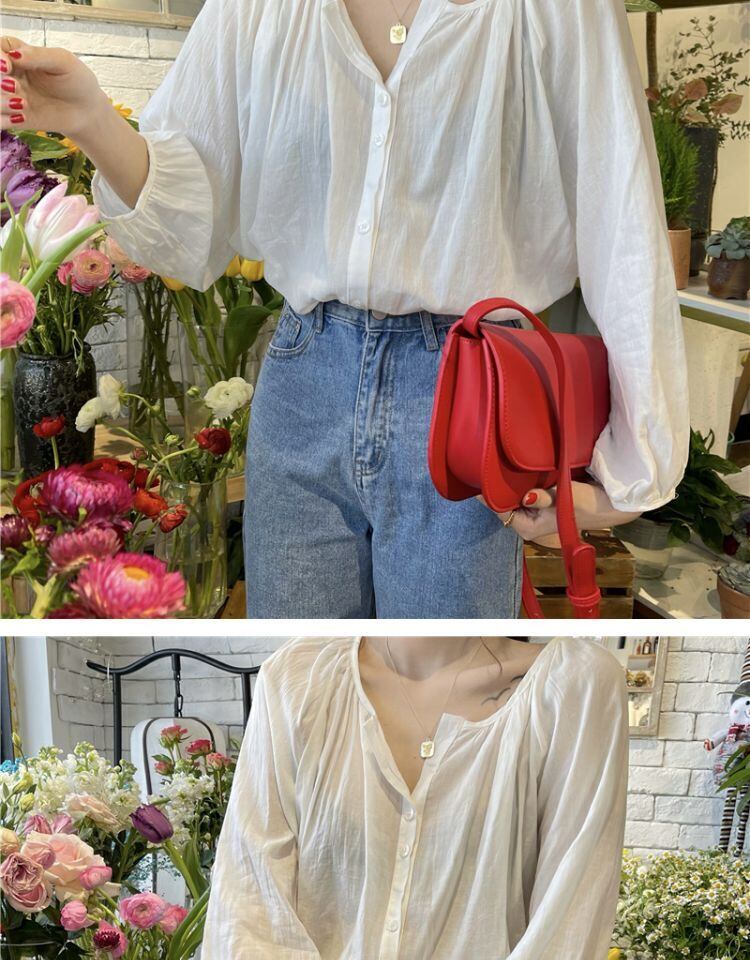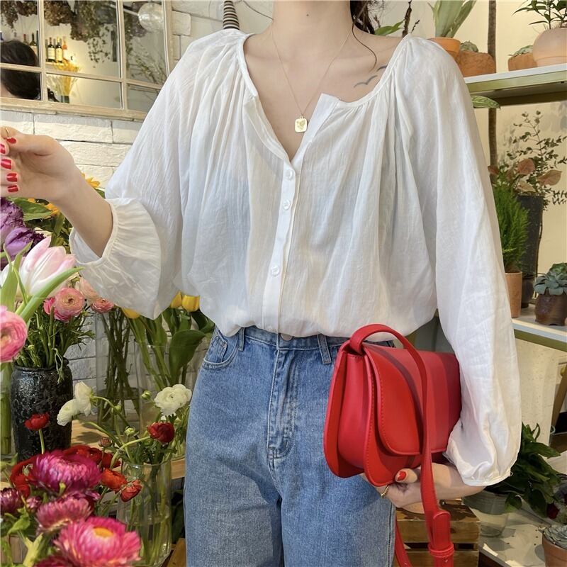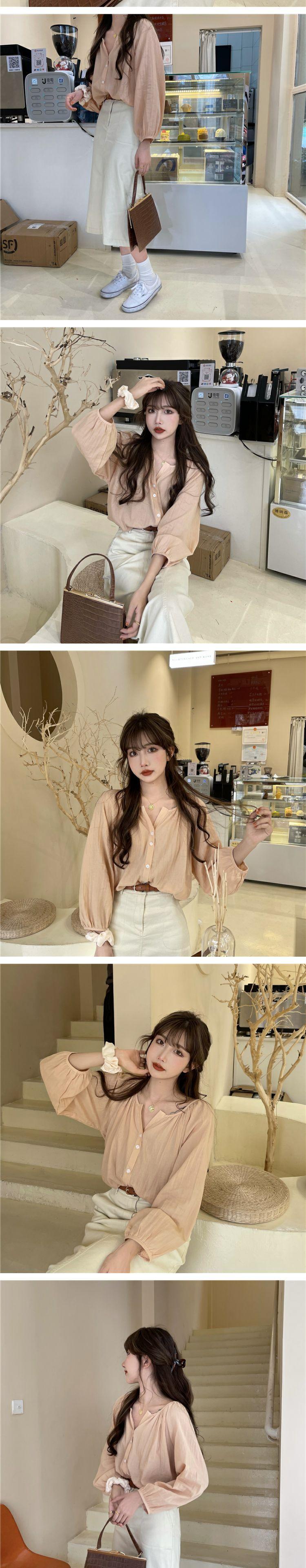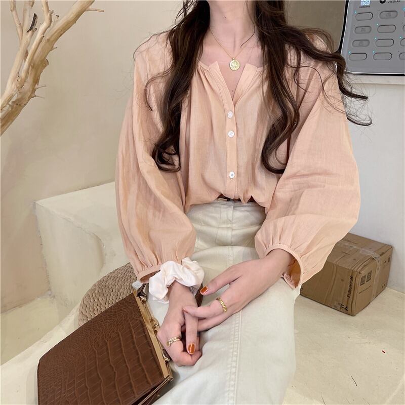 スプリングオータムスタンダードルーズ薄手シャツ トップス レディース ロング レトロ 春物 秋物 萌量不足12046105142