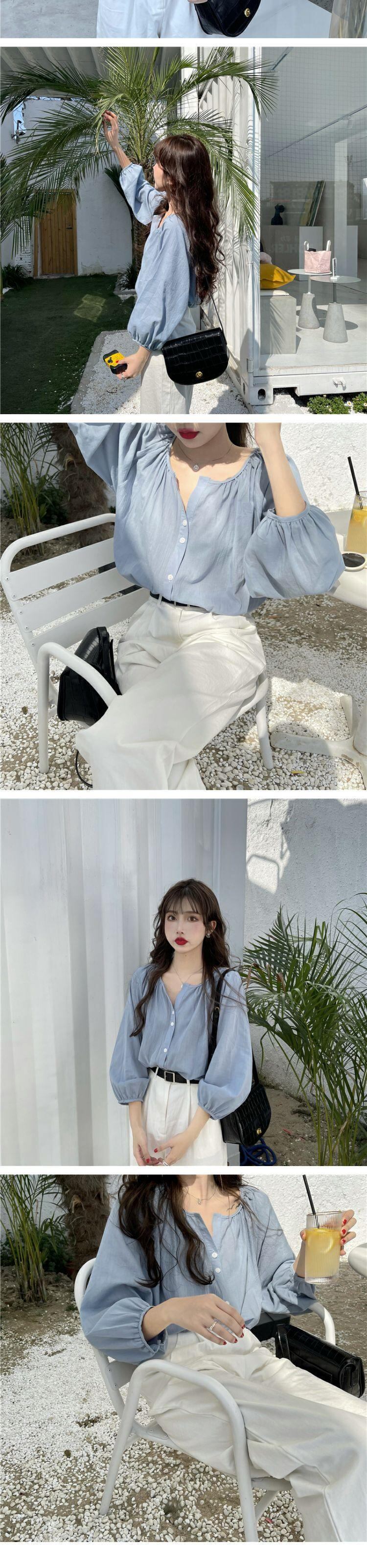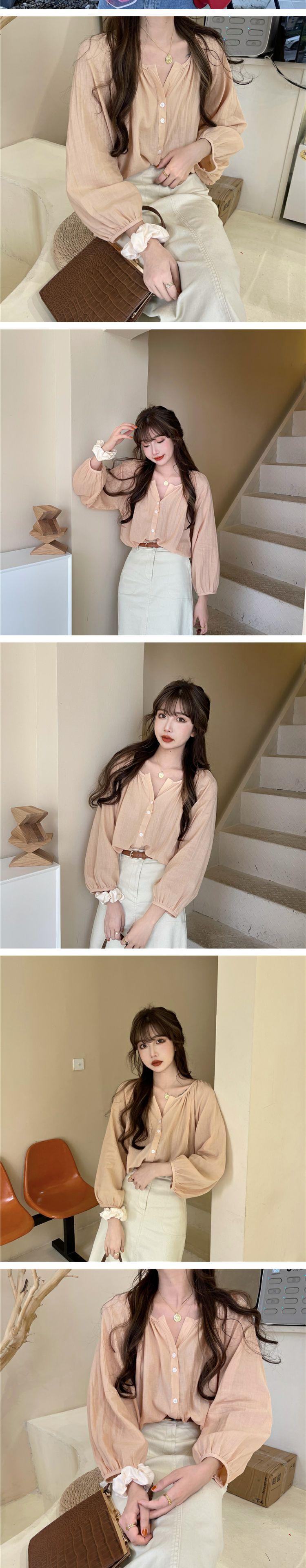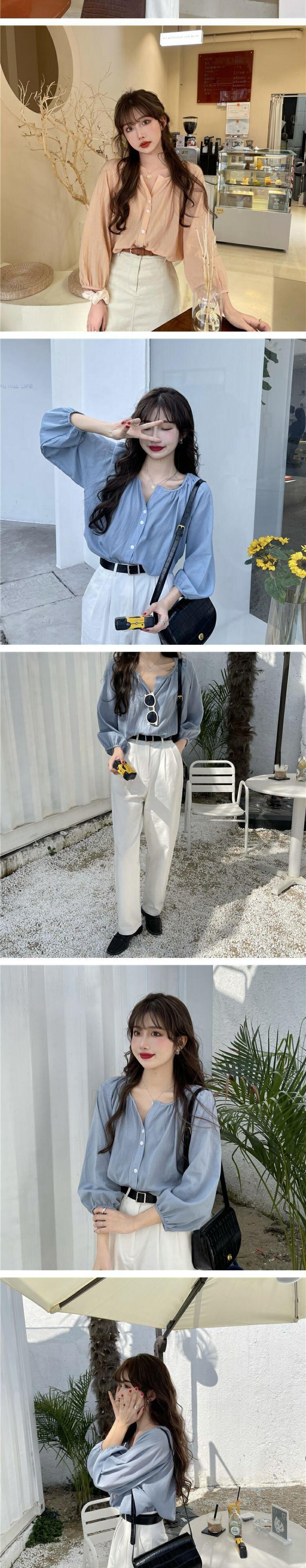 スプリングオータムスタンダードルーズ薄手シャツ トップス レディース ロング レトロ 春物 秋物 萌量不足12046105142