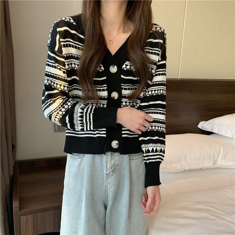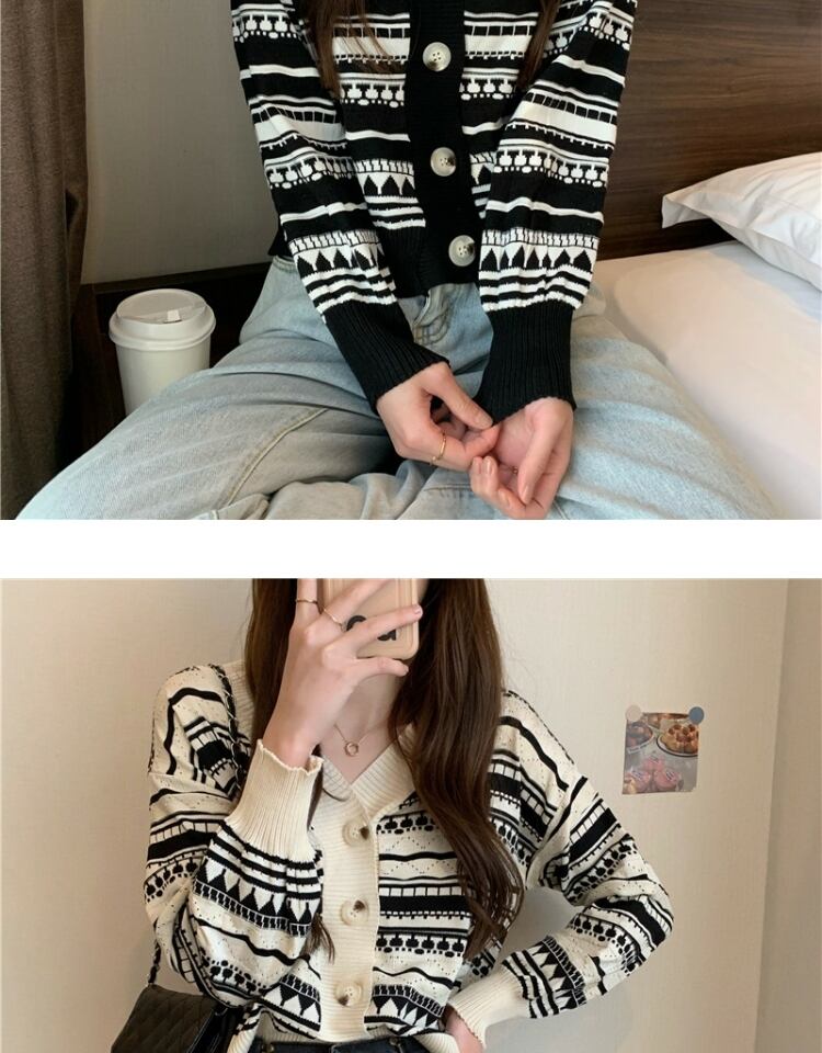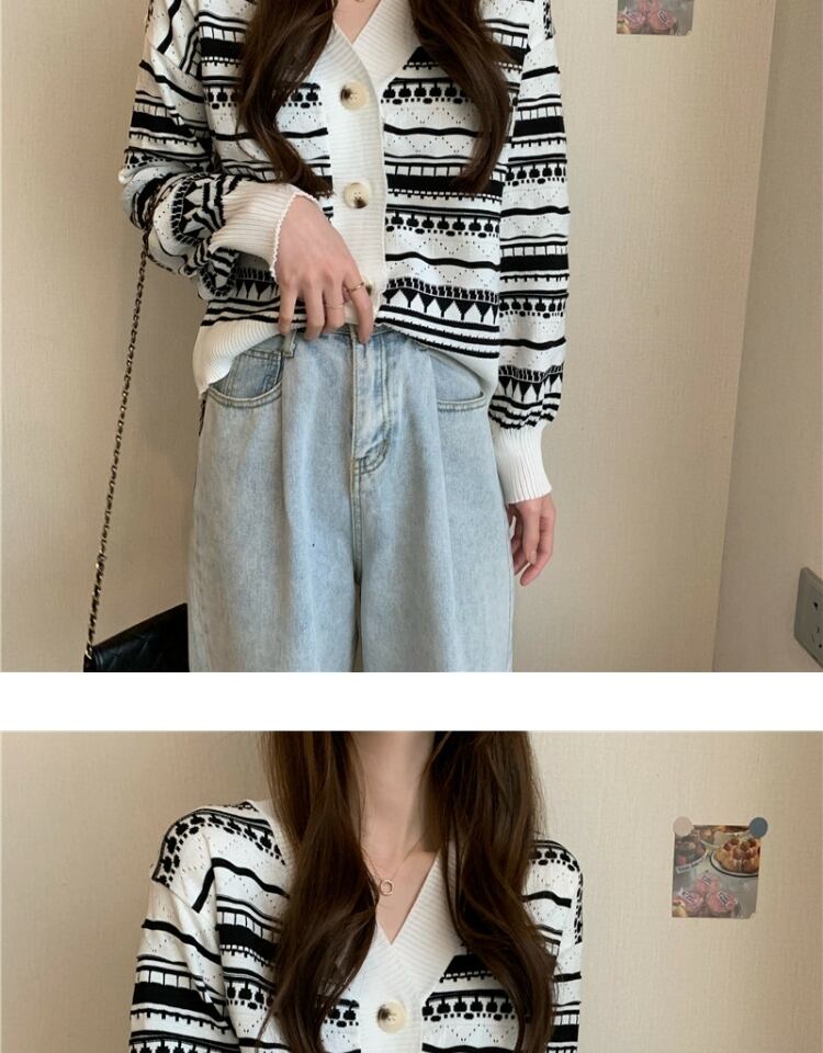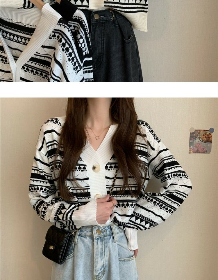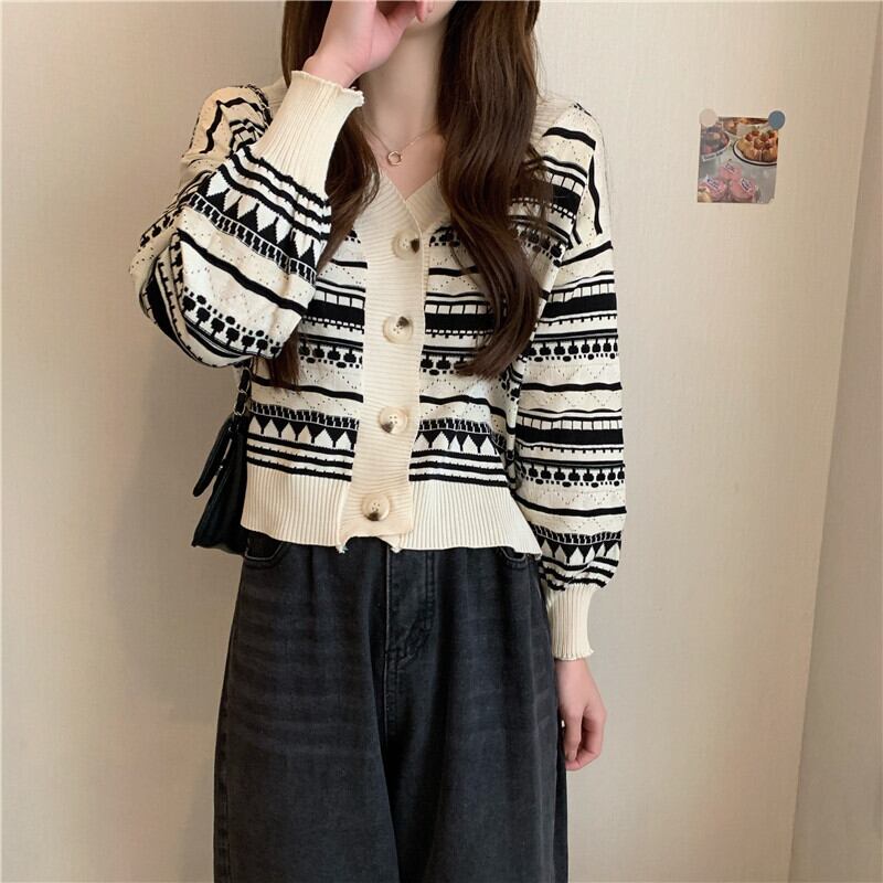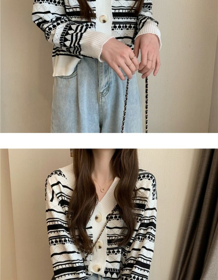 オータムストライプニットカーディガンジャケット ルーズ薄手ショートトップス ロング 秋物 萌量不足63843670239