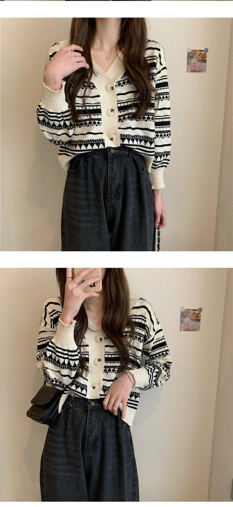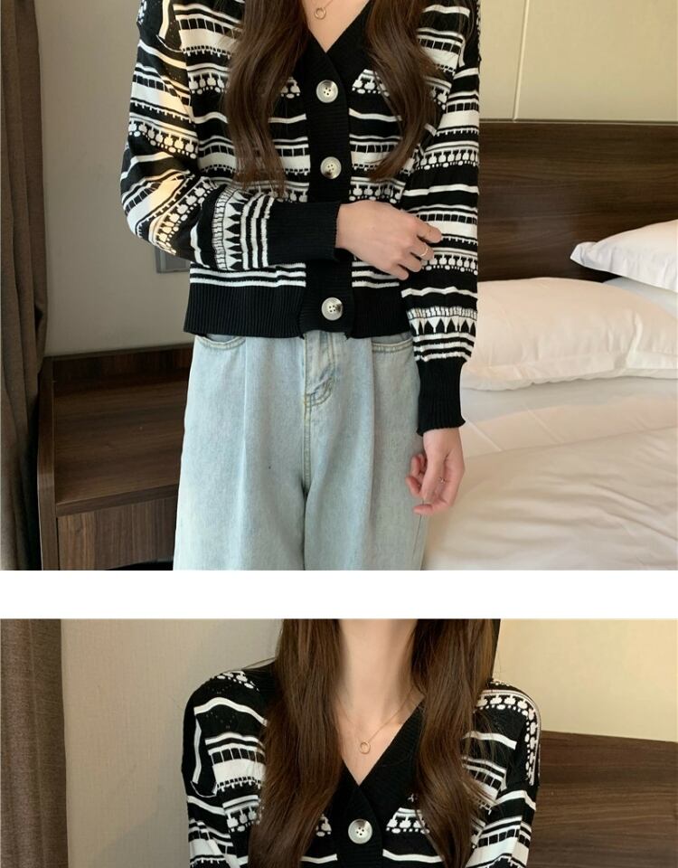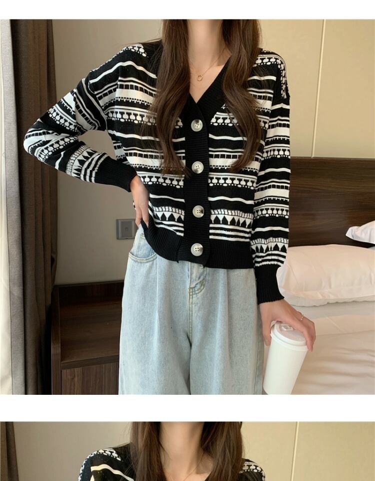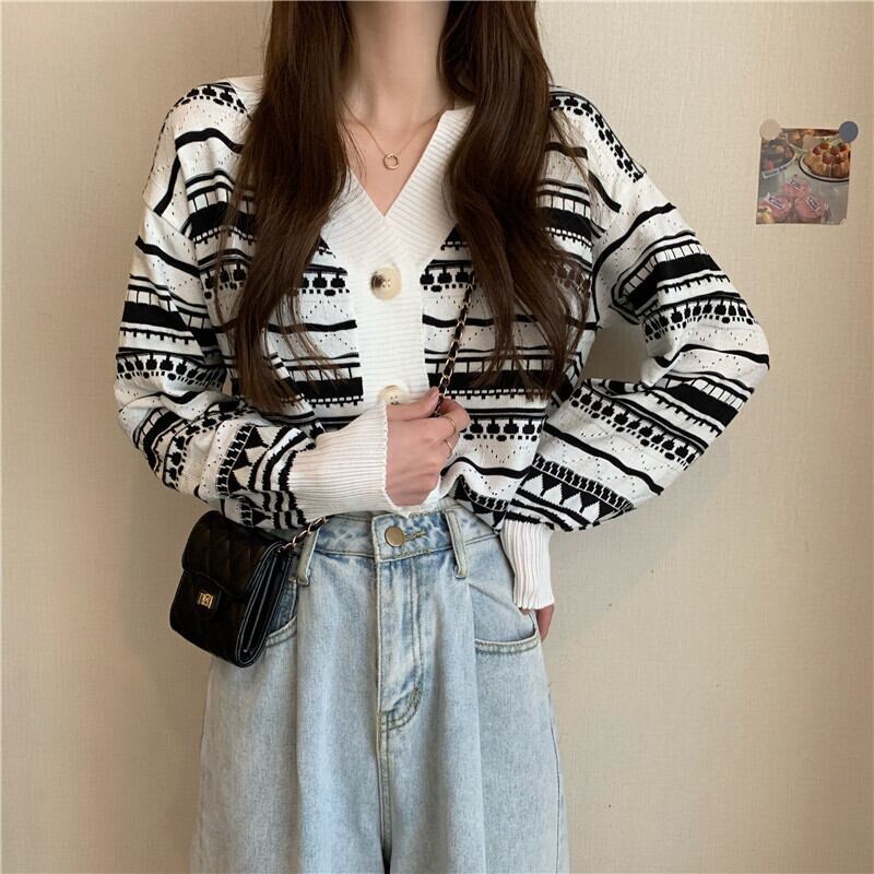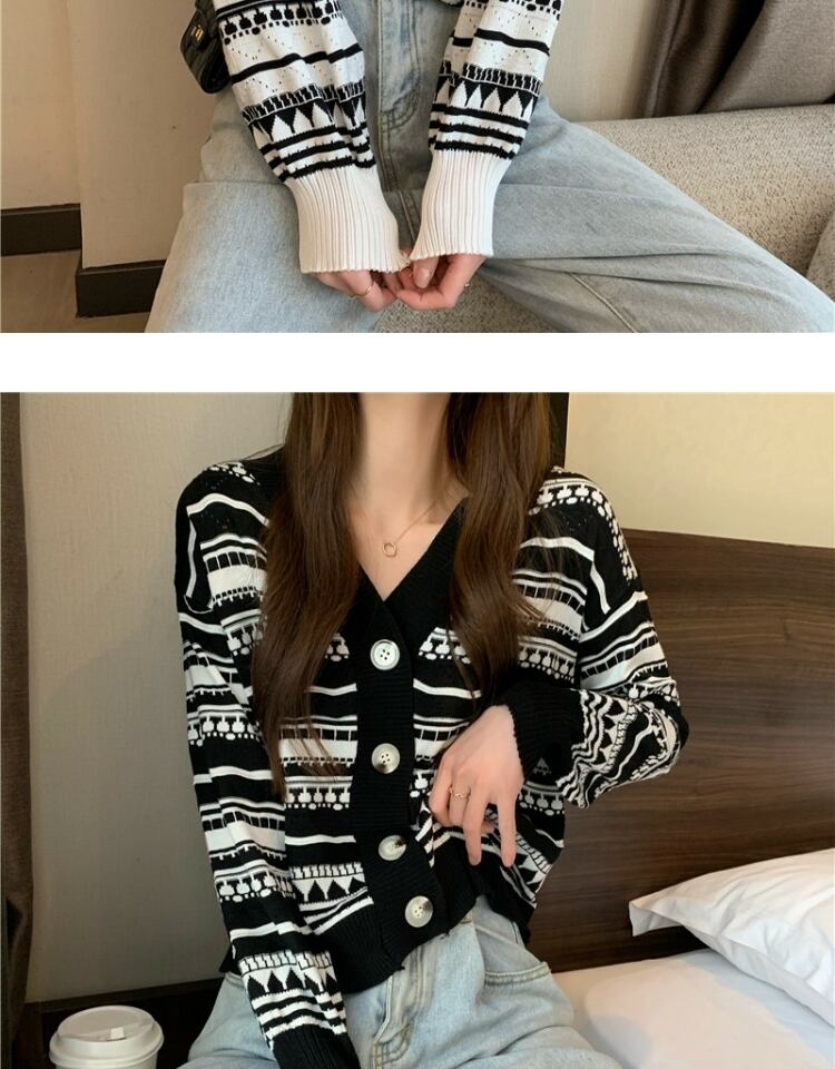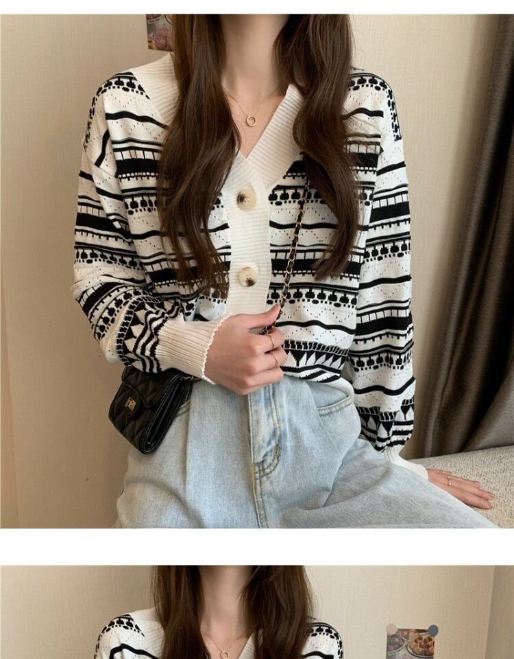 オータムストライプニットカーディガンジャケット ルーズ薄手ショートトップス ロング 秋物 萌量不足63843670239