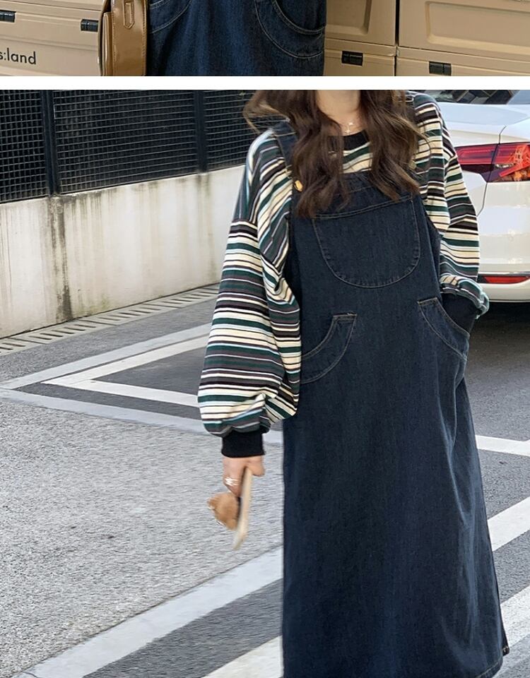 色:ストラップスカート(シングルピース),ストライプボトミングシャツ(ワンピース)