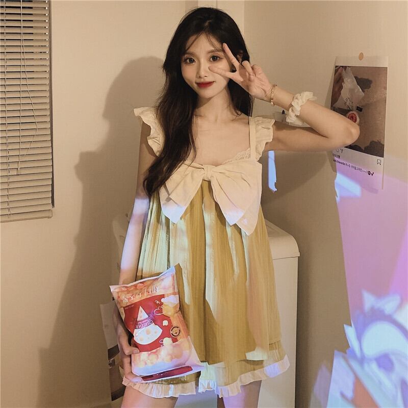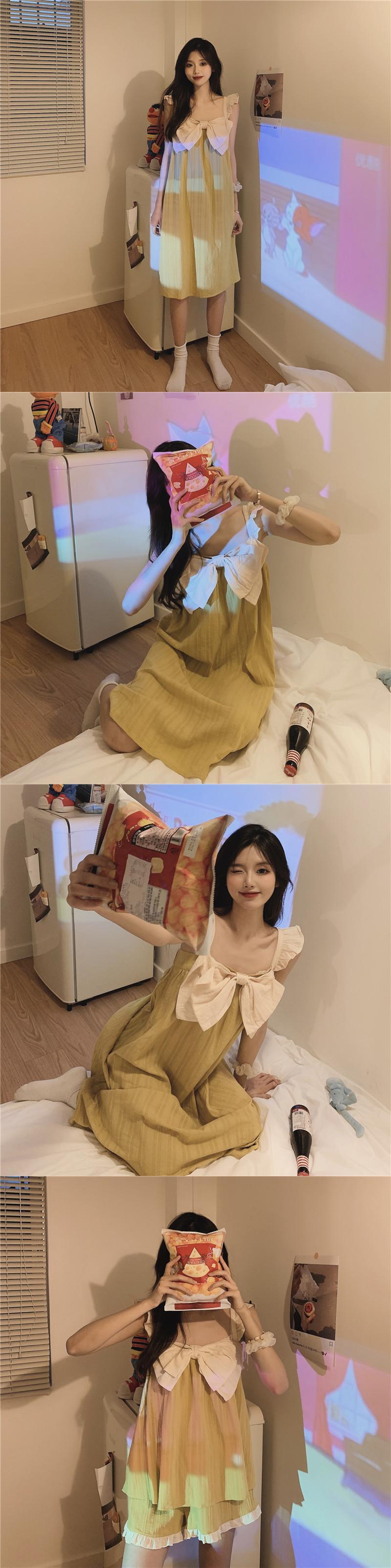 色:黄色の寝間着,黄色のパジャマパンツセット,アプリコットナイトドレス,アプリコットパジャマパンツセット