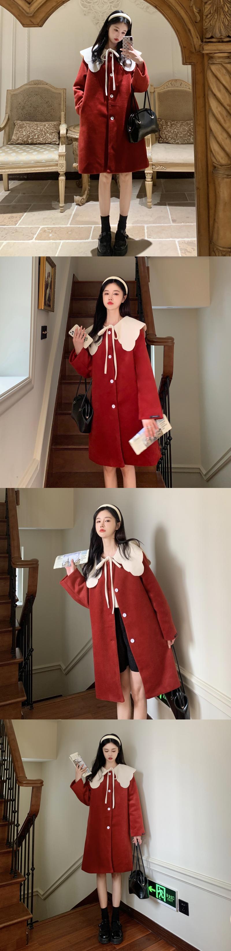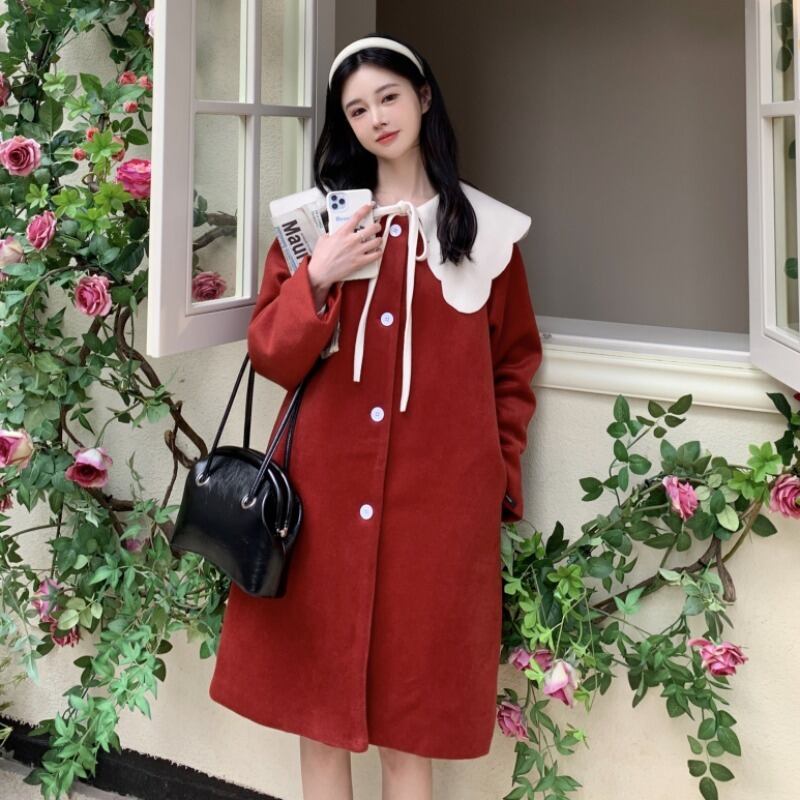 スタンダードレッドコート レディースウィンタースタイルカラー レトロ 冬物 萌量不足11826411094
