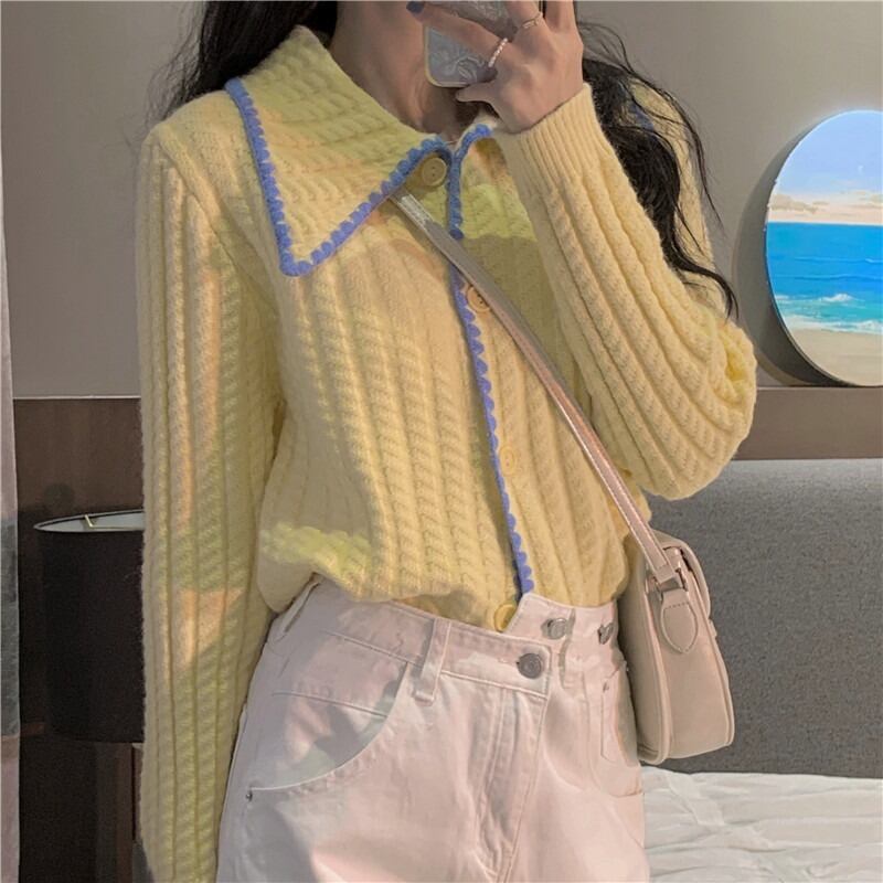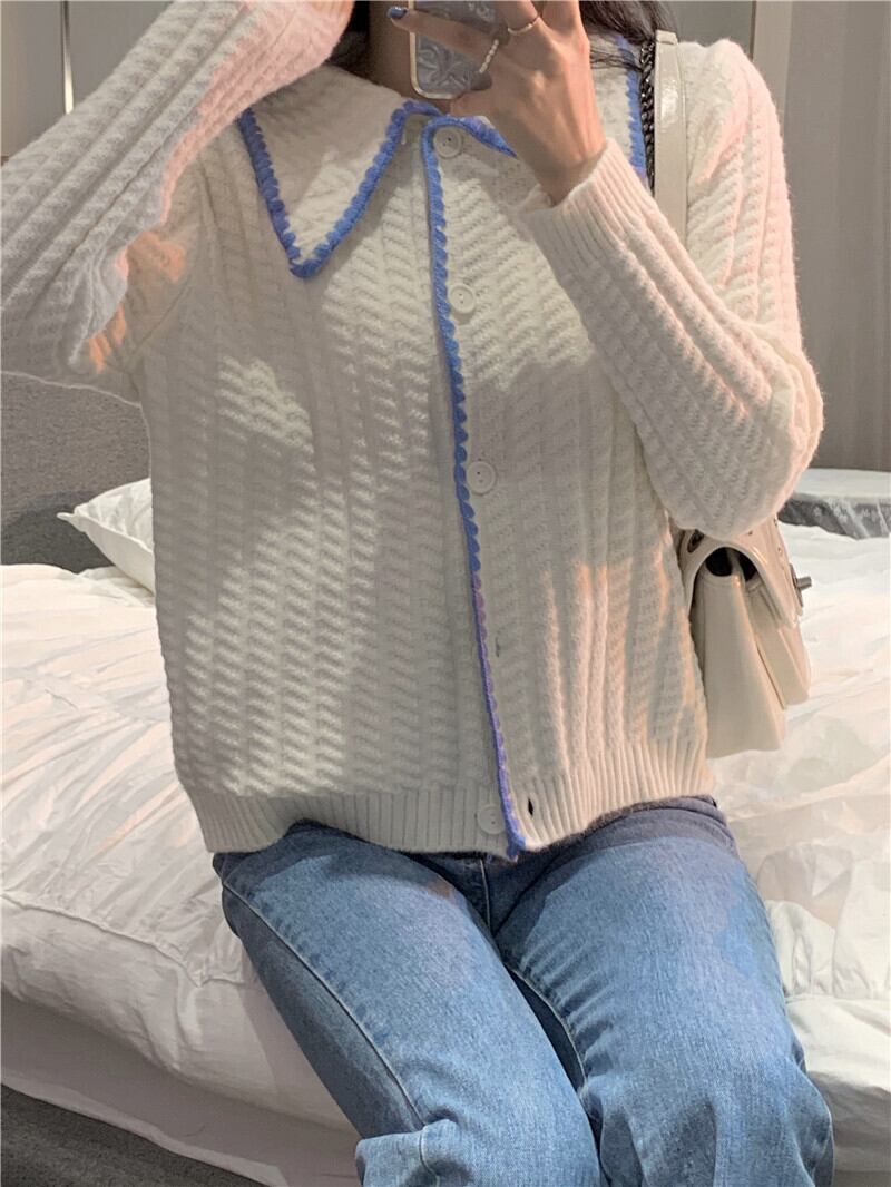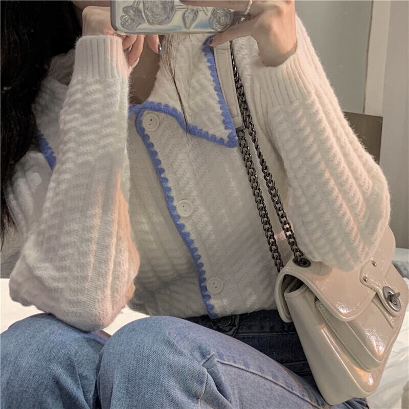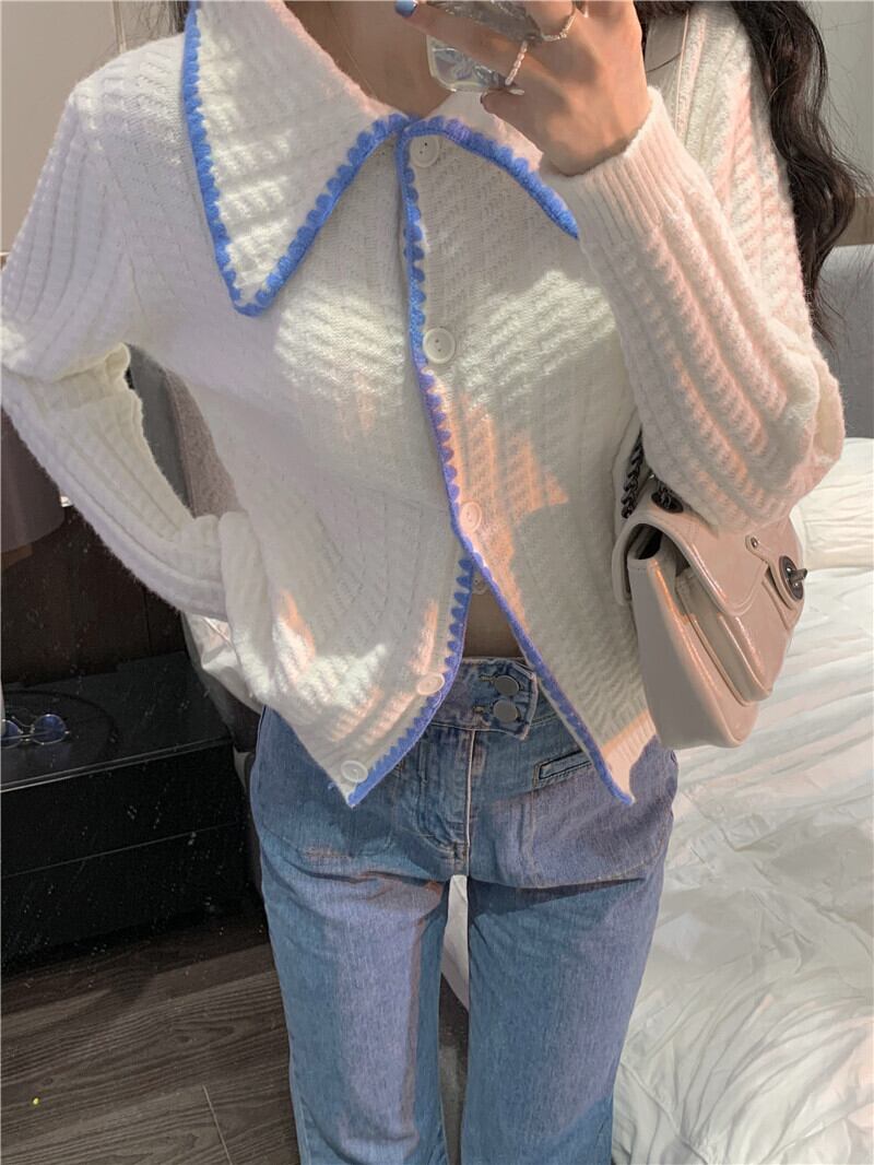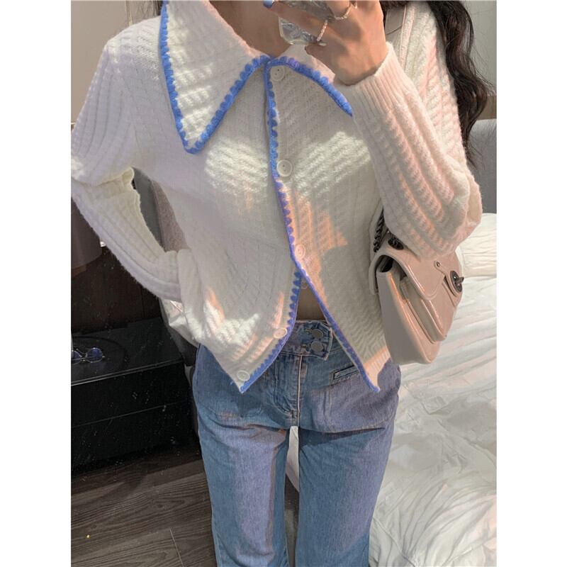 ブルーセーター オータムトップス カラーニットカーディガンジャケット ロング 秋物 萌量不足49785096097